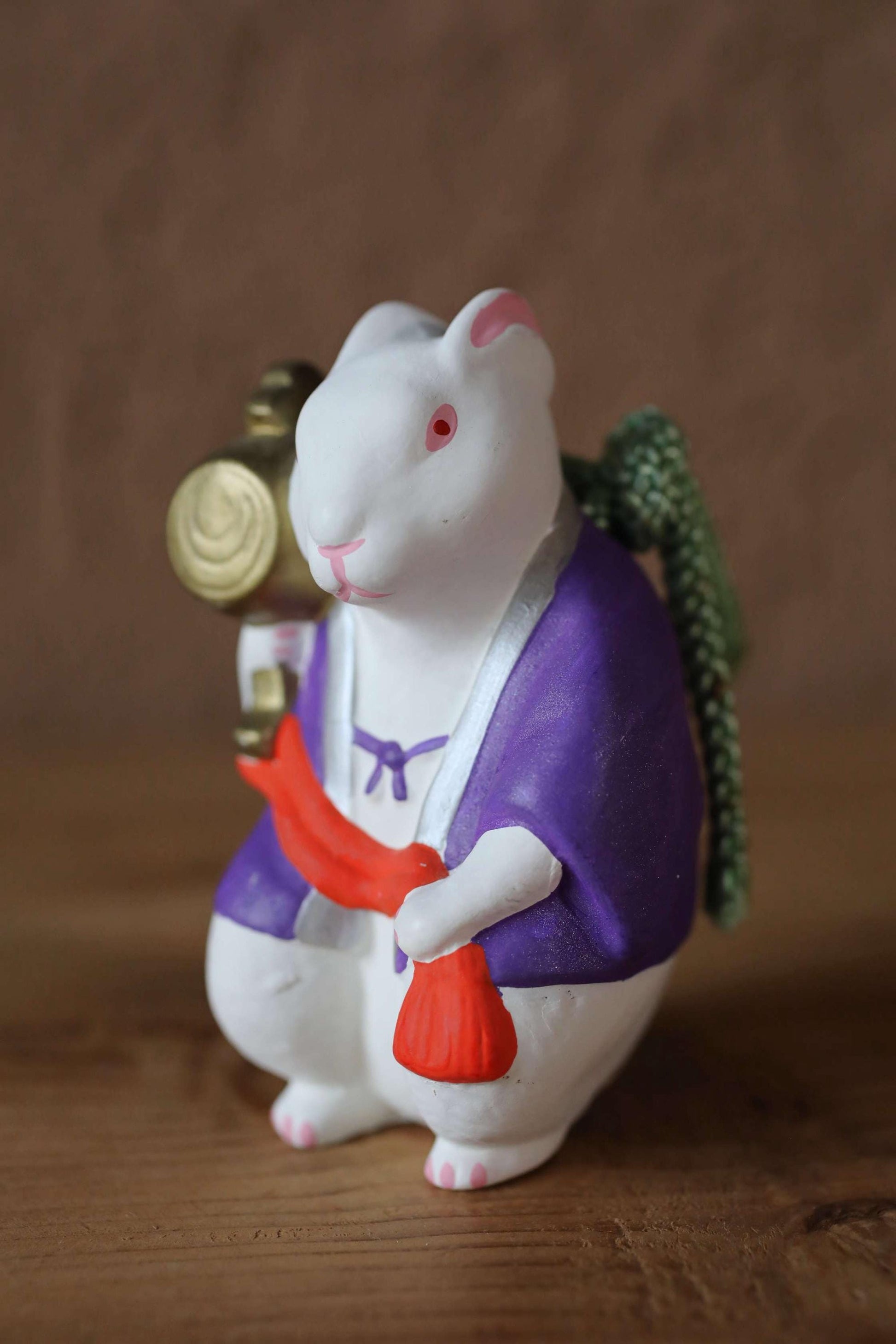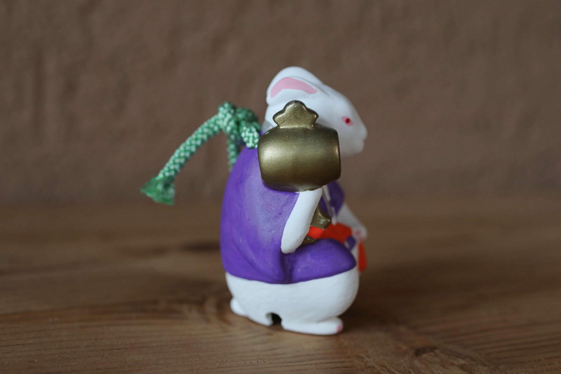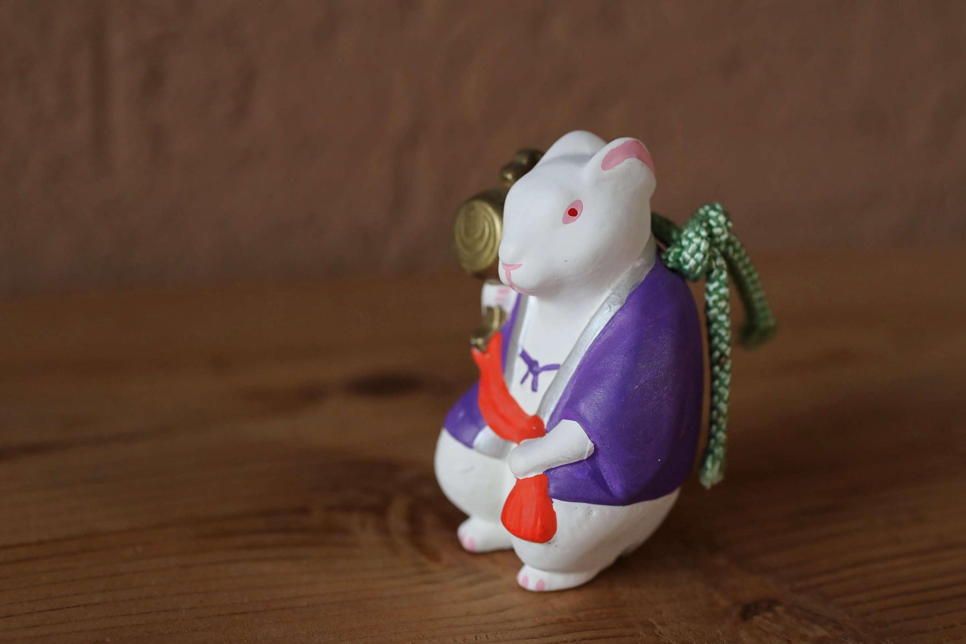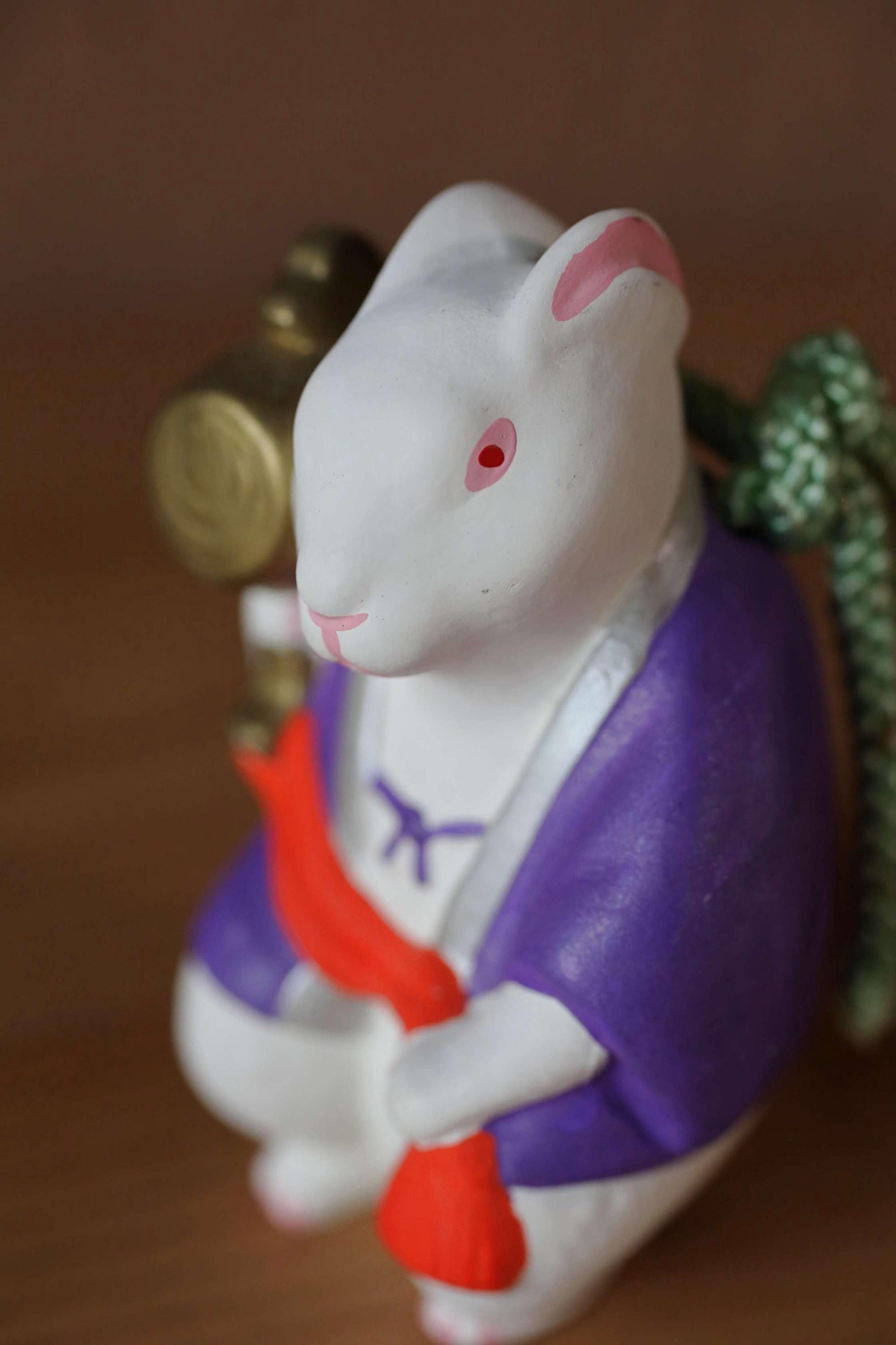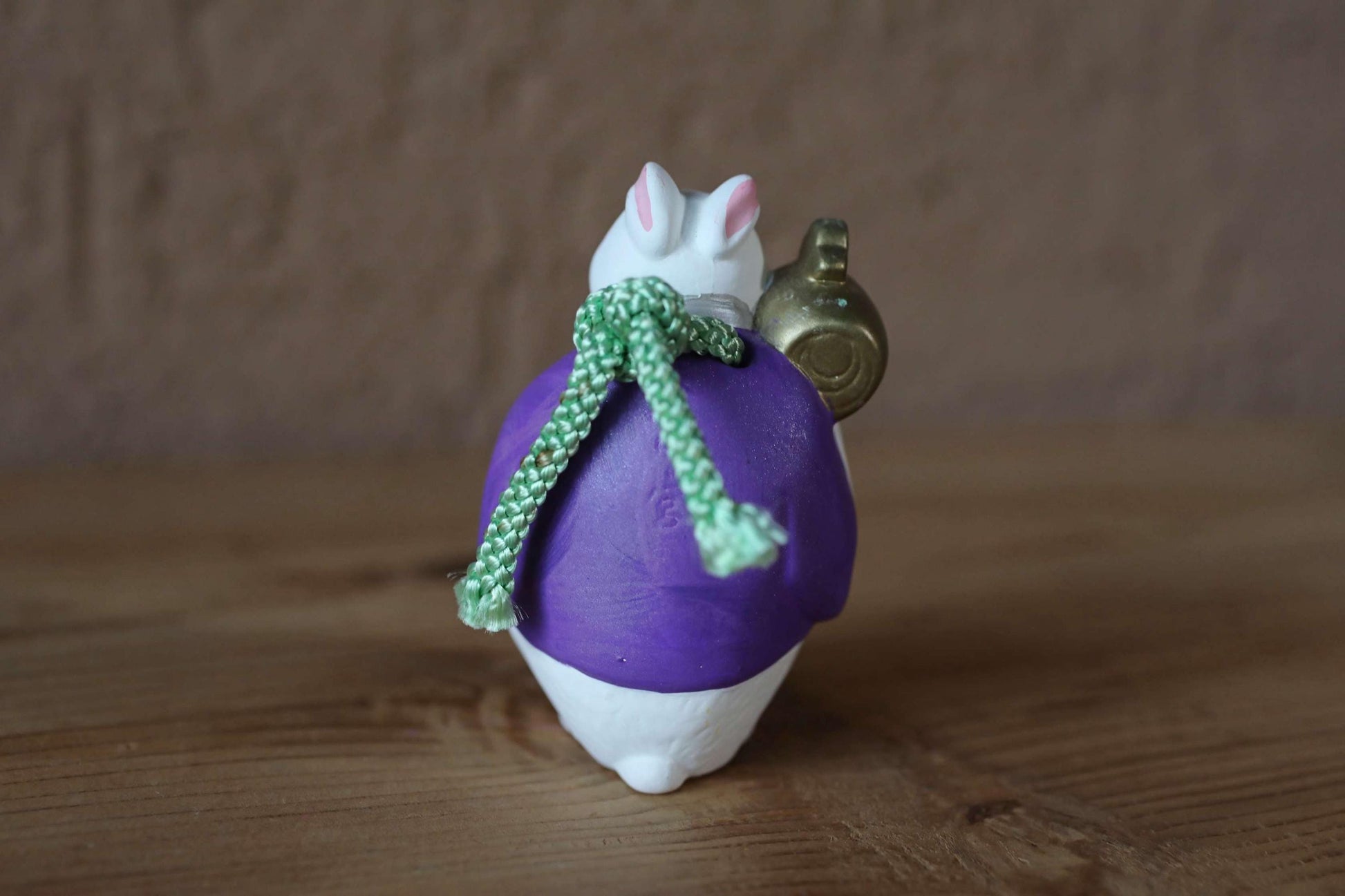 This is an amulet doll from a historical shrine in Osaka. The motif is a white Mouse with a gold hammer. This hammer is a lucky motif that is said to bring you what you want if you fall on it.
