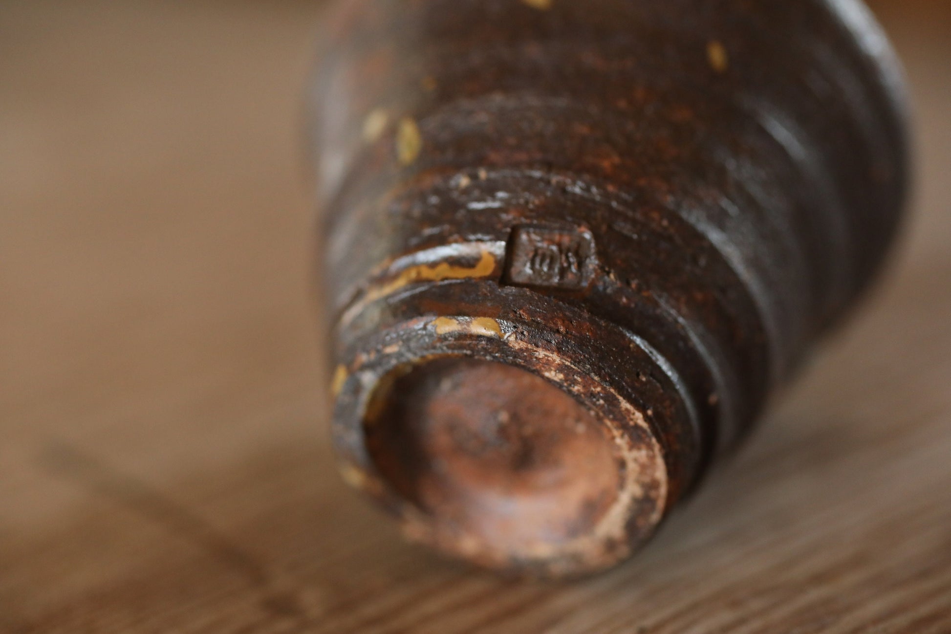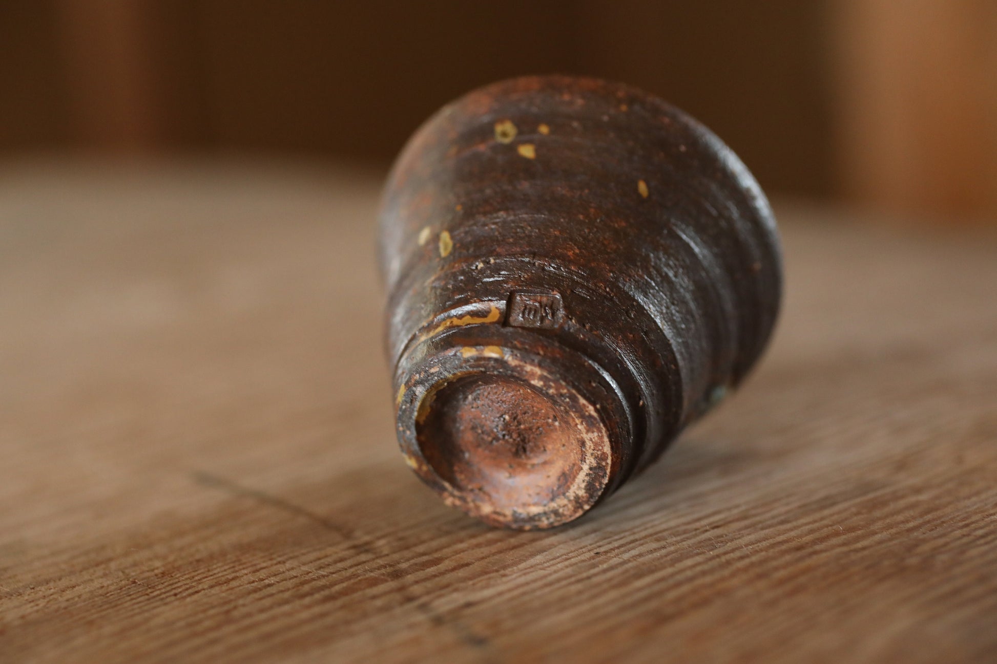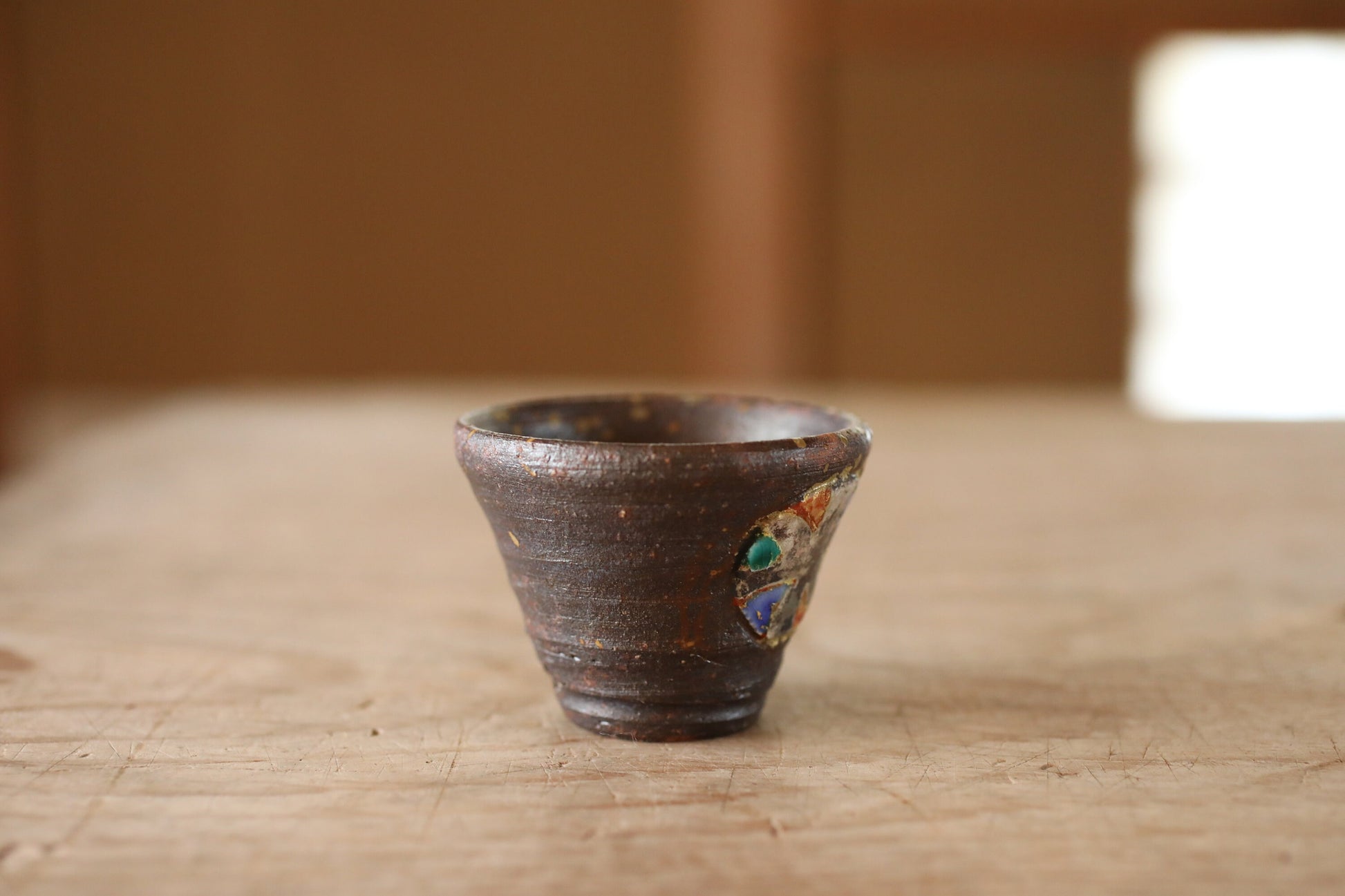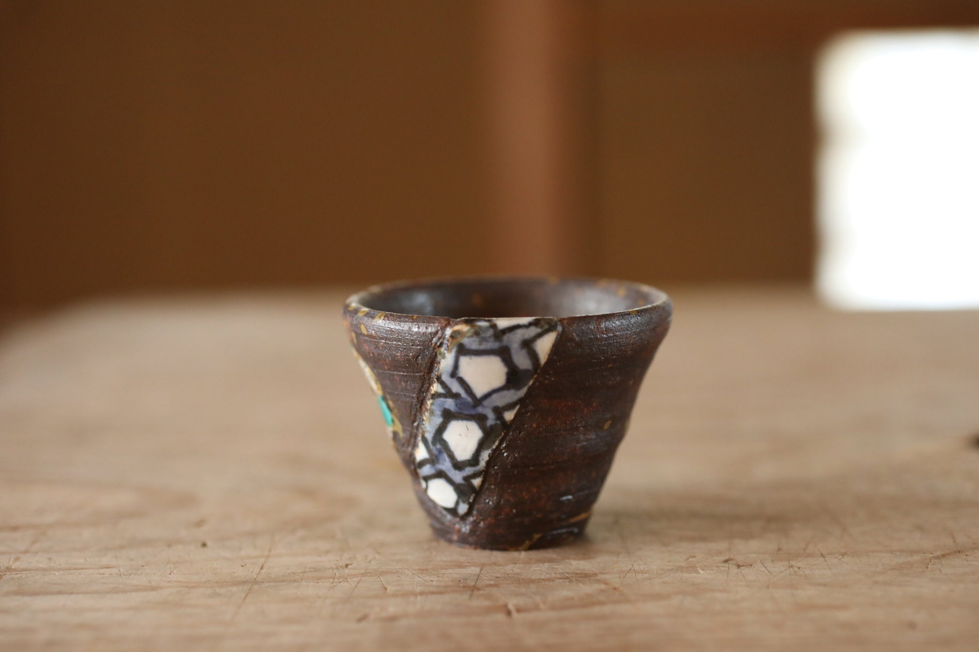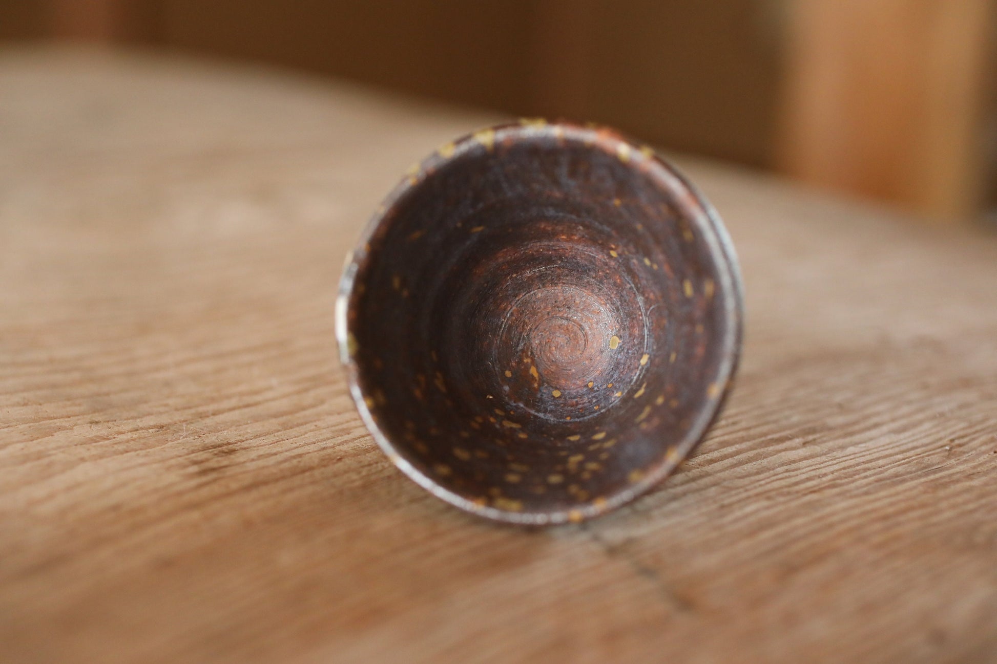 The natural atmosphere of the brown clay is utilized, and abstract designs are painted on top of it. The gold color, which also extends to the inside, is especially beautiful, and it comes in a wooden box, making it a great gift.