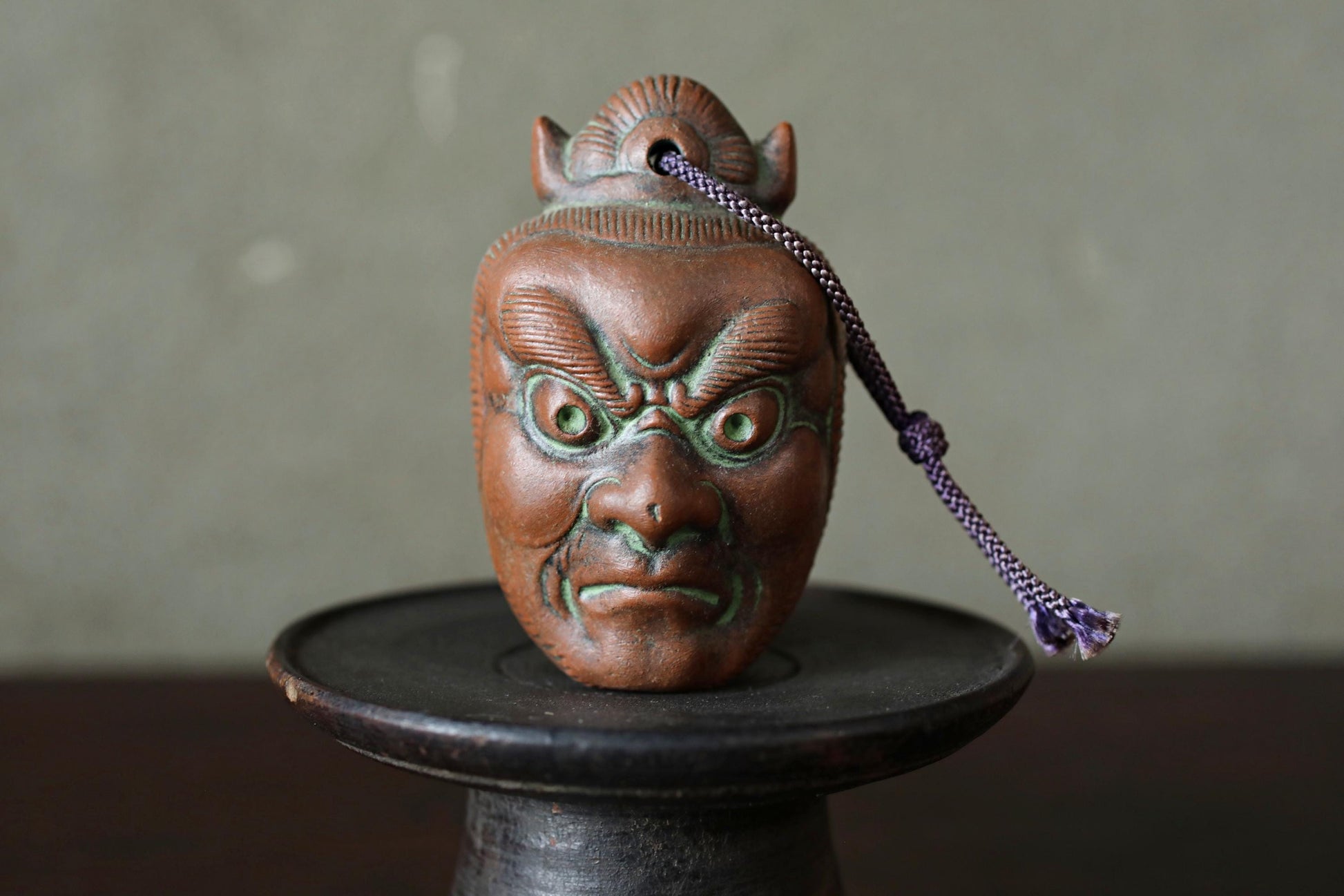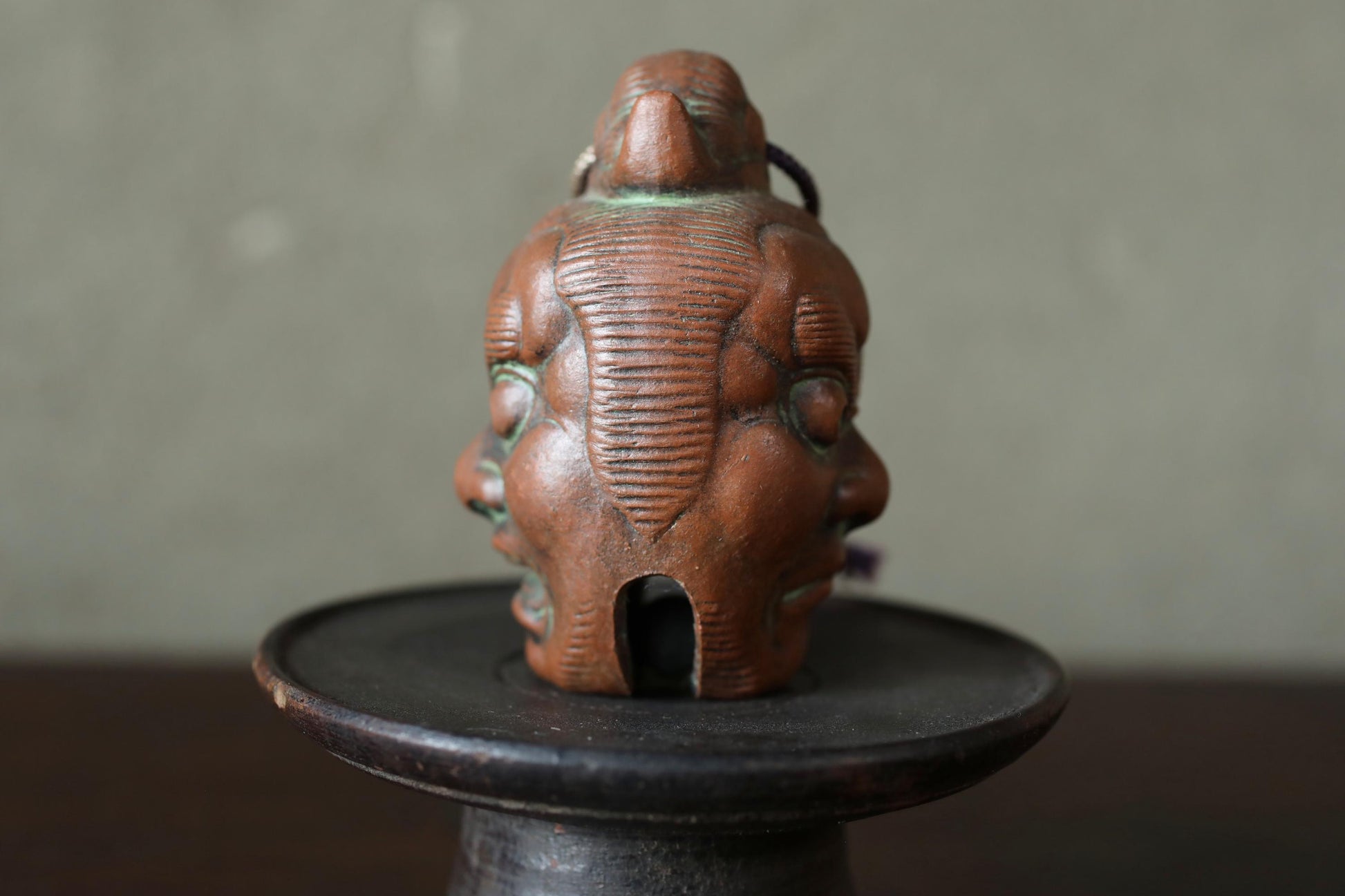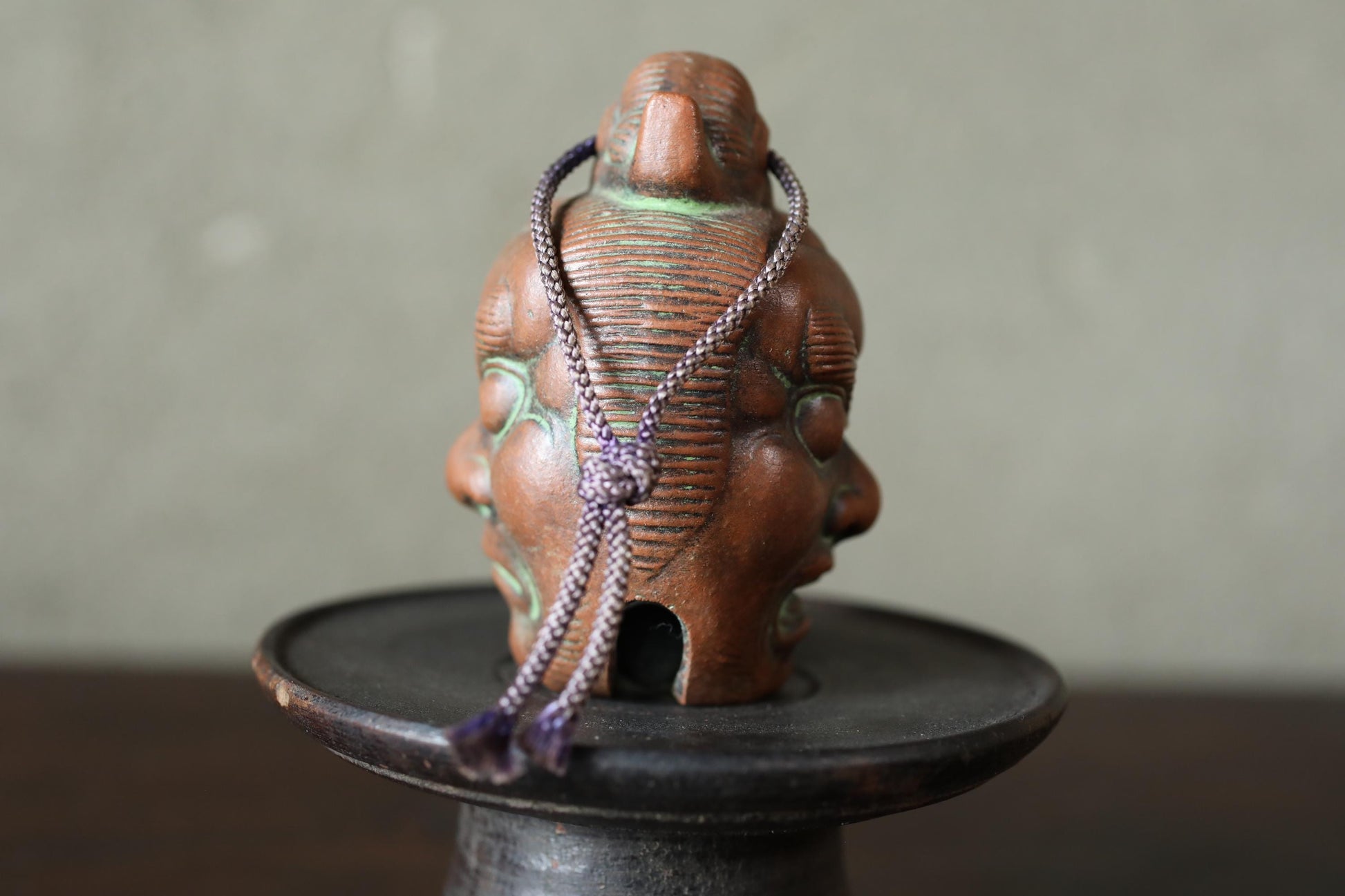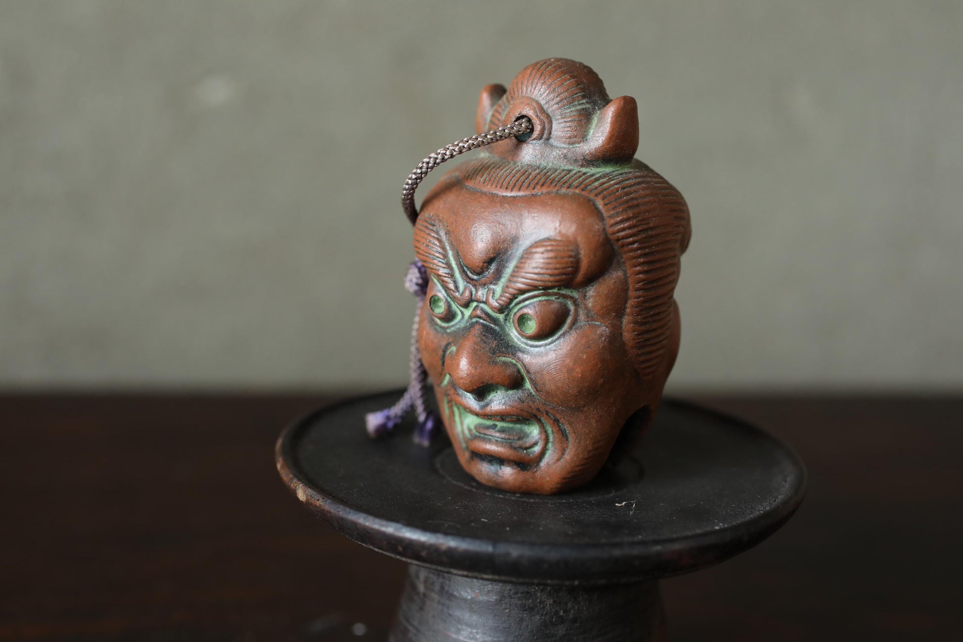 Japanese small pottery bell ONI demon doll talisman ornament Paper weight, Christmas Ornaments Japanese vintage small bell H3.5in/H9cm
