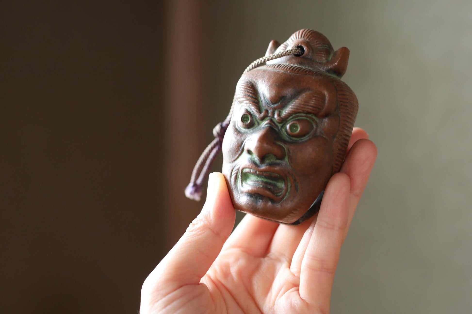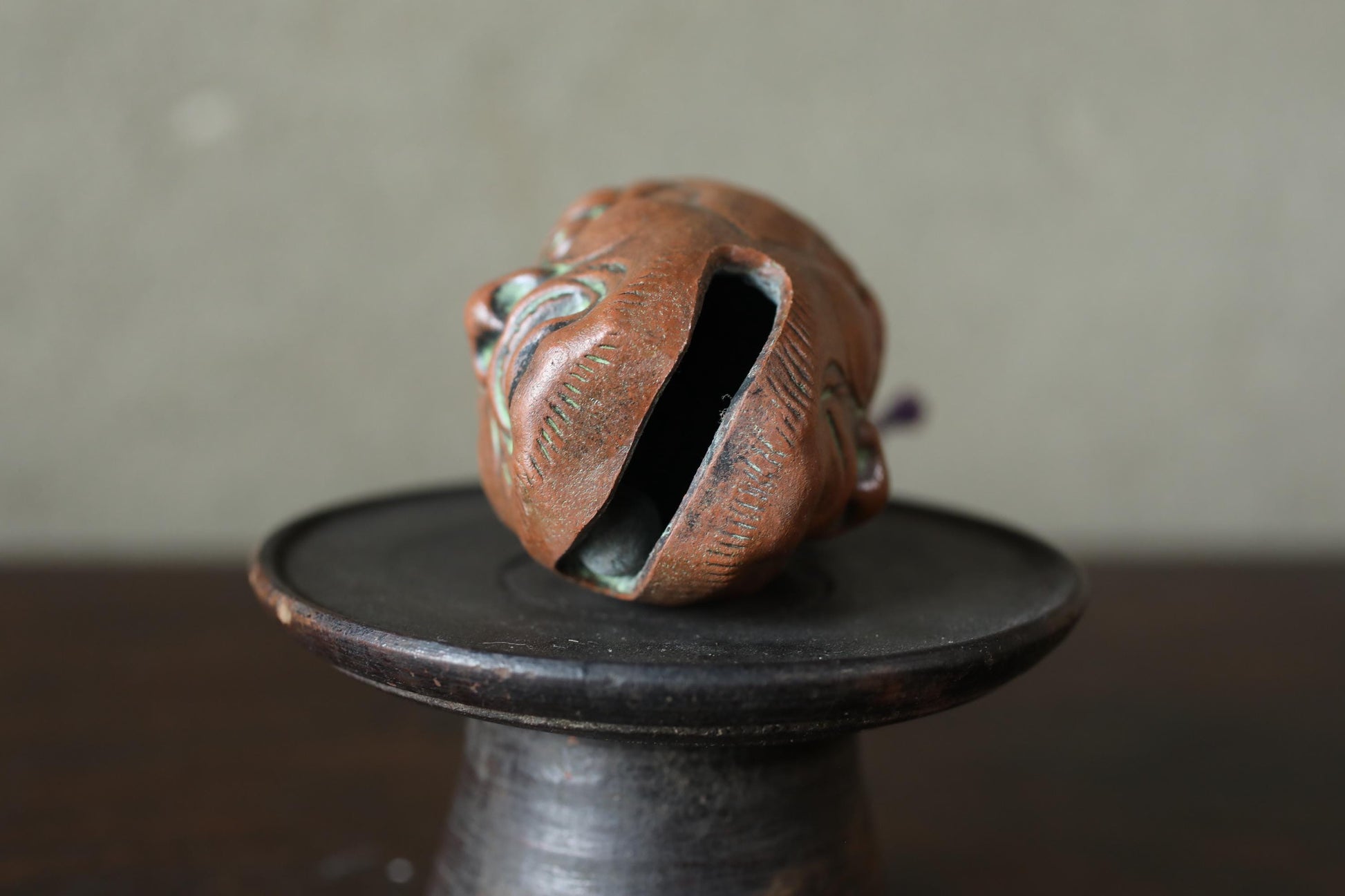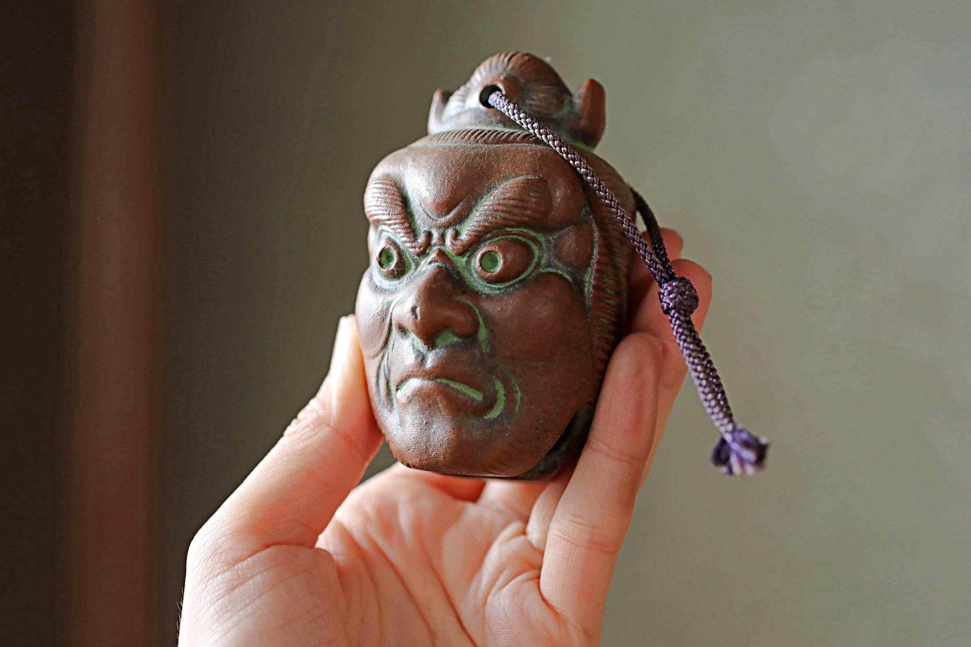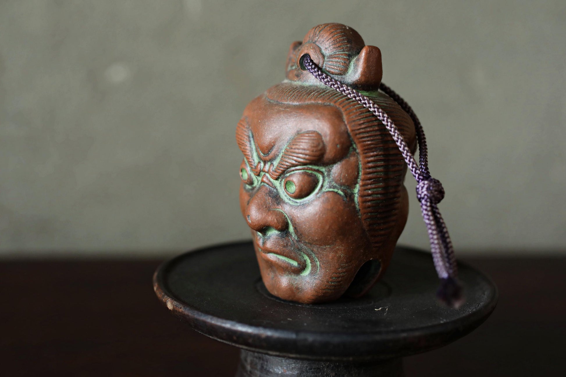Japanese small pottery bell ONI demon doll talisman ornament Paper weight, Christmas Ornaments Japanese vintage small bell H3.5in/H9cm