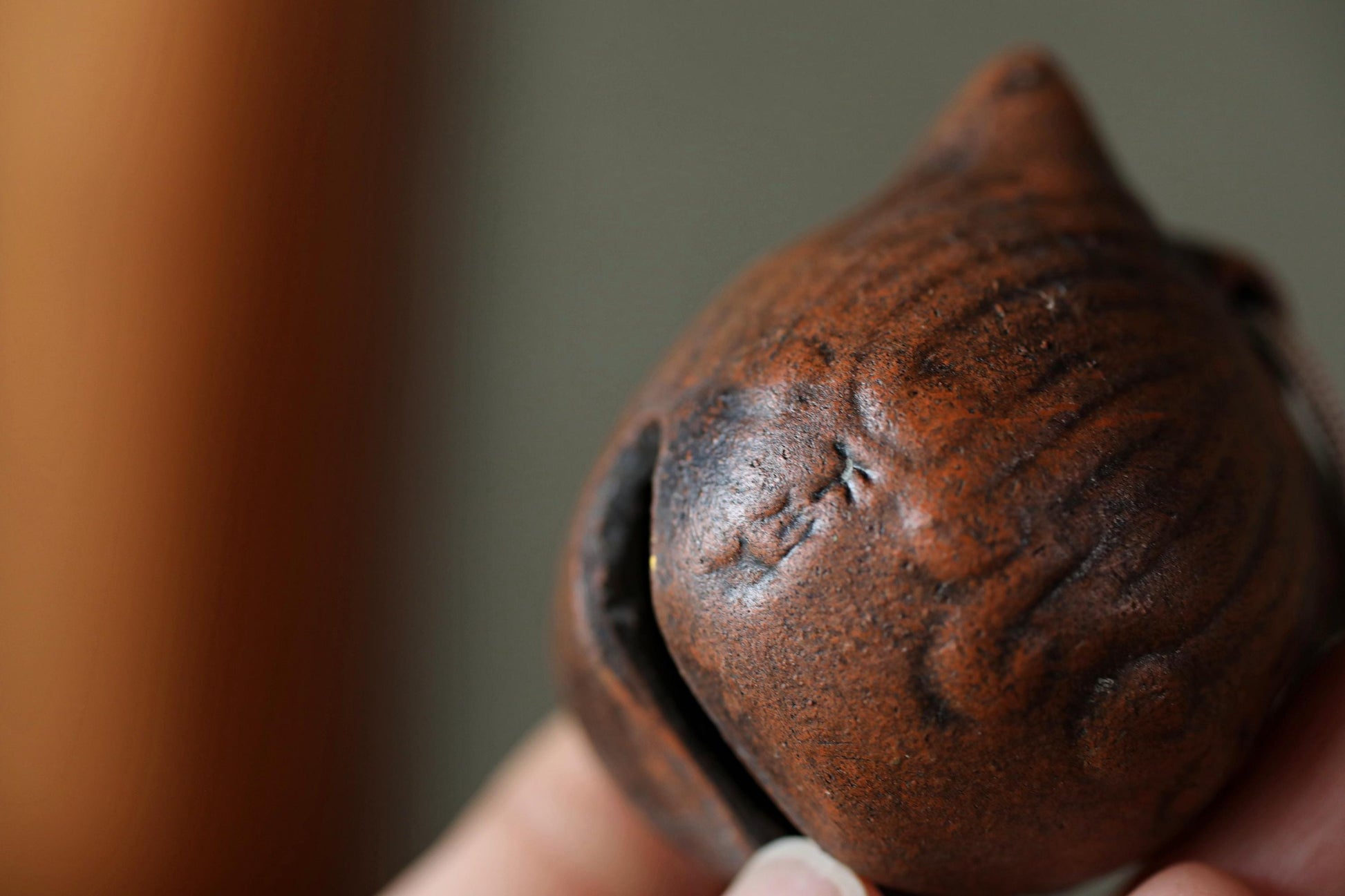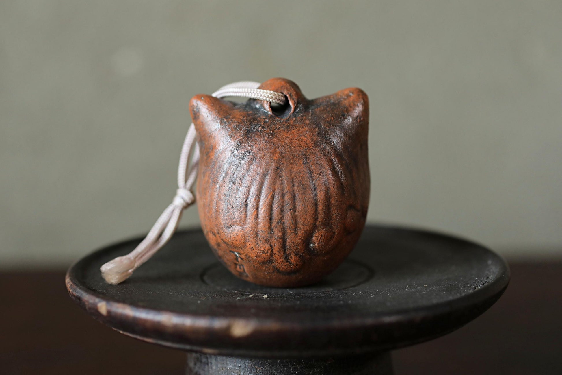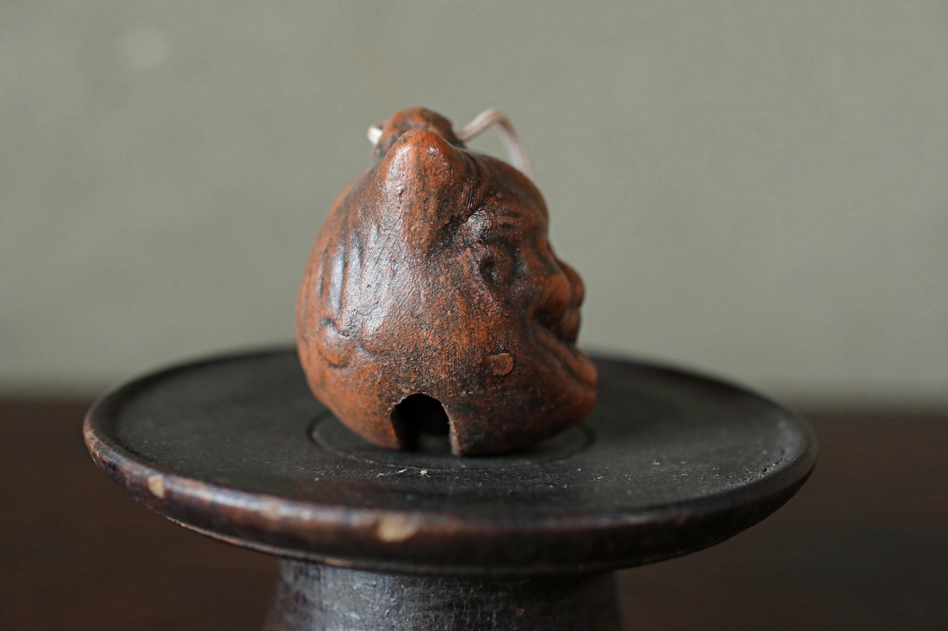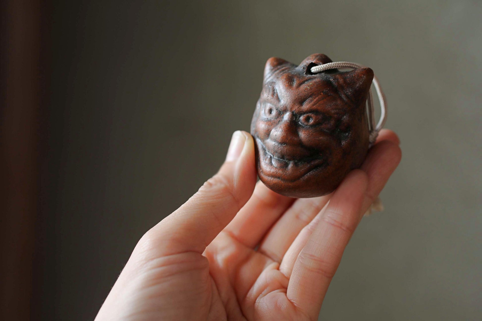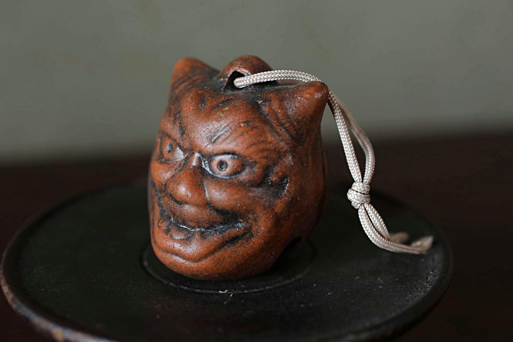 Japanese small pottery bell ONI demon doll talisman ornament Paper weight, Ornaments Japanese vintage small bell H2.2in/5.5cm