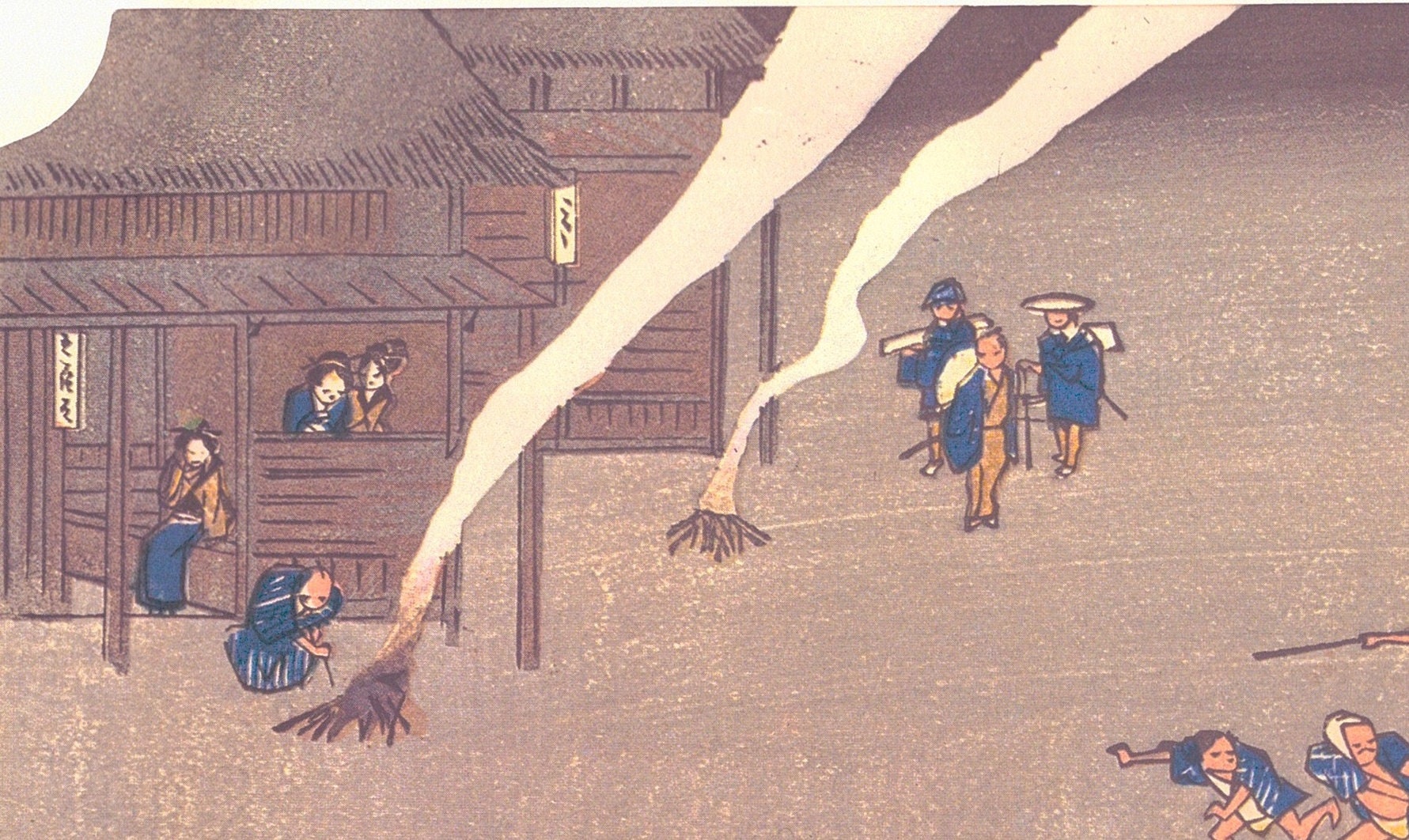 Japanese Ukiyo-e Woodblock print, by Hiroshige, "Miya Shrine Festival" From the series Fifty Three Stations of the Tokaido 10.2in×15in.