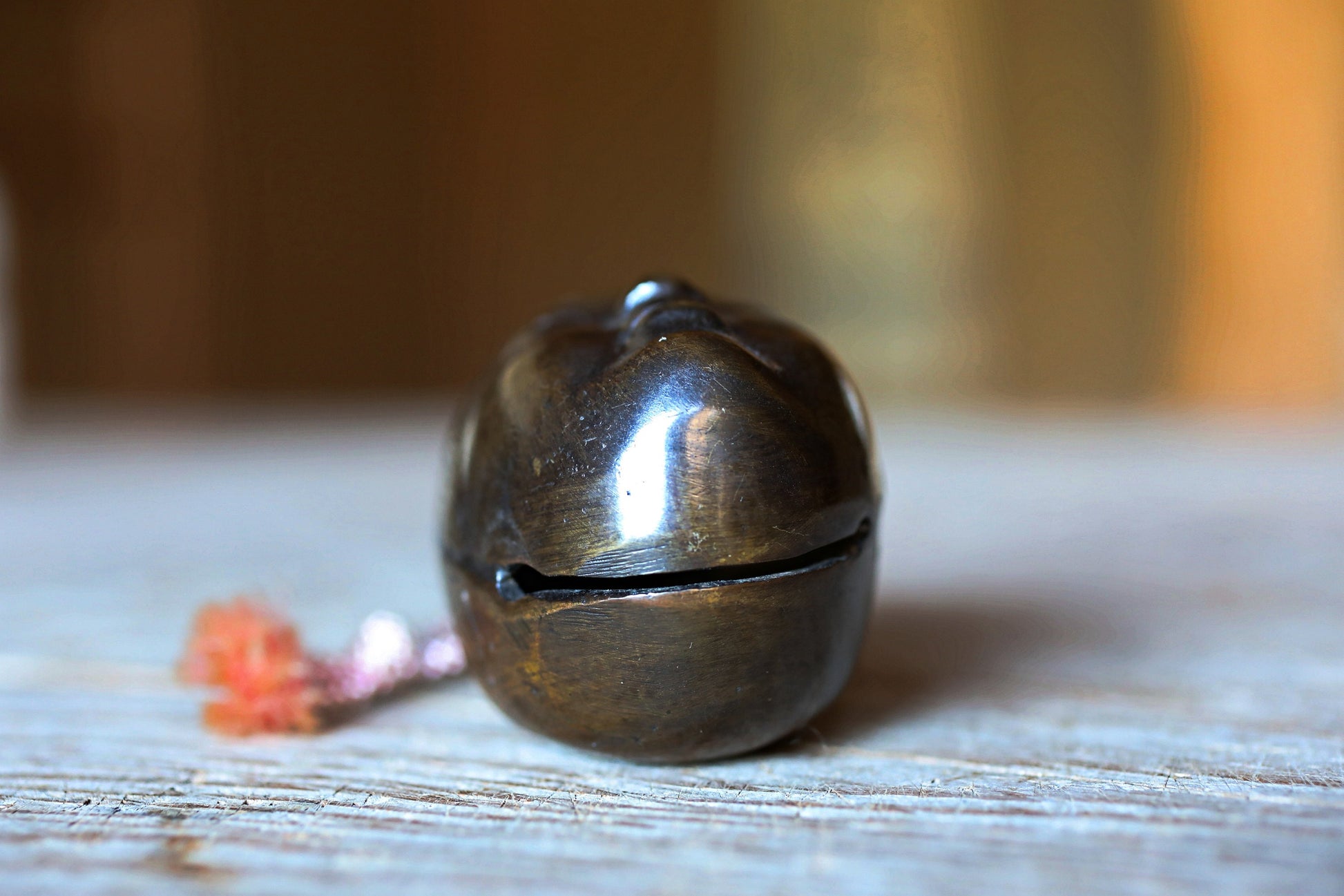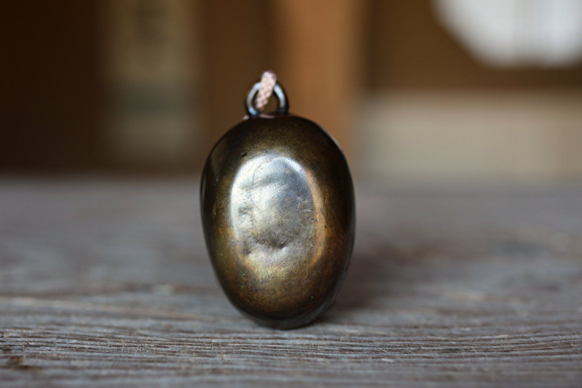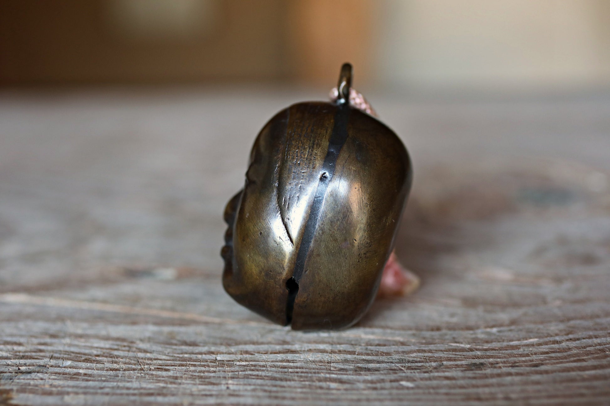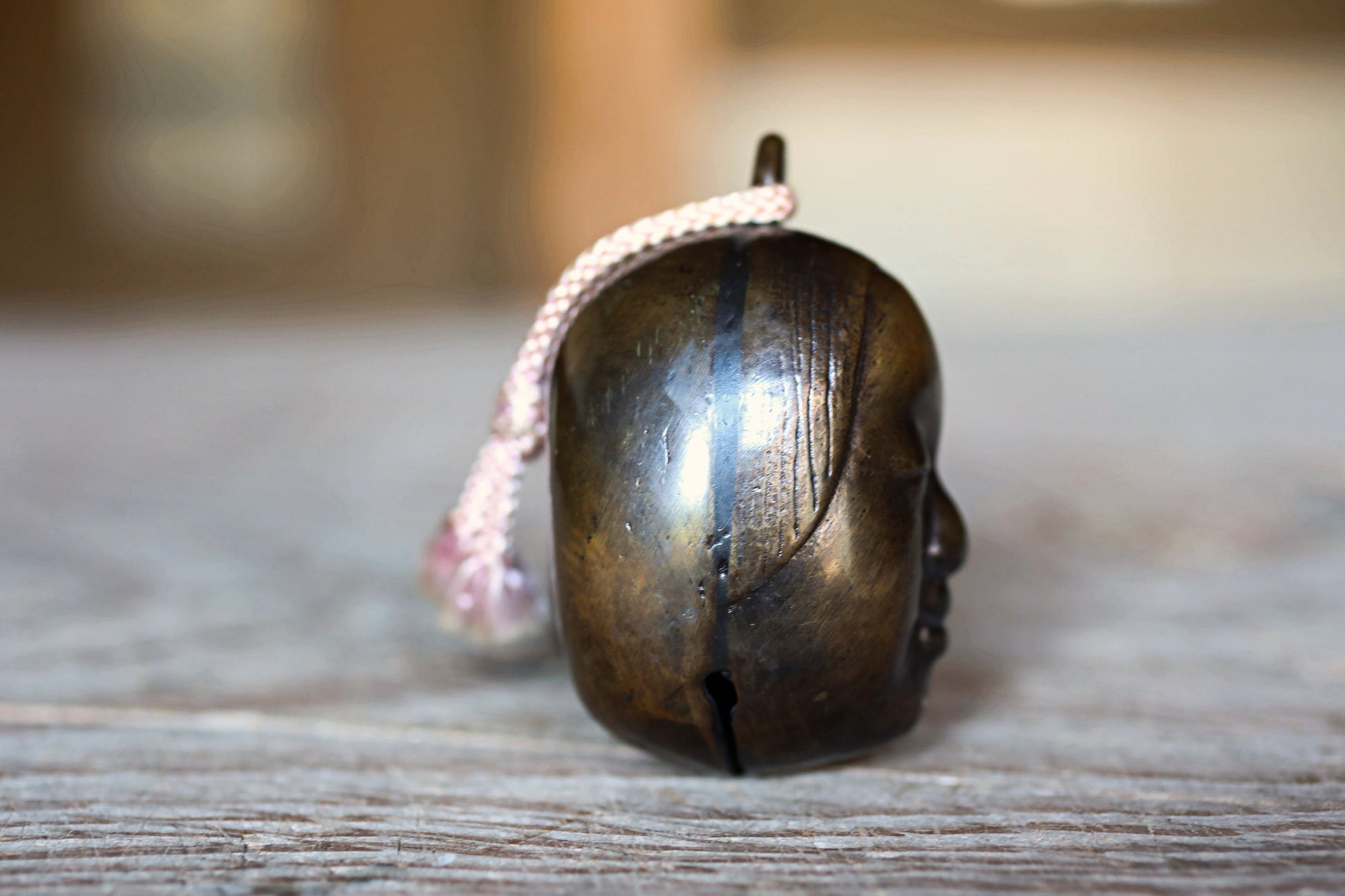 Japanese vintage 1930s small Bronze bell NOH MASK KOOMOTE doll ornament Paper weight, hand metal craft H3×1.8in/H7.5×4.5cm