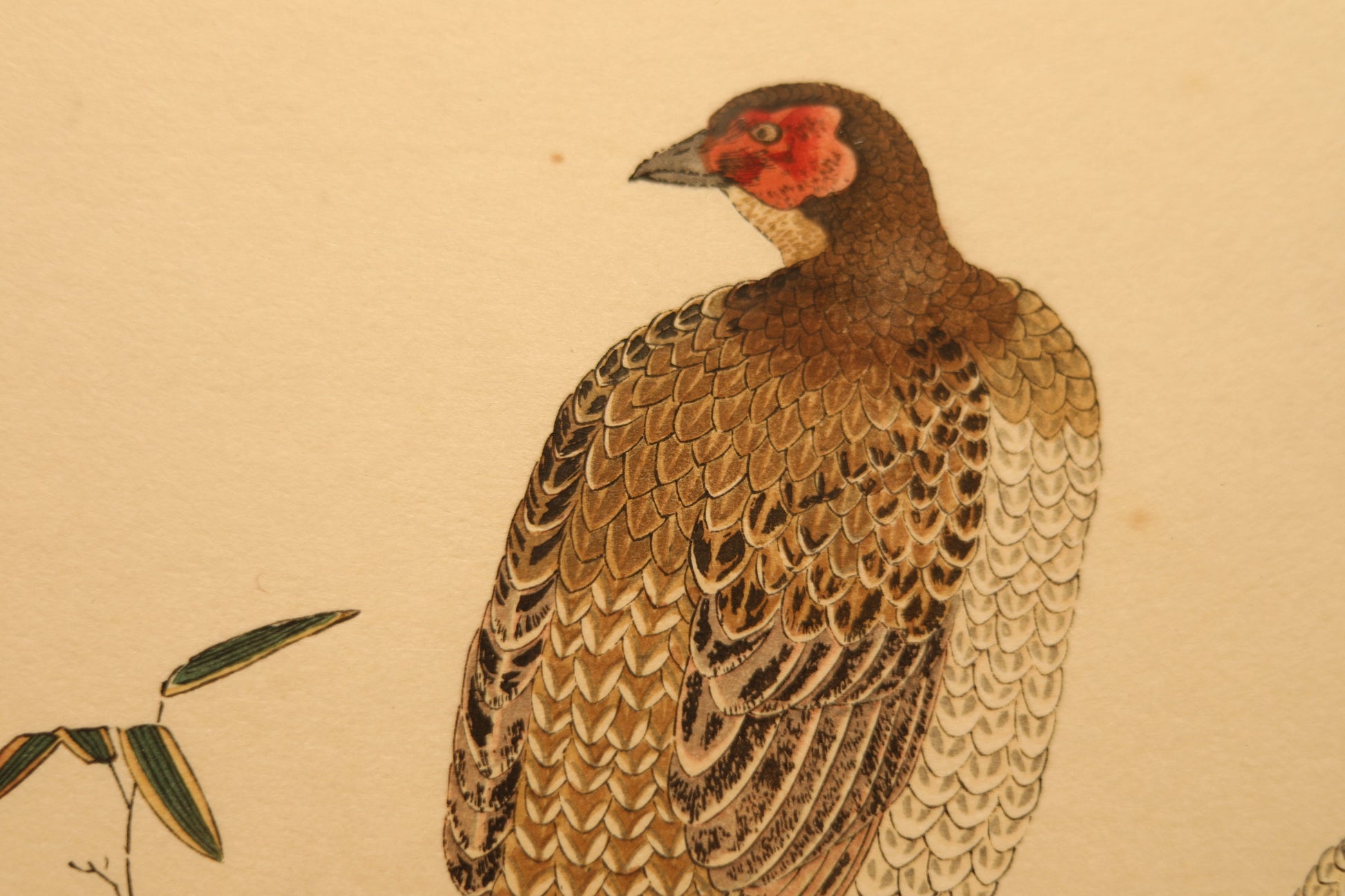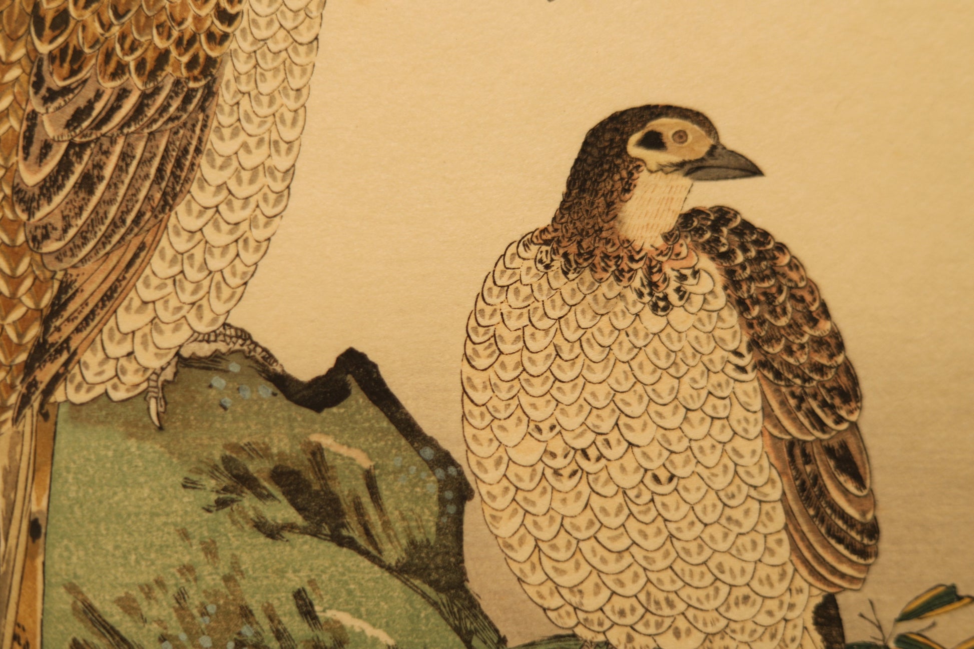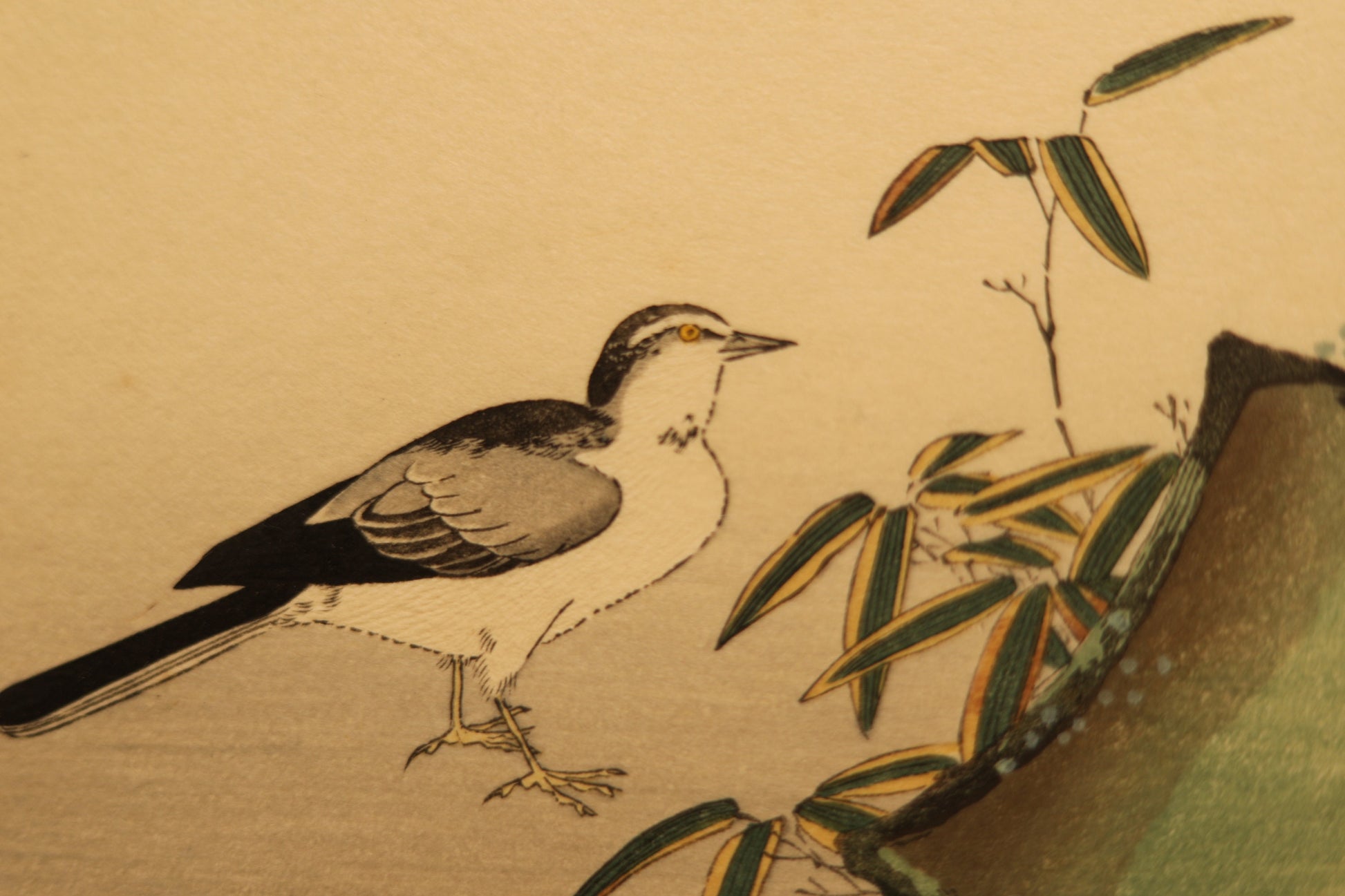 On the top are Japanese poems written by the artist about the Wagtail and Copper Pheasant, respectively.