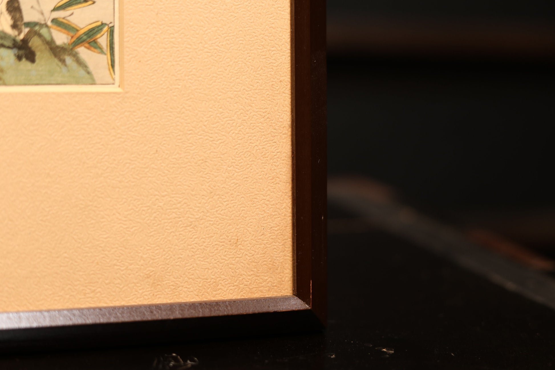 Japanese vintage art of birds Wagtail, Copper Pheasant and Kanji calligraphy poem,block printing with flame, wall deco picture H16.3×W21.1in.