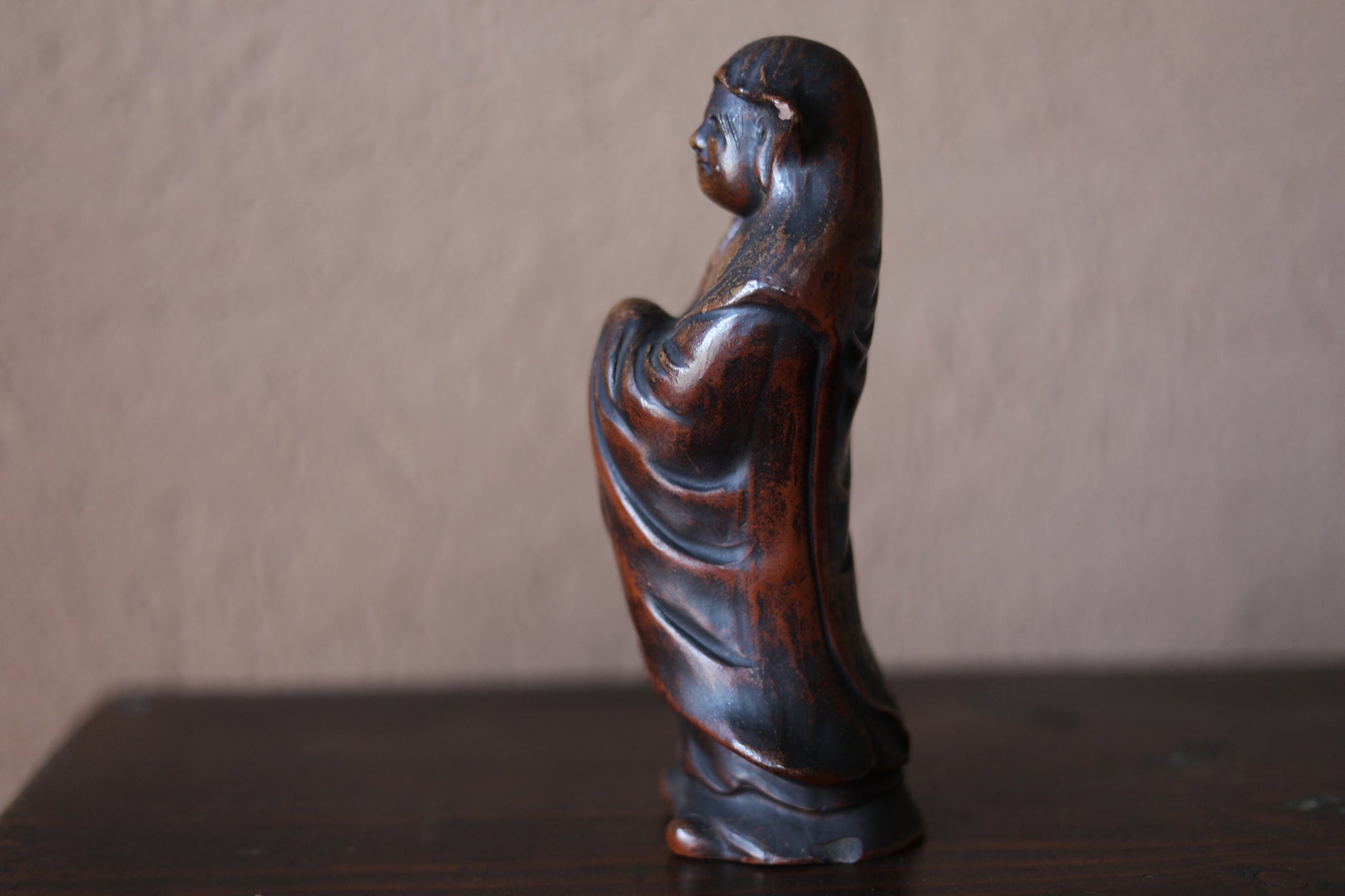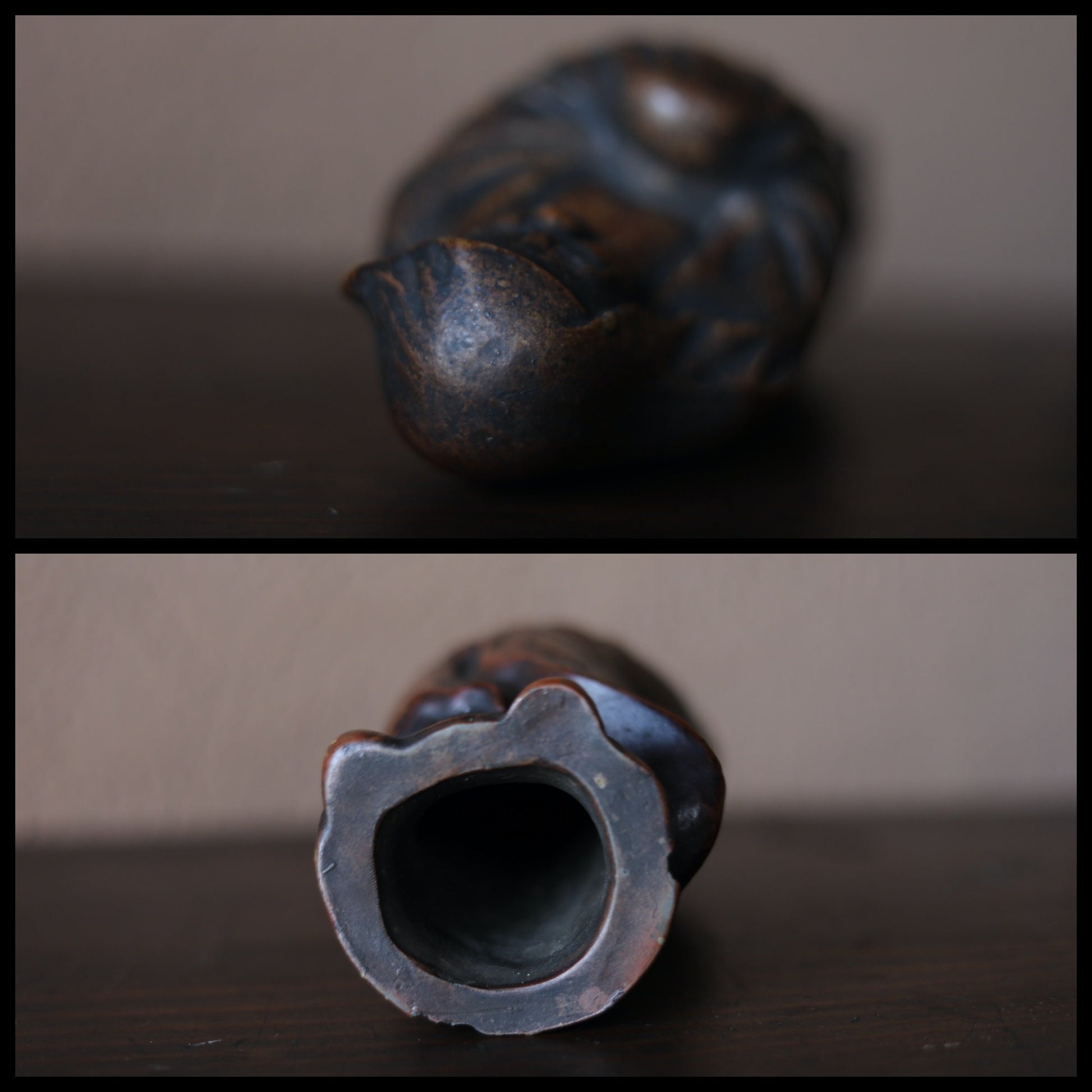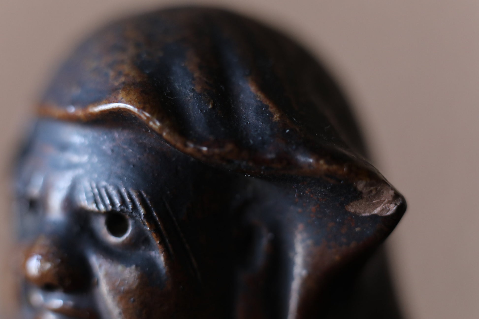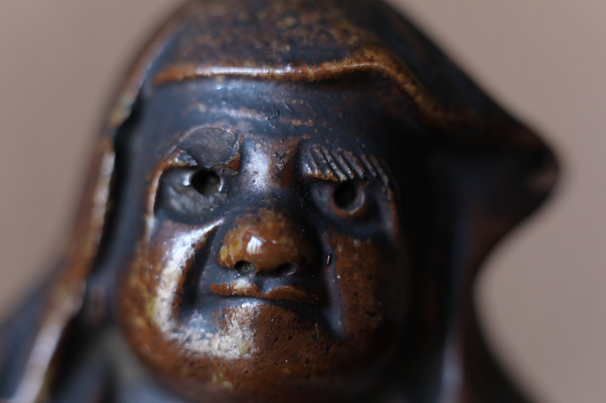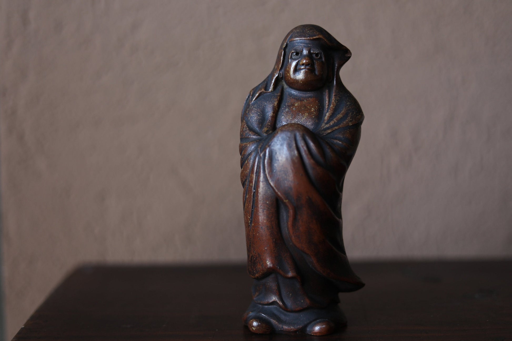 In Japan, dolls of Daruma have been preserved in various forms. This is an impressive figure staring firmly at something. Despite the fact that it is just a standing figure, you can feel the flow. The pottery known as Bizen ware has a unique clay color that gives it a taste. Furthermore, this old Bizen pottery has deepened in color over time and changed even cooler. This old Bizen is very popular in Japan.