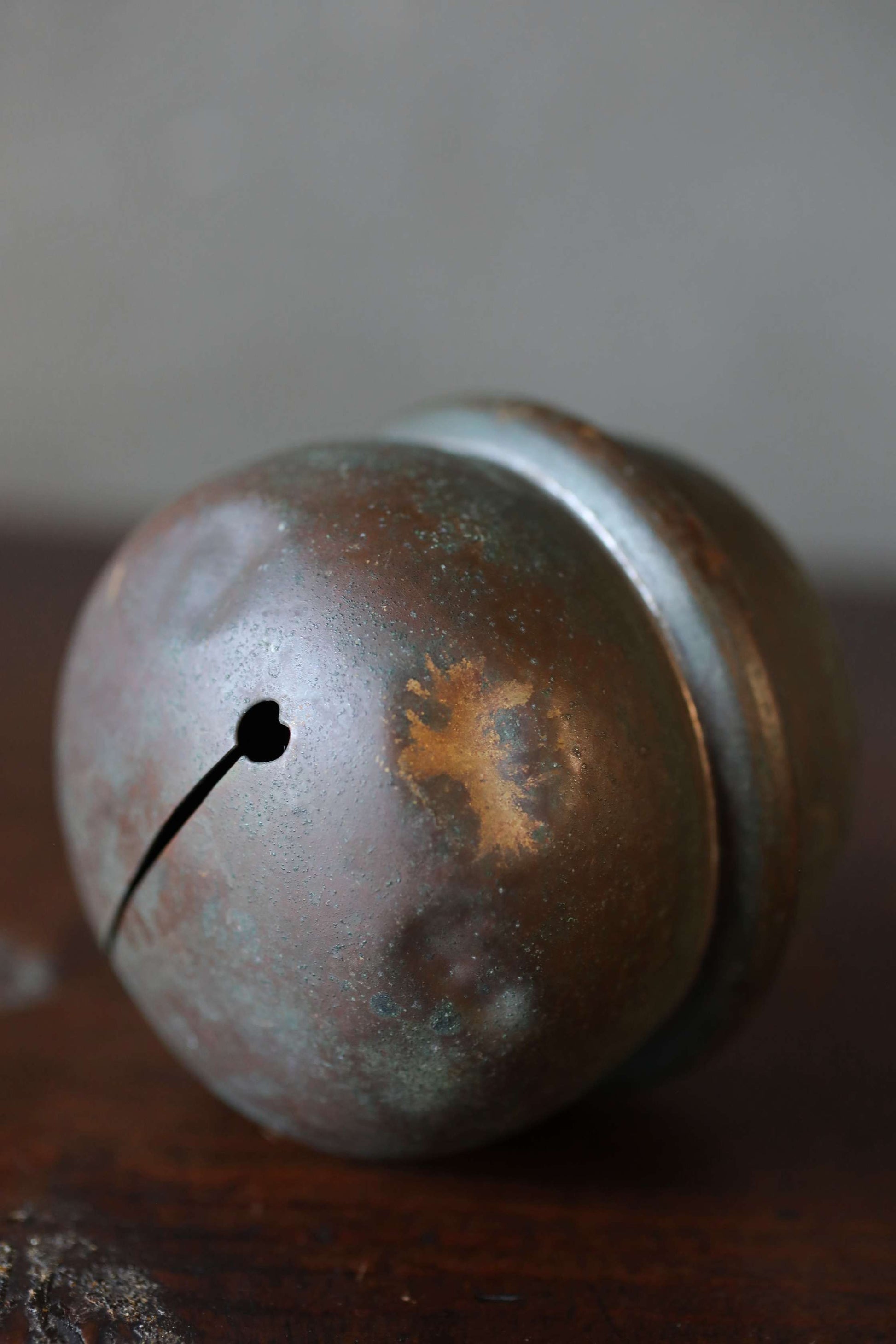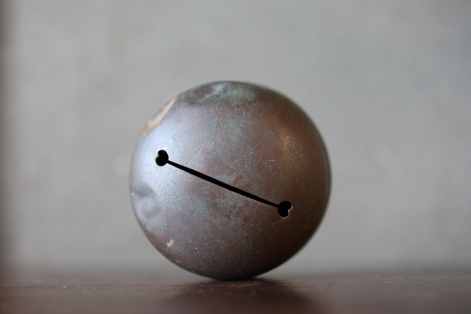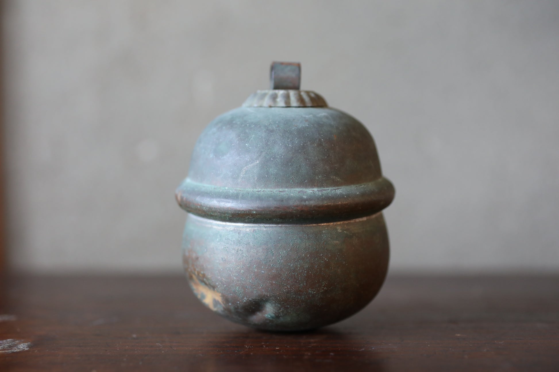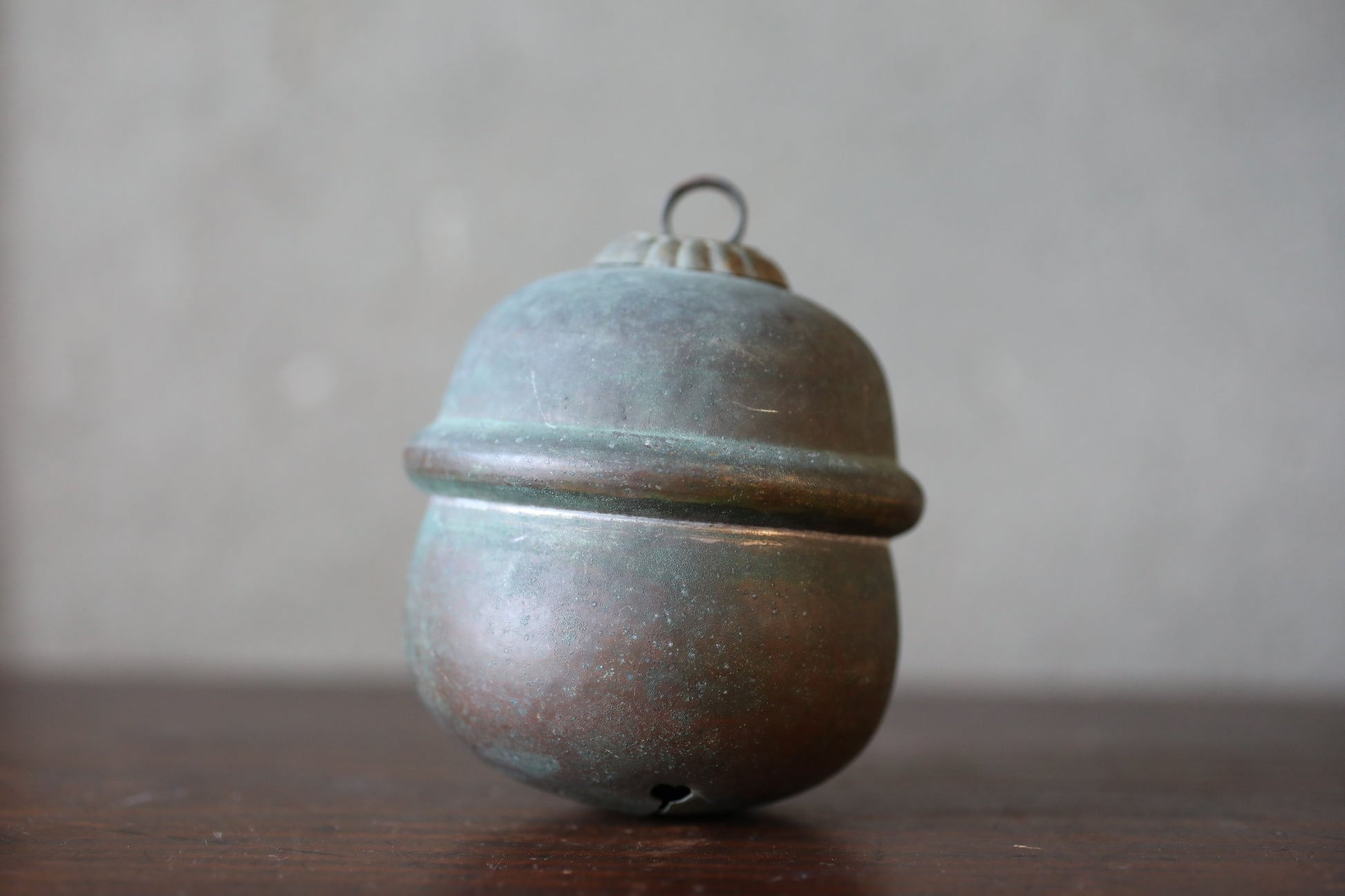 This is a very old and beautiful bell. It was made around the Meiji era. The copper has turned deep black with age and is very cool. It is carefully made and in good condition.