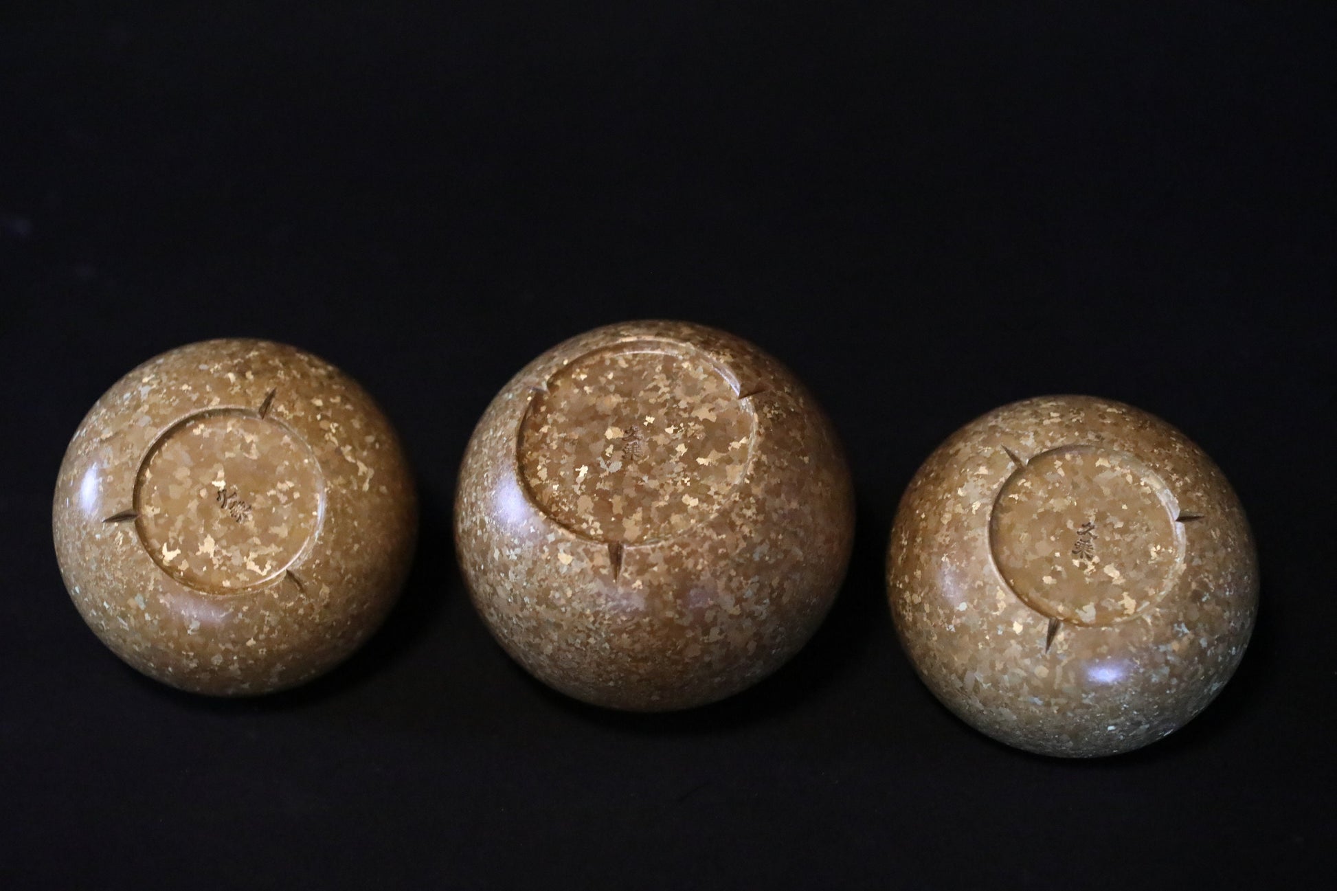 Japanese vintage Bronze vessel containers set for Buddhist alter with Kanji signature metal craft H2.2×3.5in/H5.5×9cm.