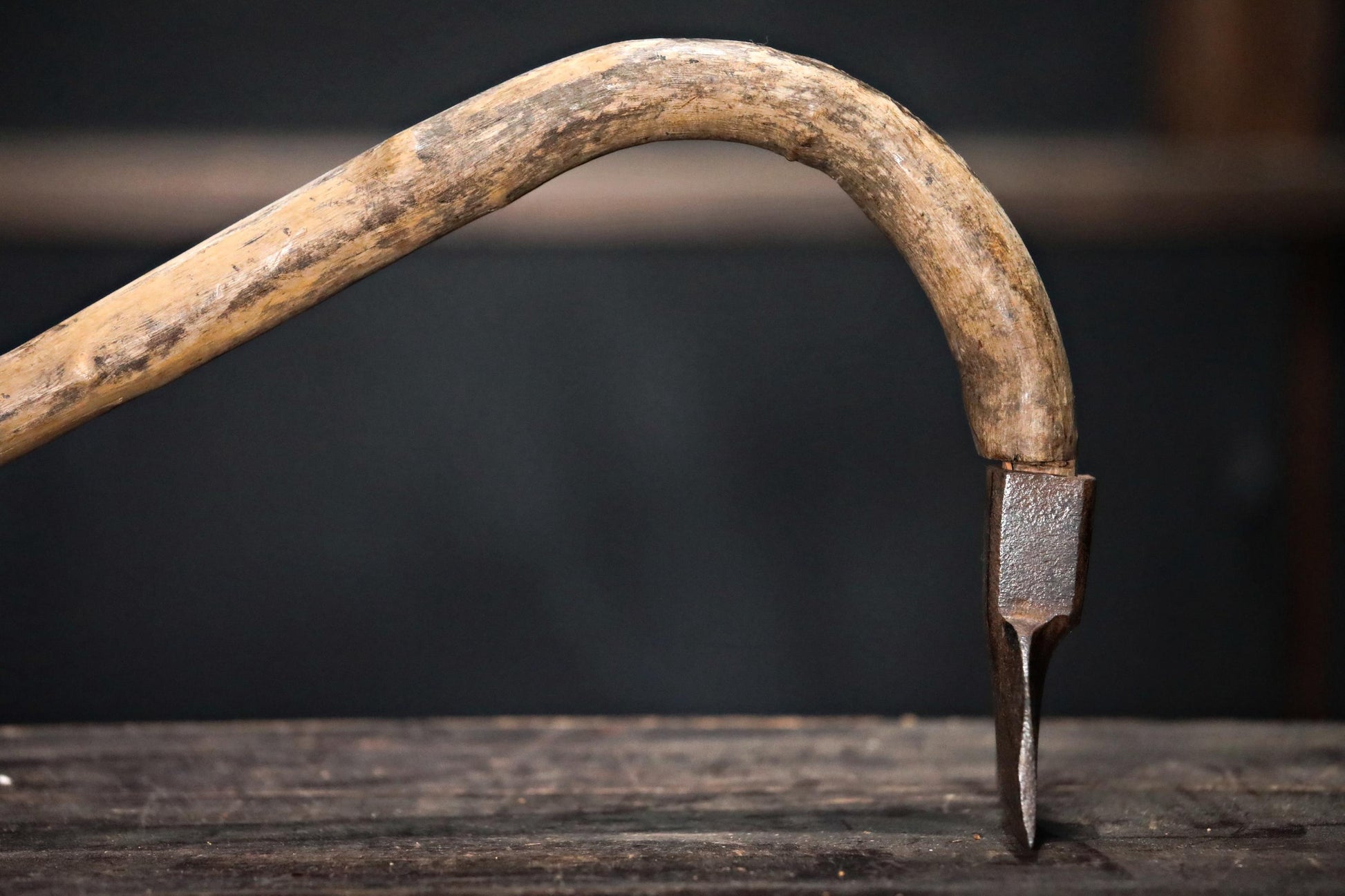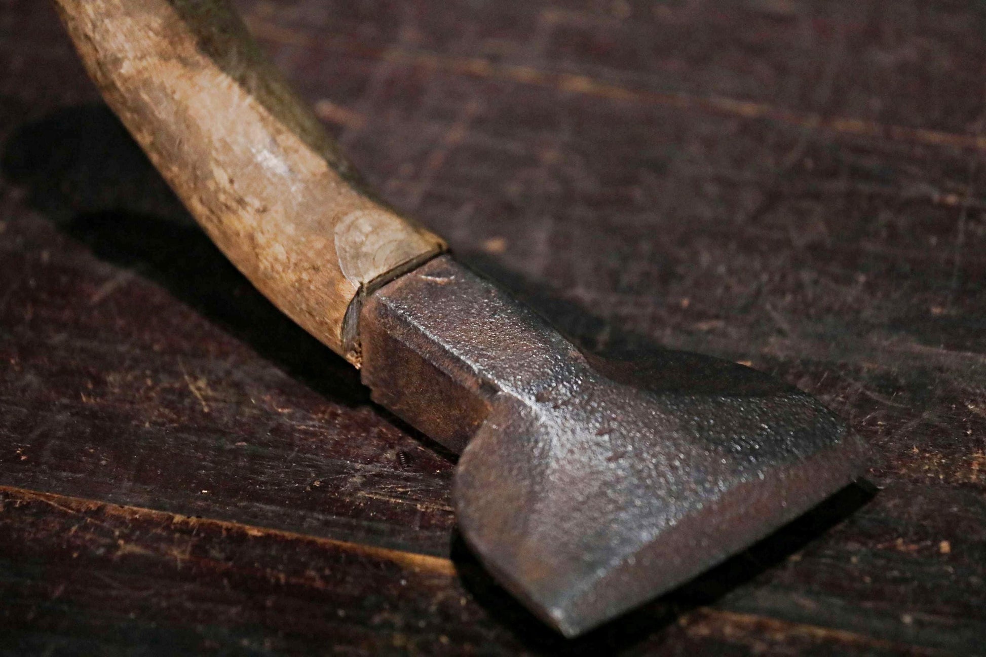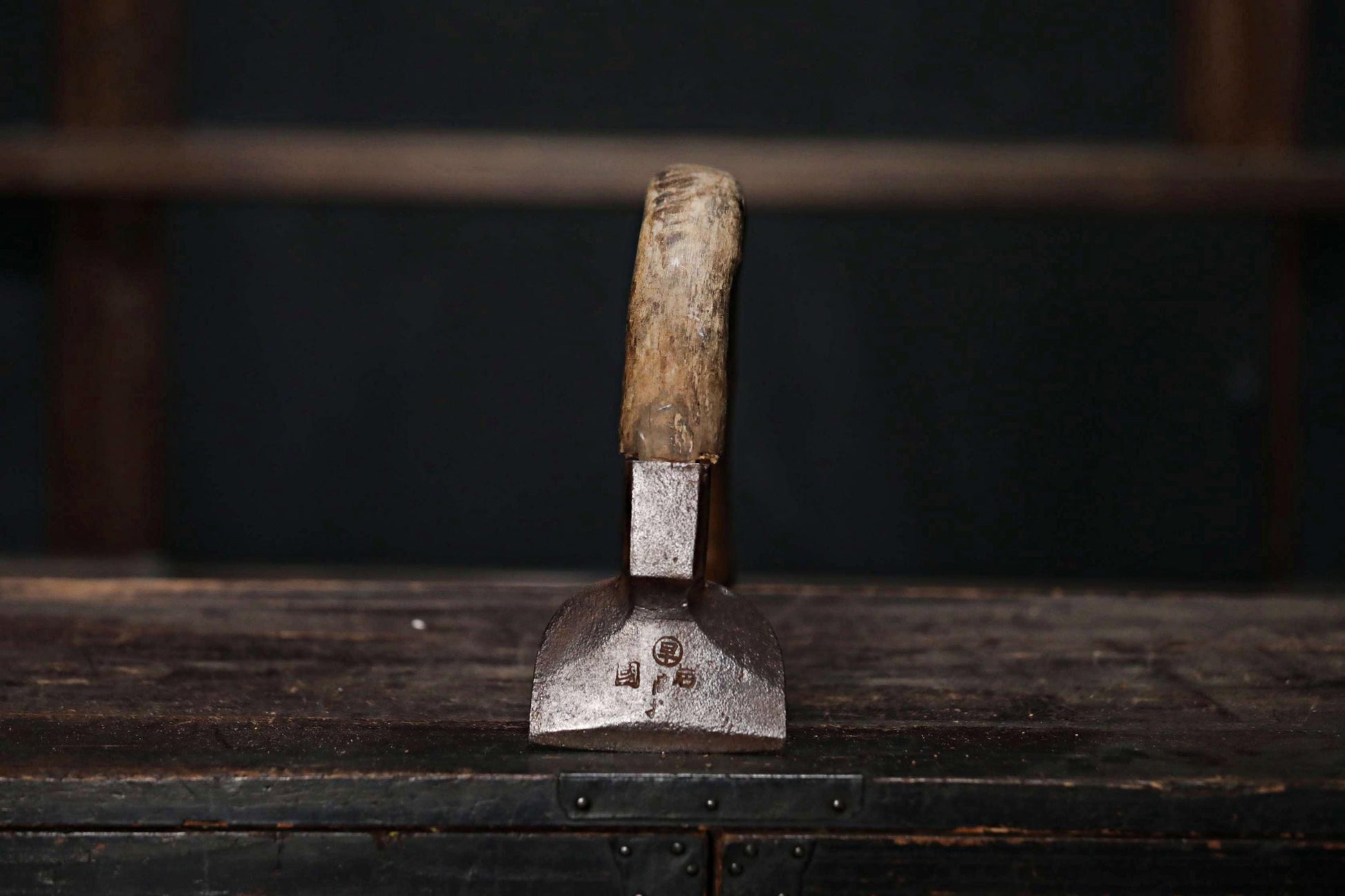 This is a carpenter's tool called a 釿 CHONA caster's knife. Since ancient times, various traditional tools have been used in Japanese wooden construction.