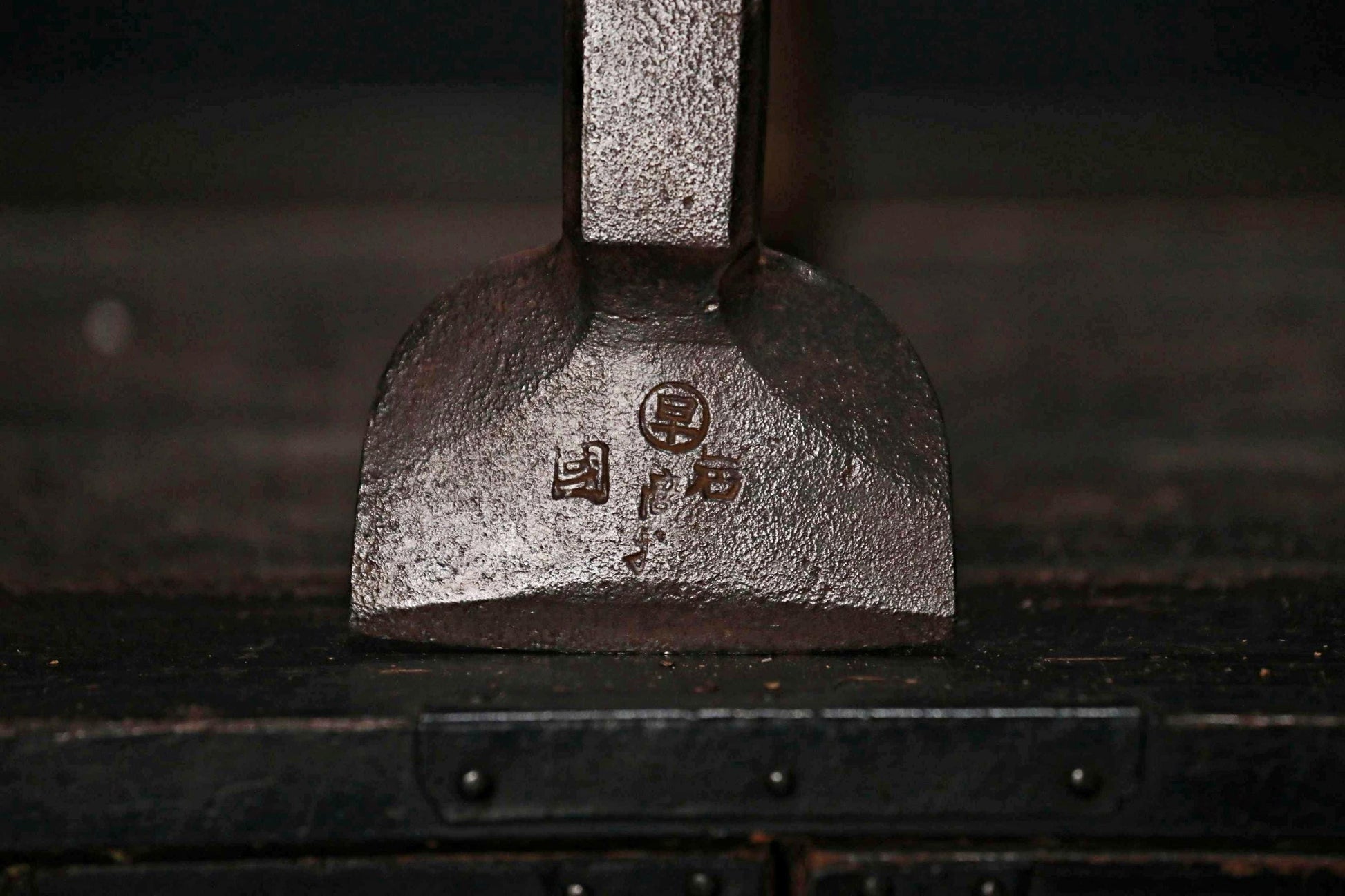 Japanese vintage caster's knife 釿 CHONA adze carpenter tool with sign, Carpenter's Axe, MINGEI hand made wood tool 1930s H24.8in/H63cm.