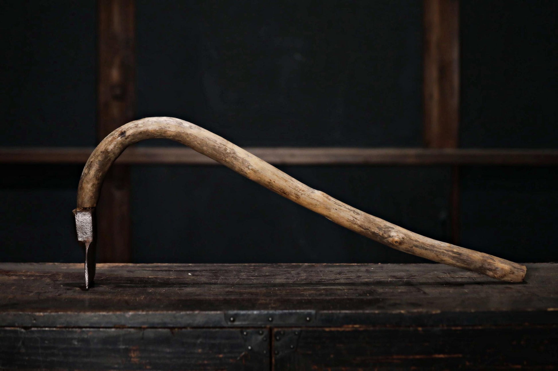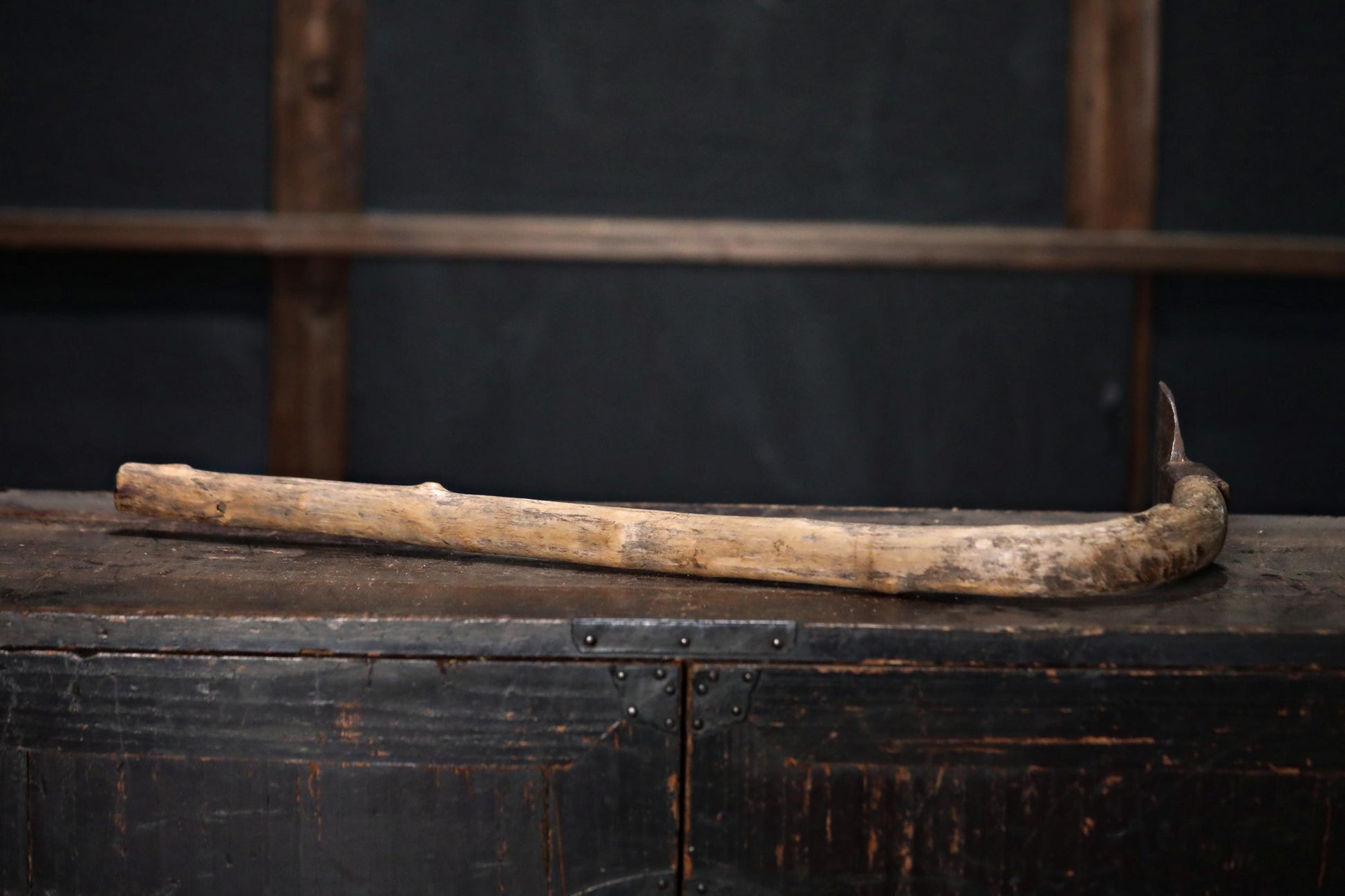 Japanese vintage caster's knife 釿 CHONA adze carpenter tool with sign, Carpenter's Axe, MINGEI hand made wood tool 1930s H24.8in/H63cm