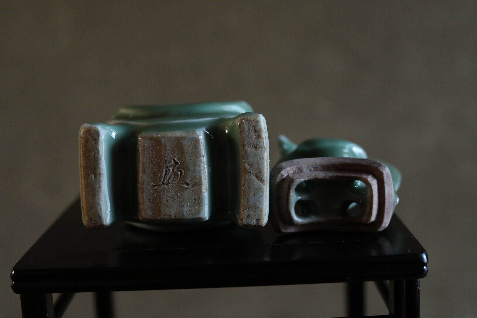 Celadon has been loved in Japan since ancient times. This incense burner, made before mass production, is of course handmade, and the thickness of the unique thickened glaze is beautifully smooth and elegant. When you hold it in your hand, its unique aura has a charm not found in newer items.