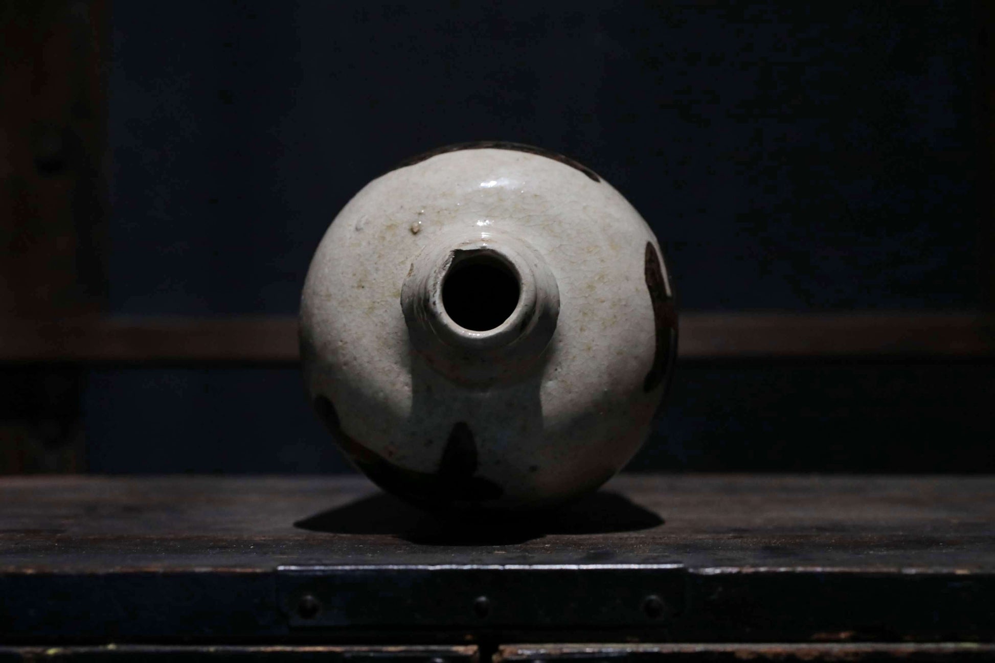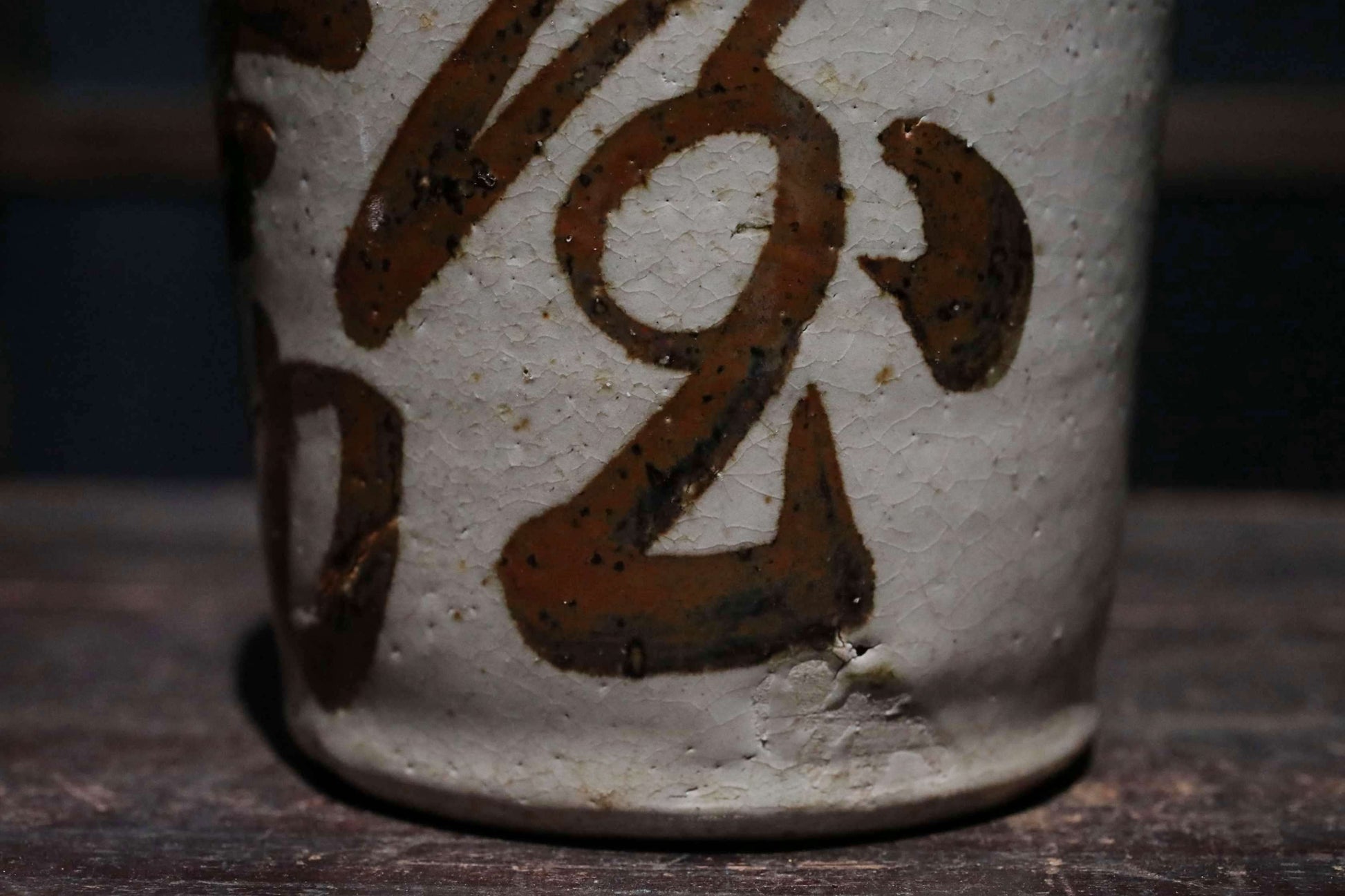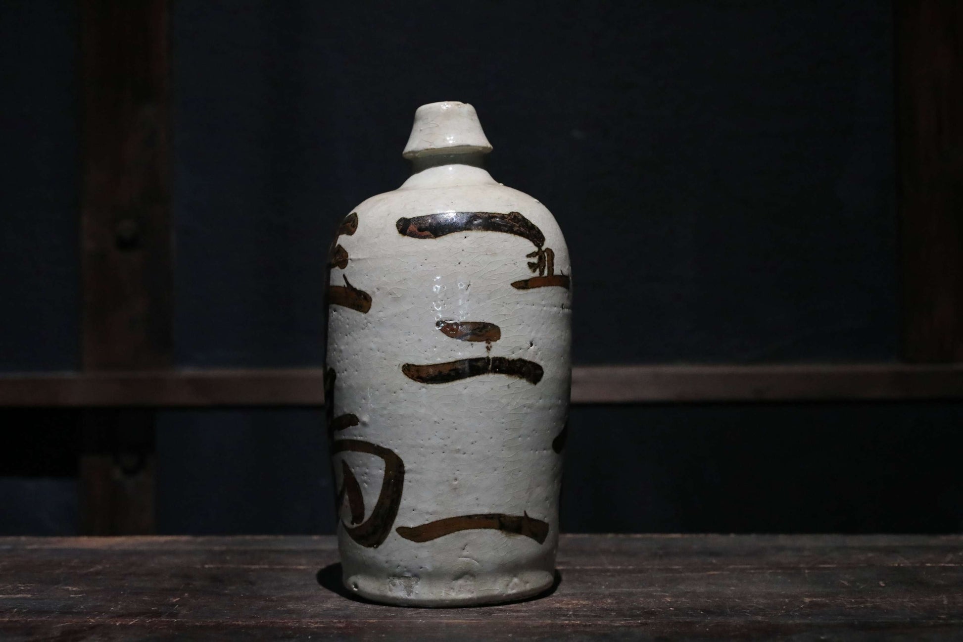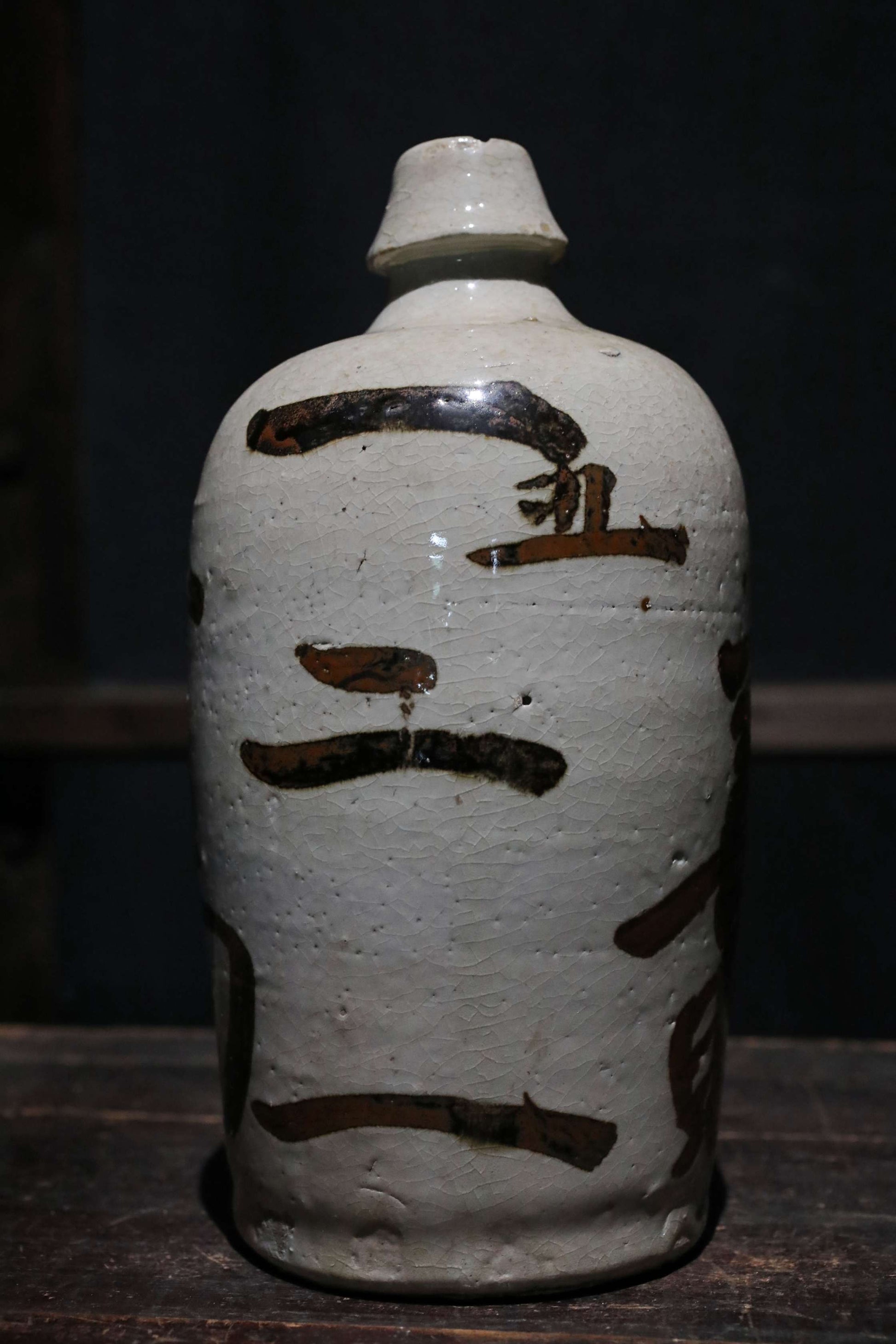 Japanese Antique ceramic jar Sake bottle Tokkuri 1920s Japan art craft with Kanji calligraphy ornament H10.6×5.1in/H27×13cm