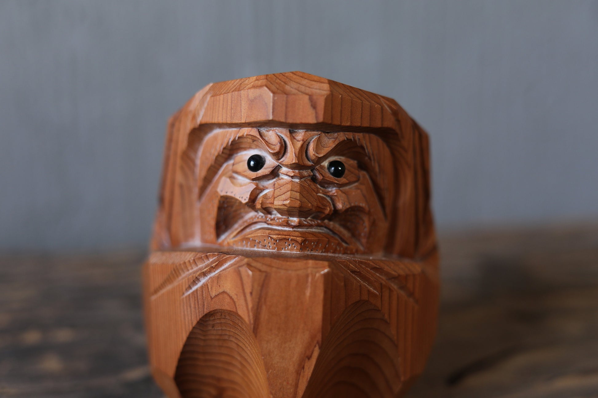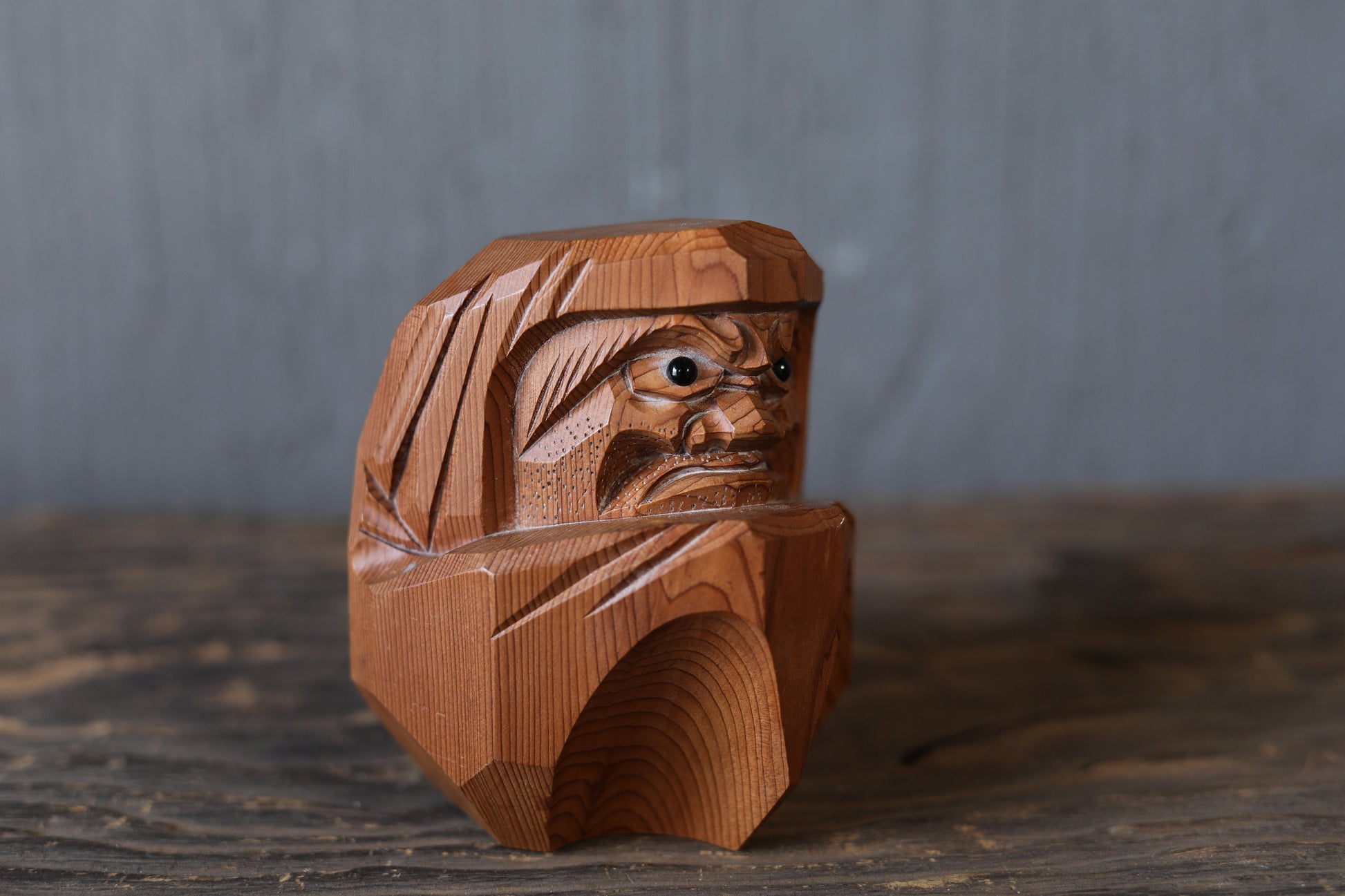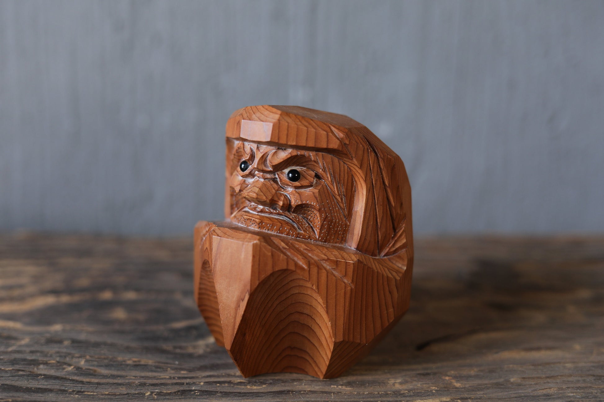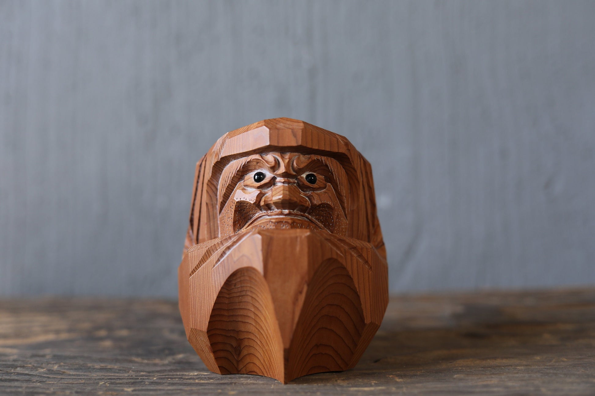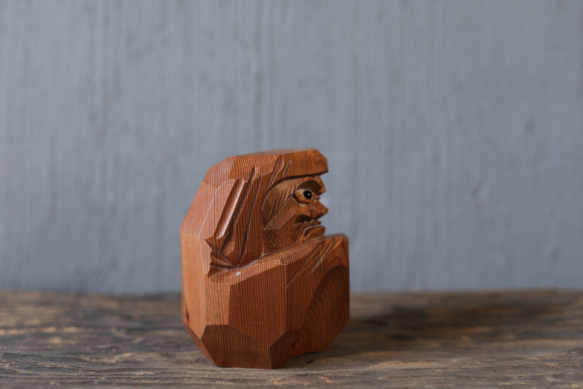 Japanese vintage doll Figurine of traditional Japanese character DARUMA hand carved made of wood hand carved wooden doll H3.9×3.5in/H10×9cm