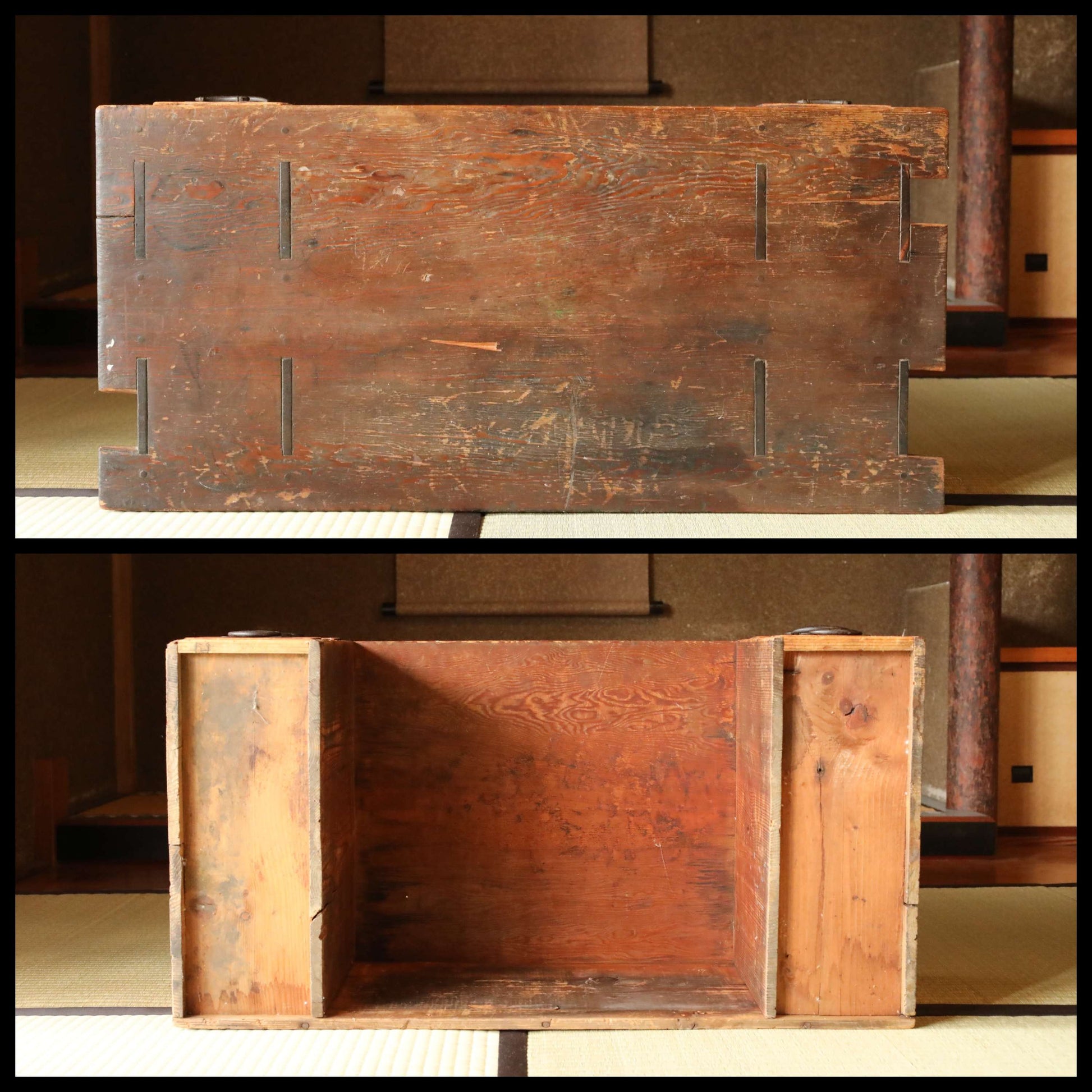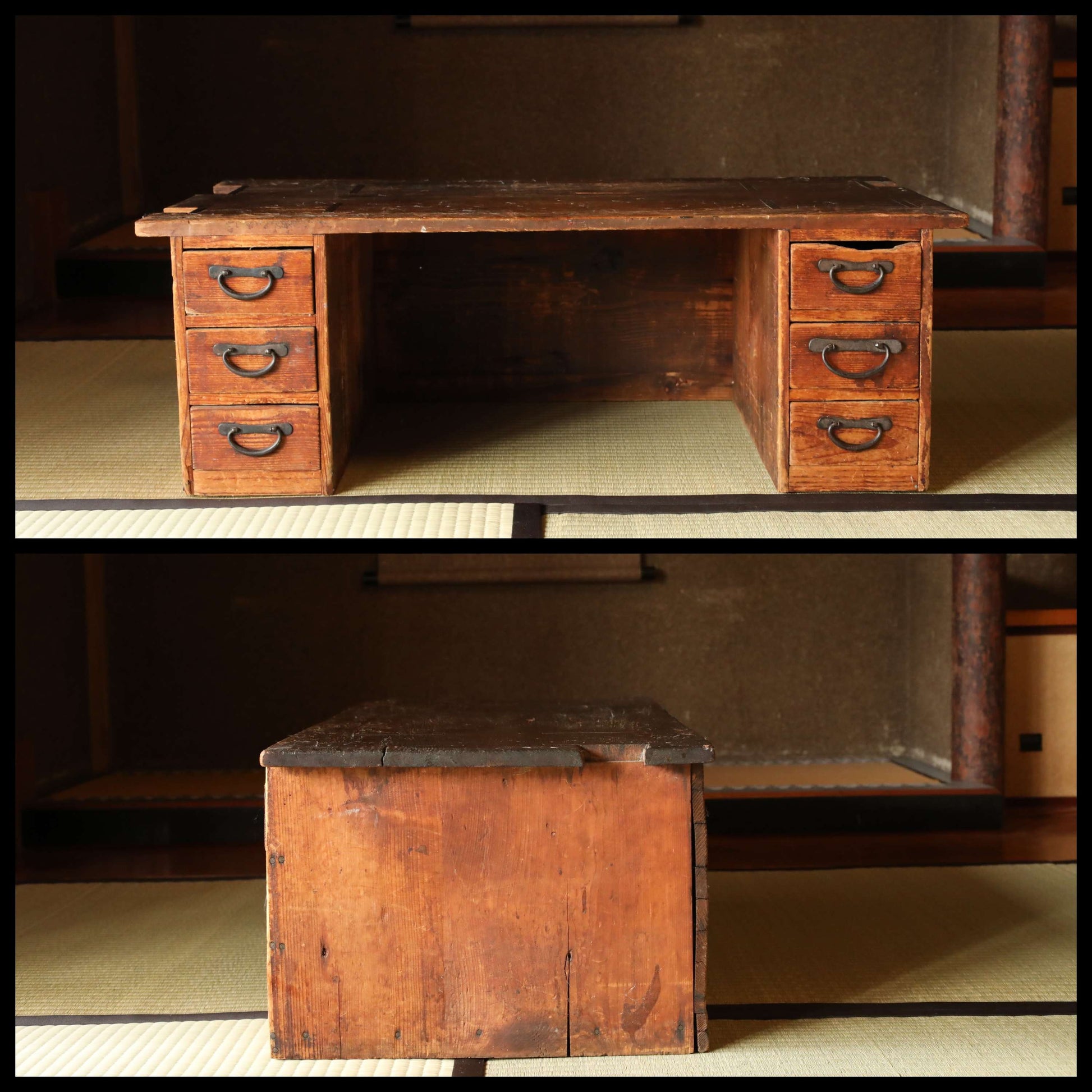This is a low desk. It has six small drawers on each side. It has been used for studying and calligraphy.