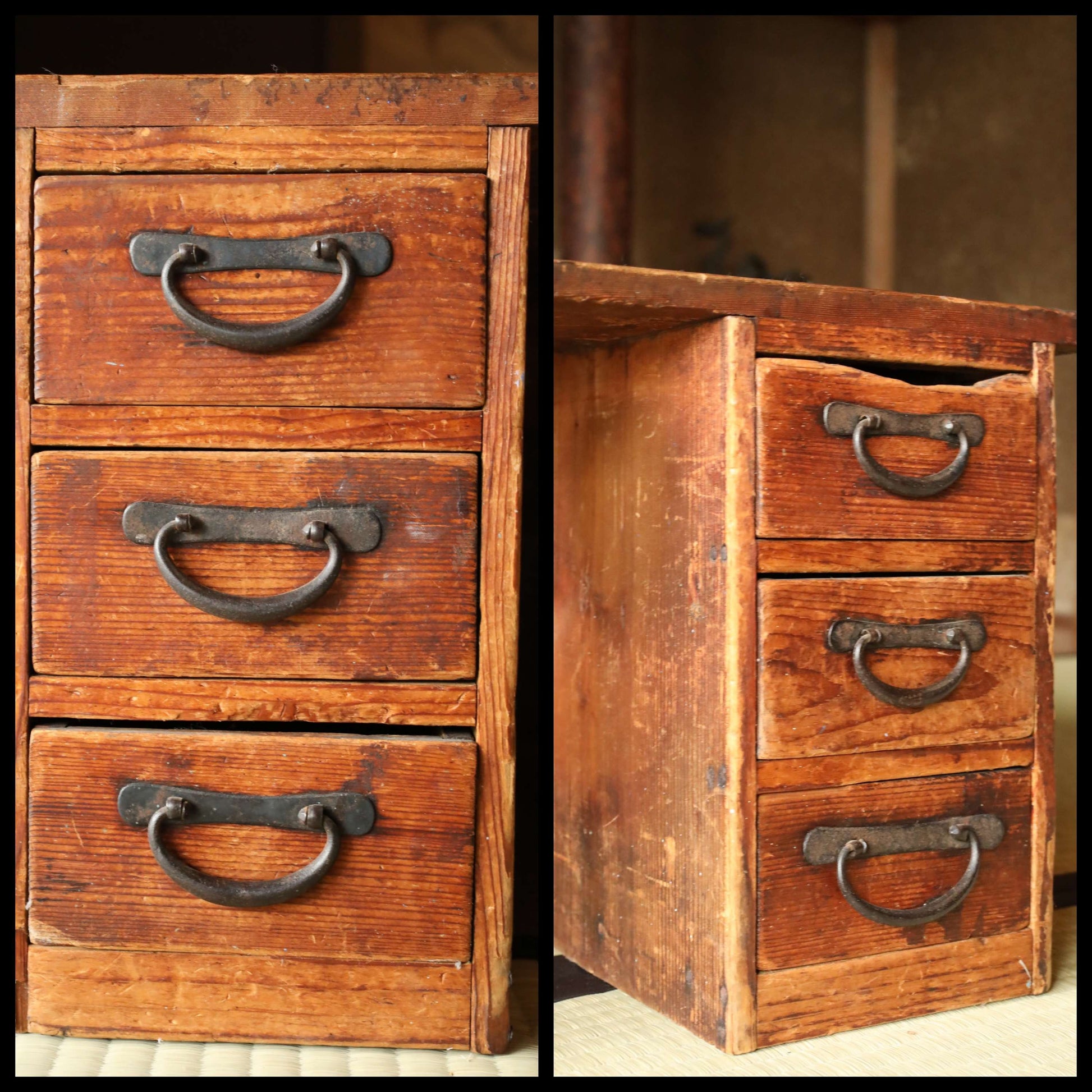 Japanese vintage furniture low table ,Chest of Drawers "Tansu" with 6 drawers and handles 1950s H11.4in×W33.4in/H29×84.8cm