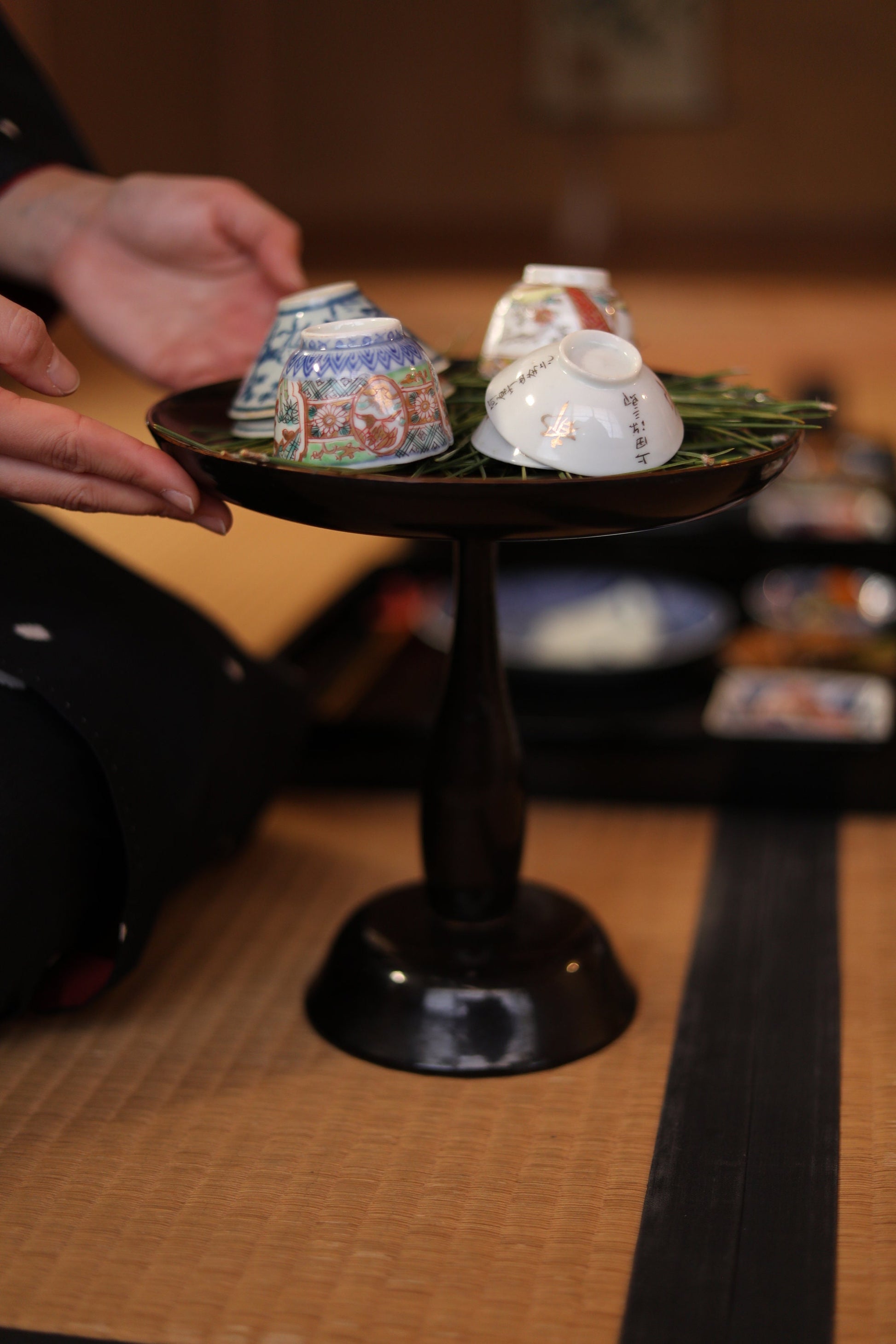 It was also used by aristocrats to place sweets and other sweets on the tatami when eating. A tray with low legs, called an お膳ozen, plays a similar role.