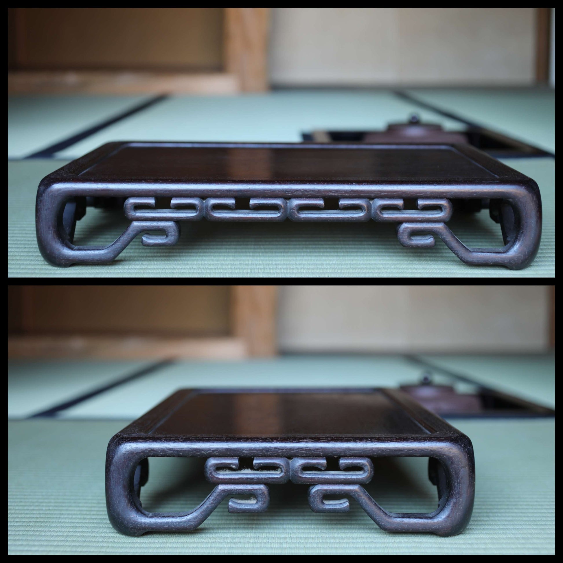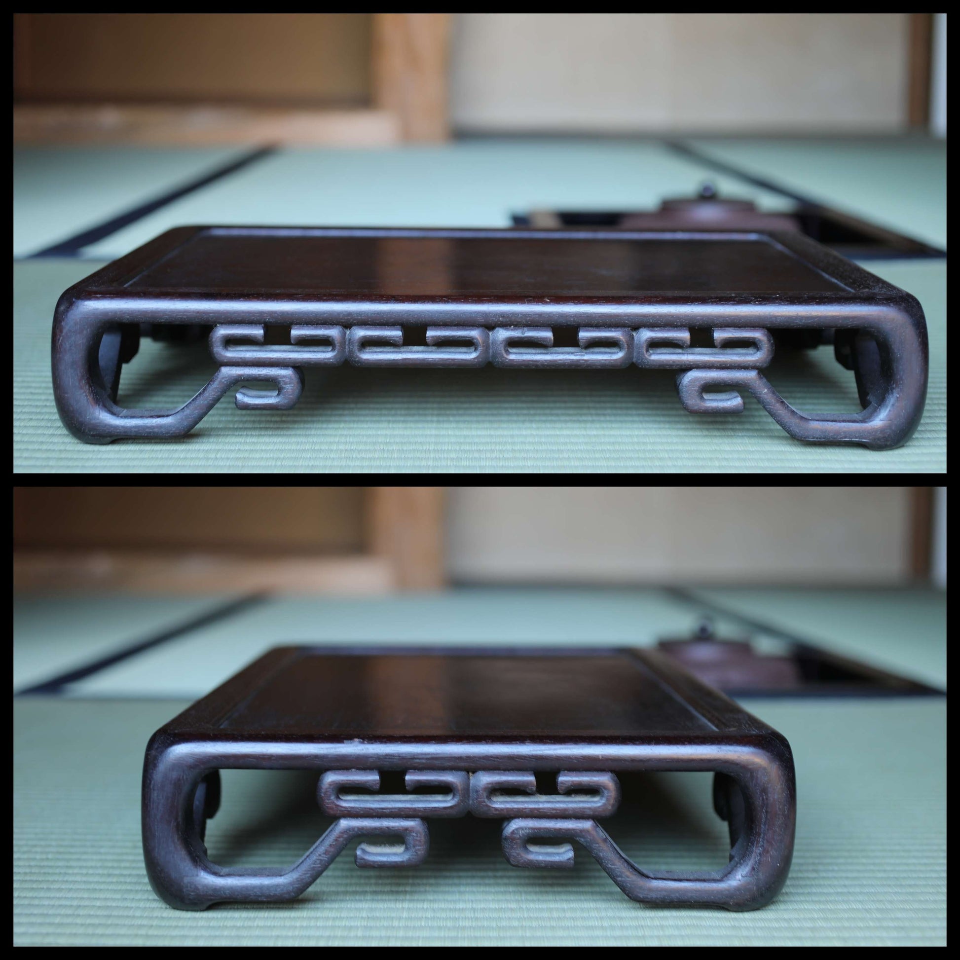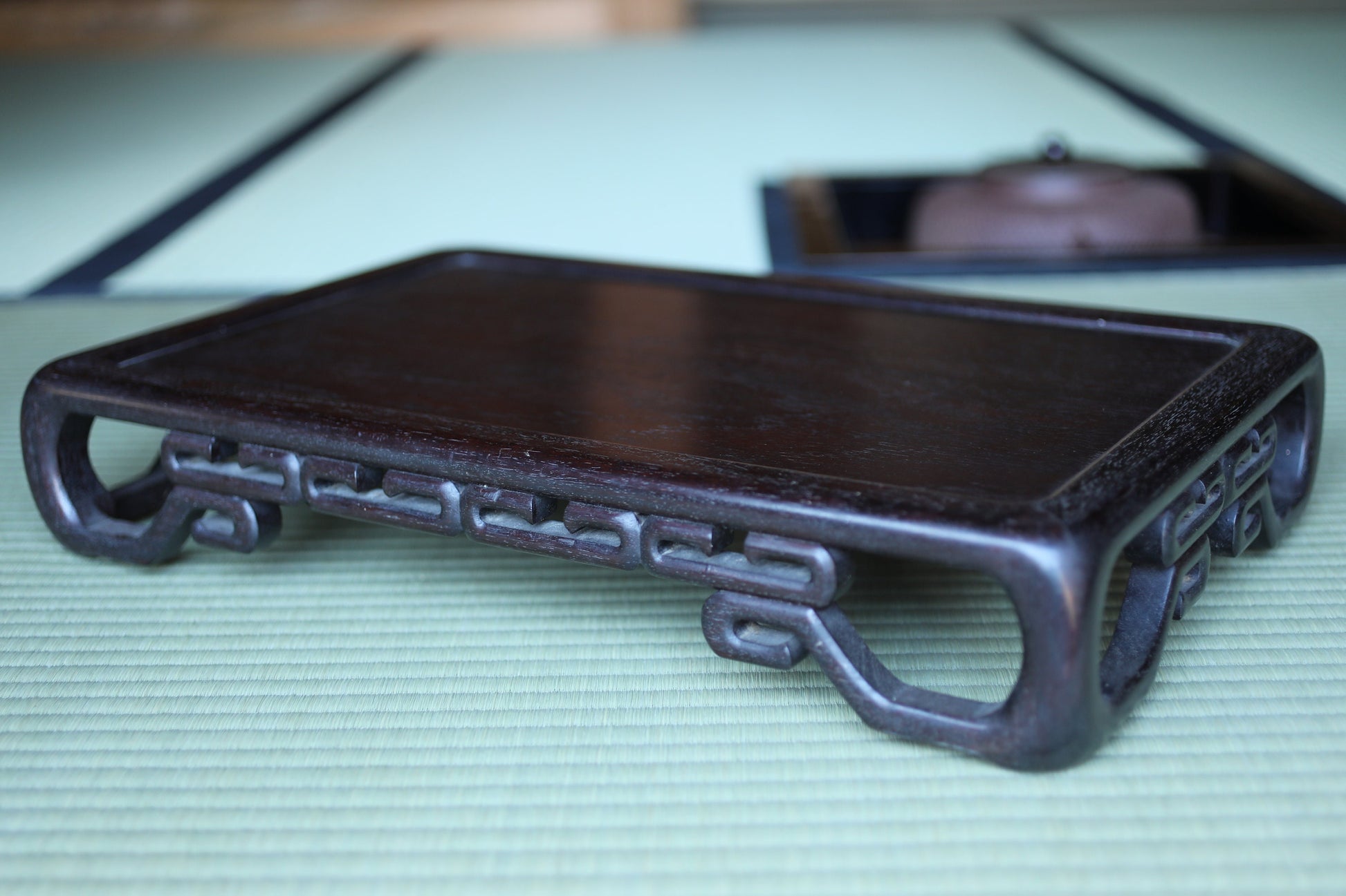Japanese vintage furniture wooden pedestal tray tea table with openwork legs KARAKI ,Tea ceremony, IKEBANA, BONSAI W18.9×D12.4in/W48×31.5cm