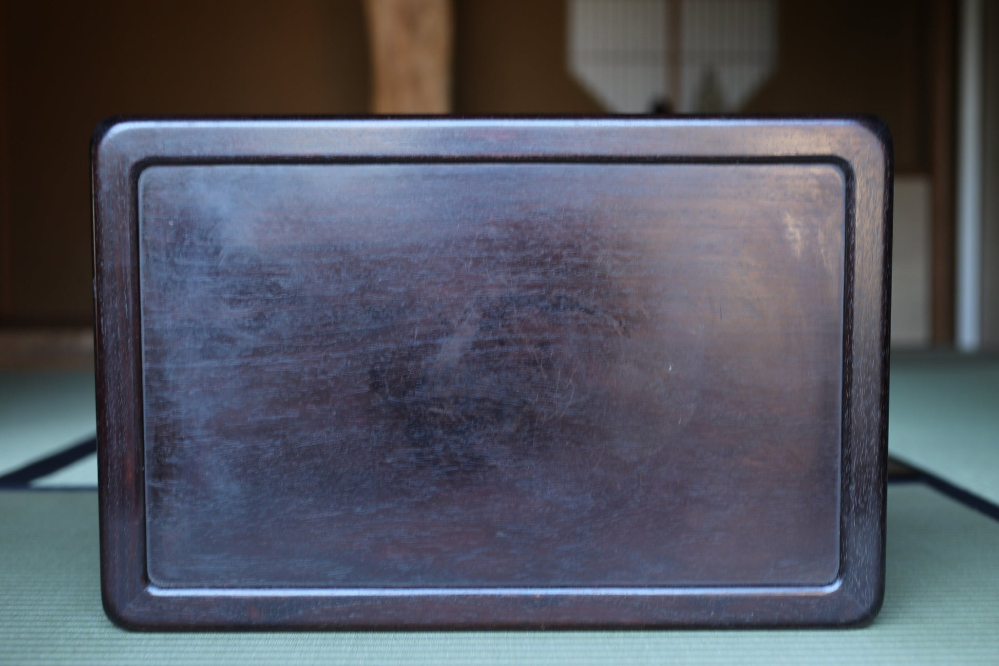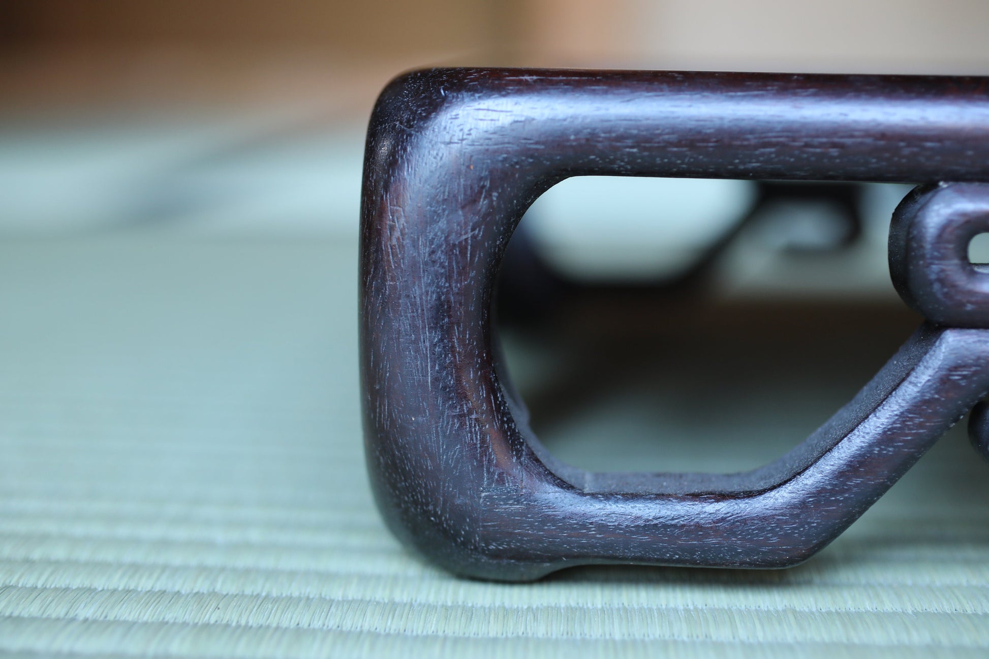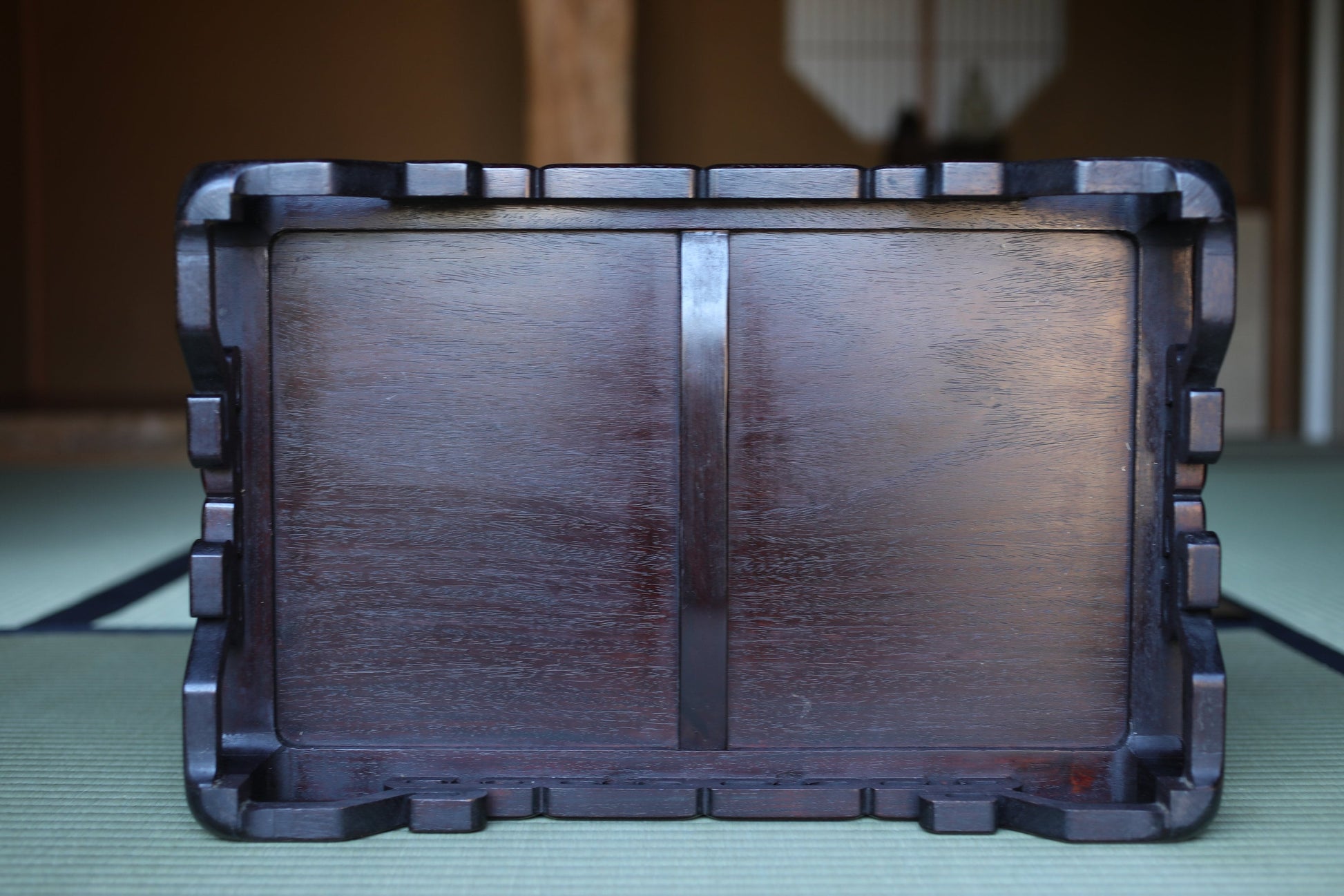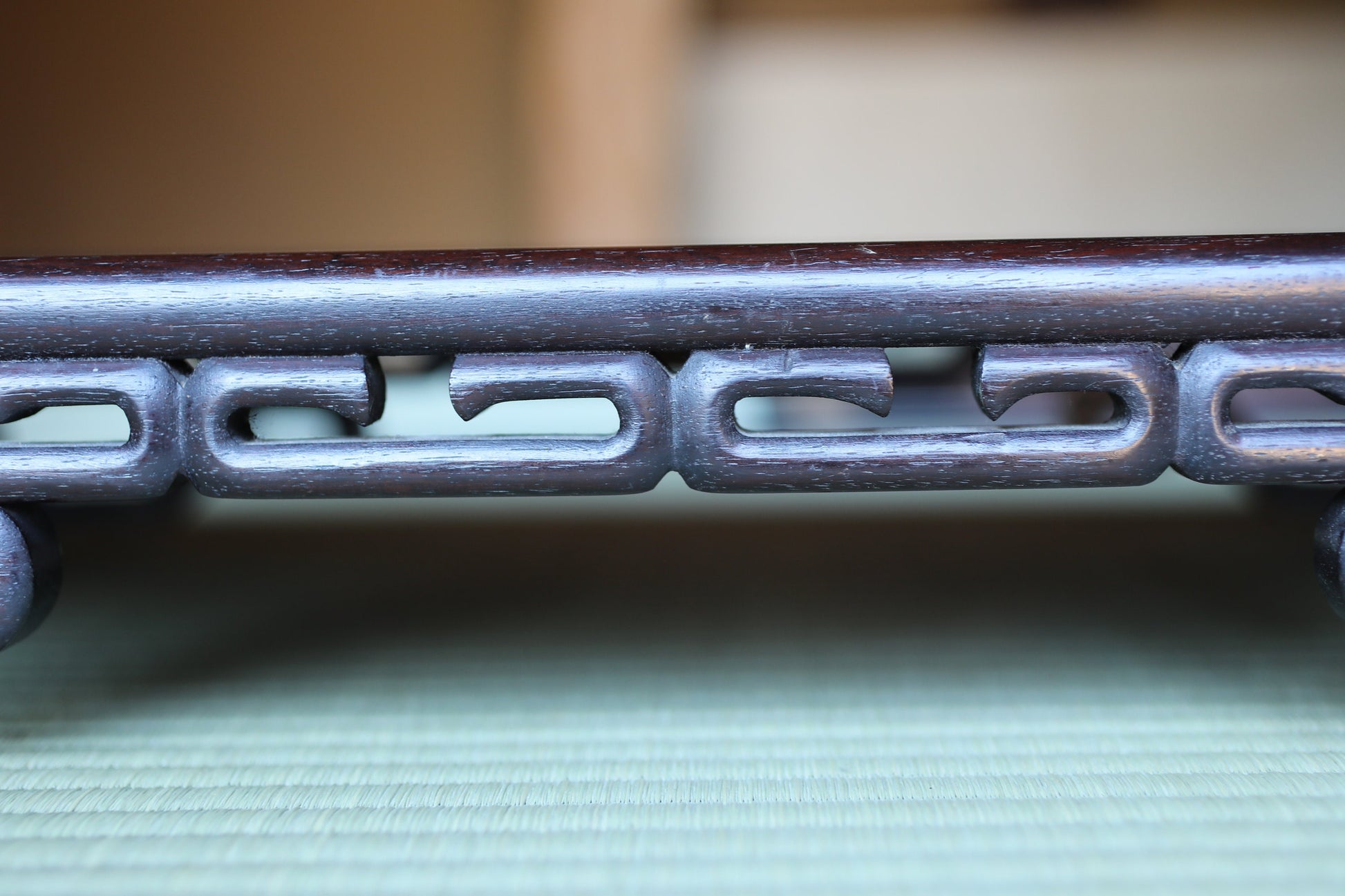 Japanese vintage furniture wooden pedestal tray tea table with openwork legs KARAKI ,Tea ceremony, IKEBANA, BONSAI W18.9×D12.4in/W48×31.5cm