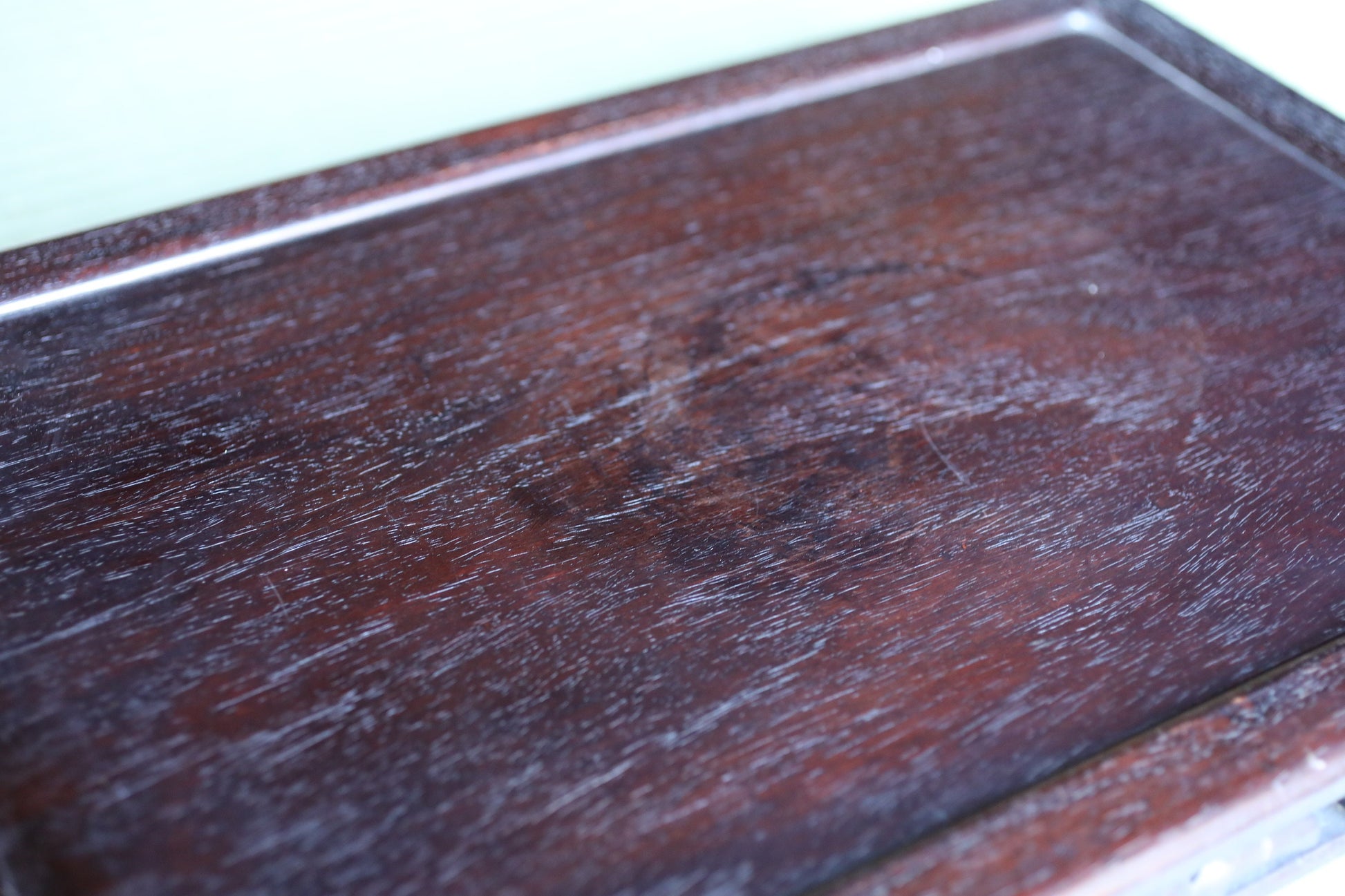 Japanese vintage furniture wooden pedestal tray tea table with openwork legs KARAKI ,Tea ceremony, IKEBANA, BONSAI W18.9×D12.4in/W48×31.5cm.