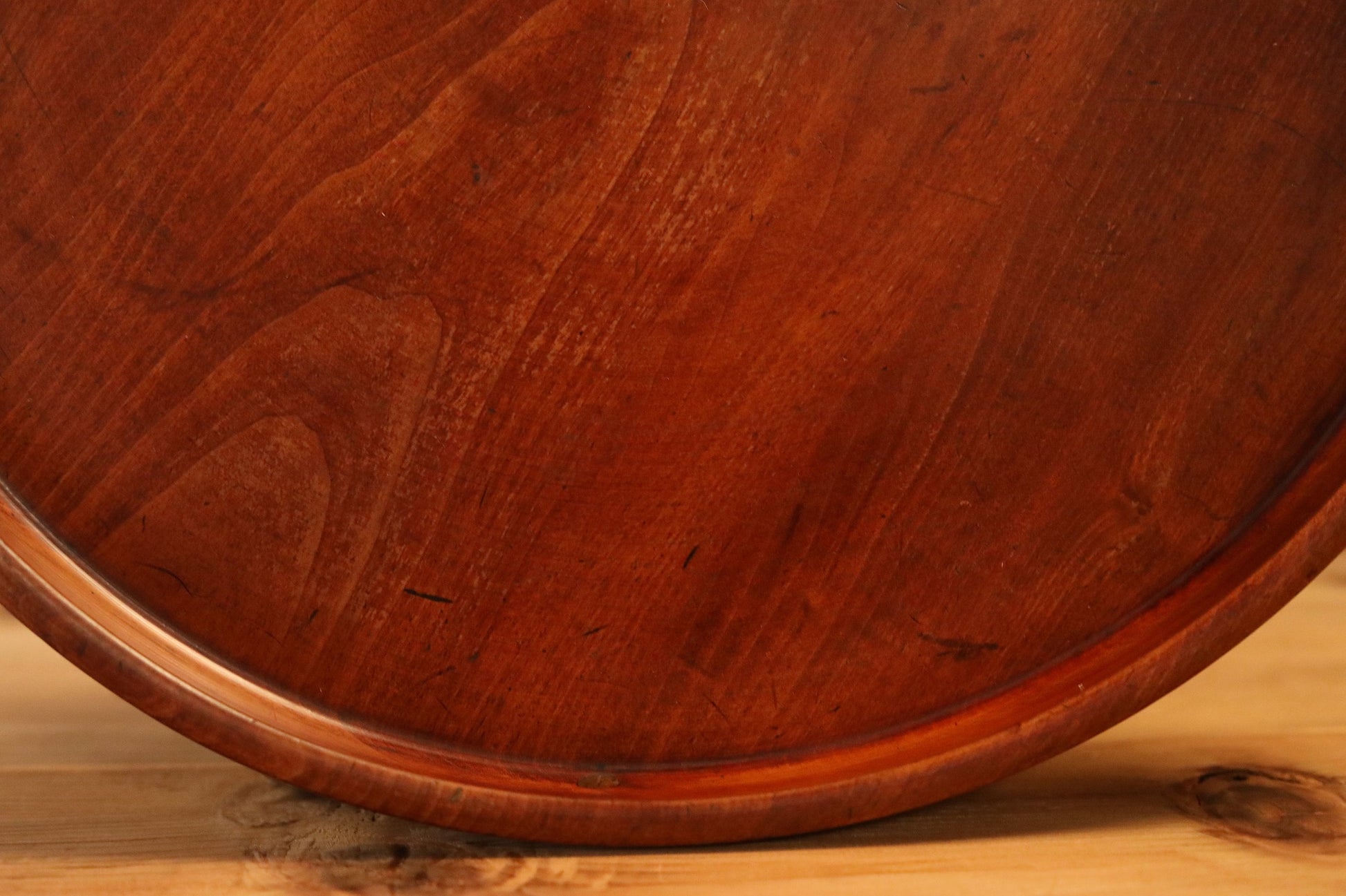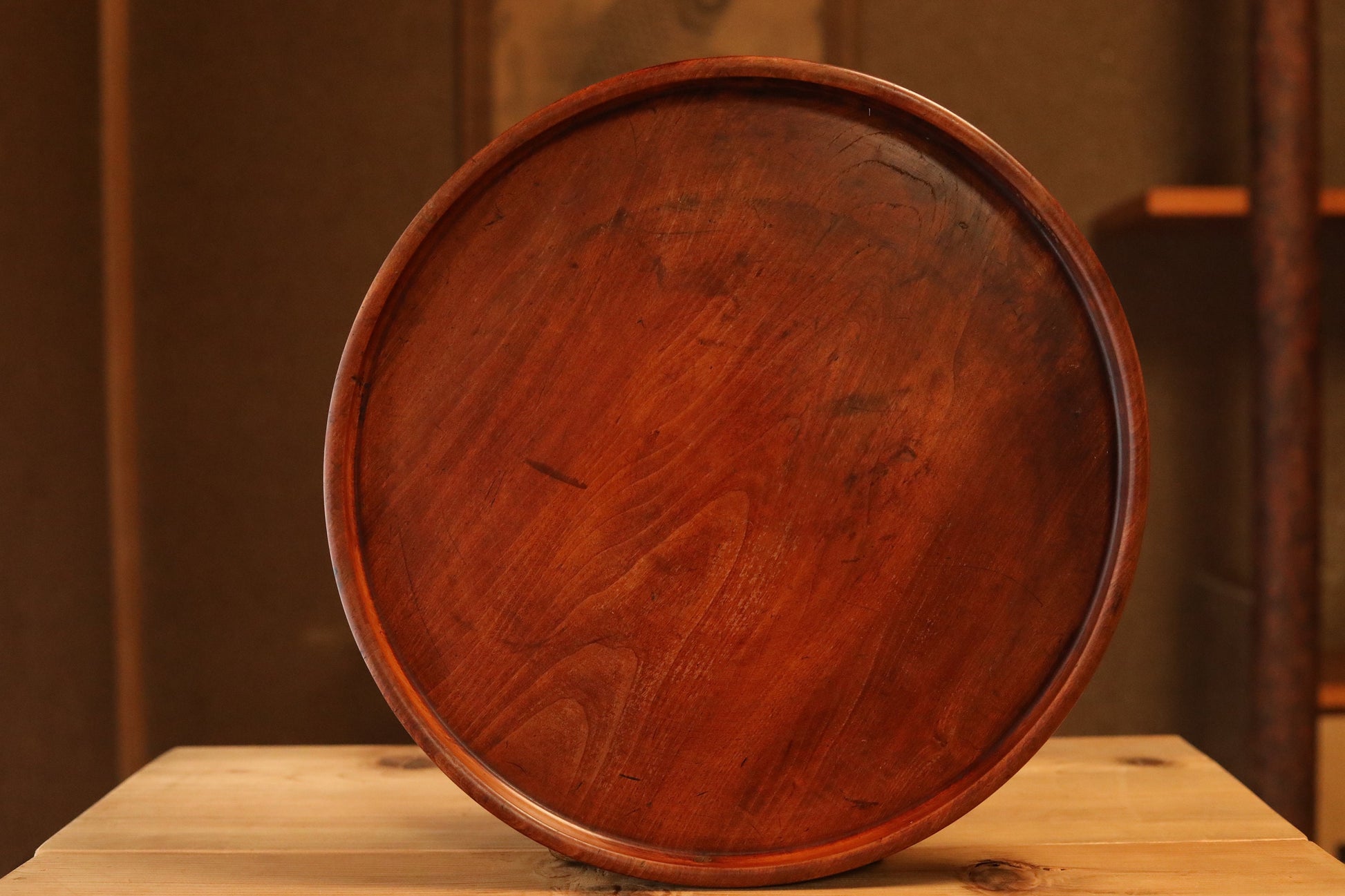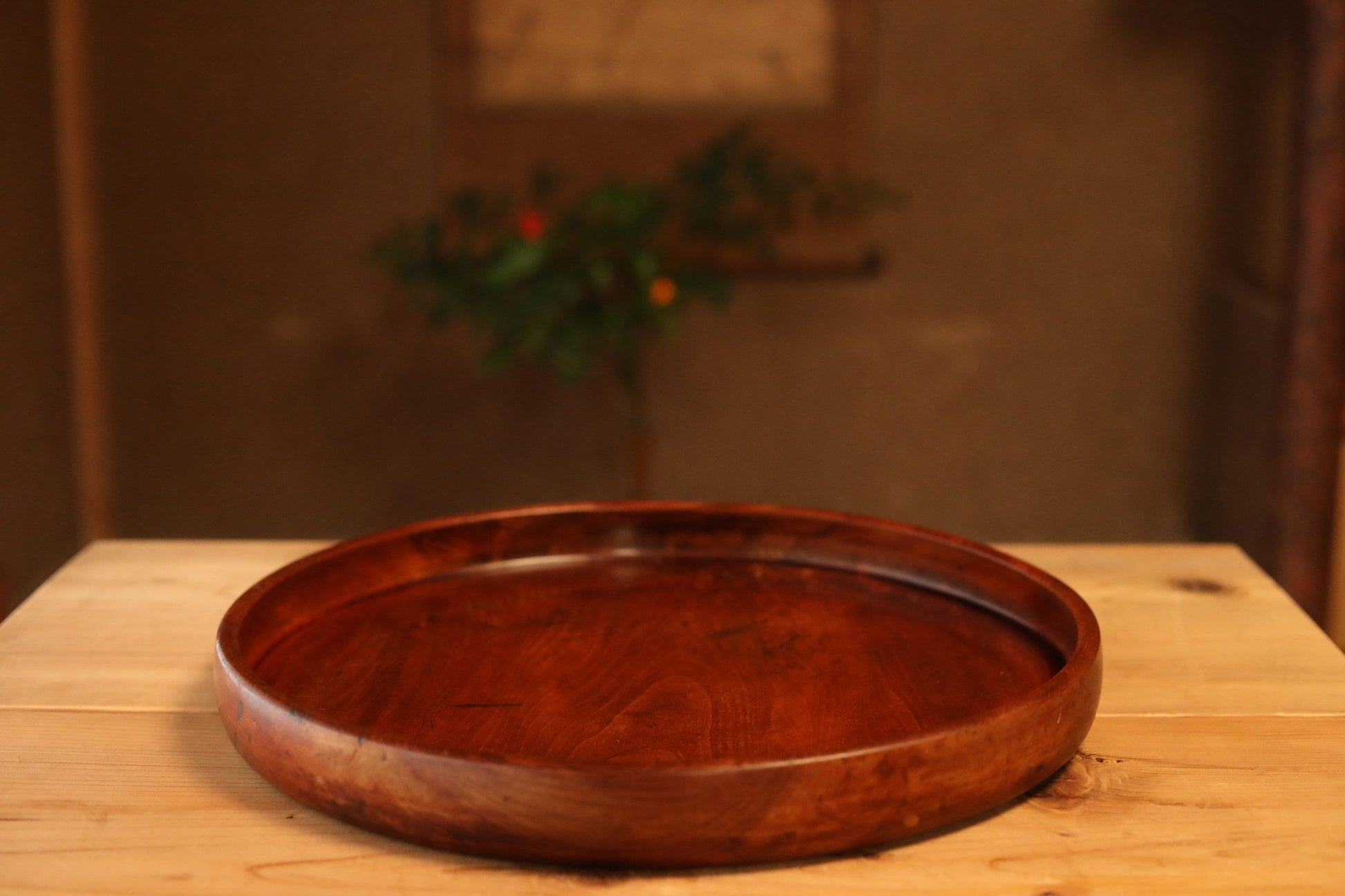 Japanese vintage furniture wooden round tray, Hollowed out from a single tree, OBON, Circular shape wood grain For Tea ceremony 13in/33cm