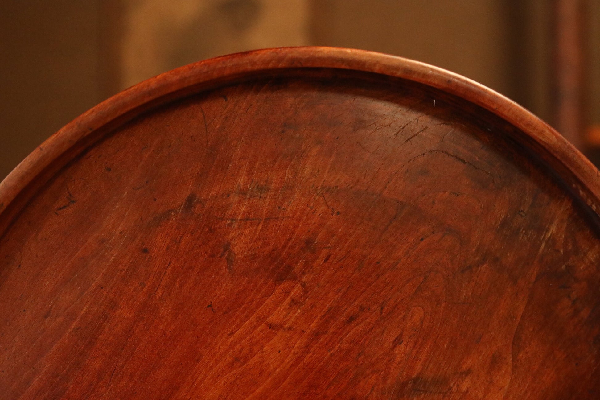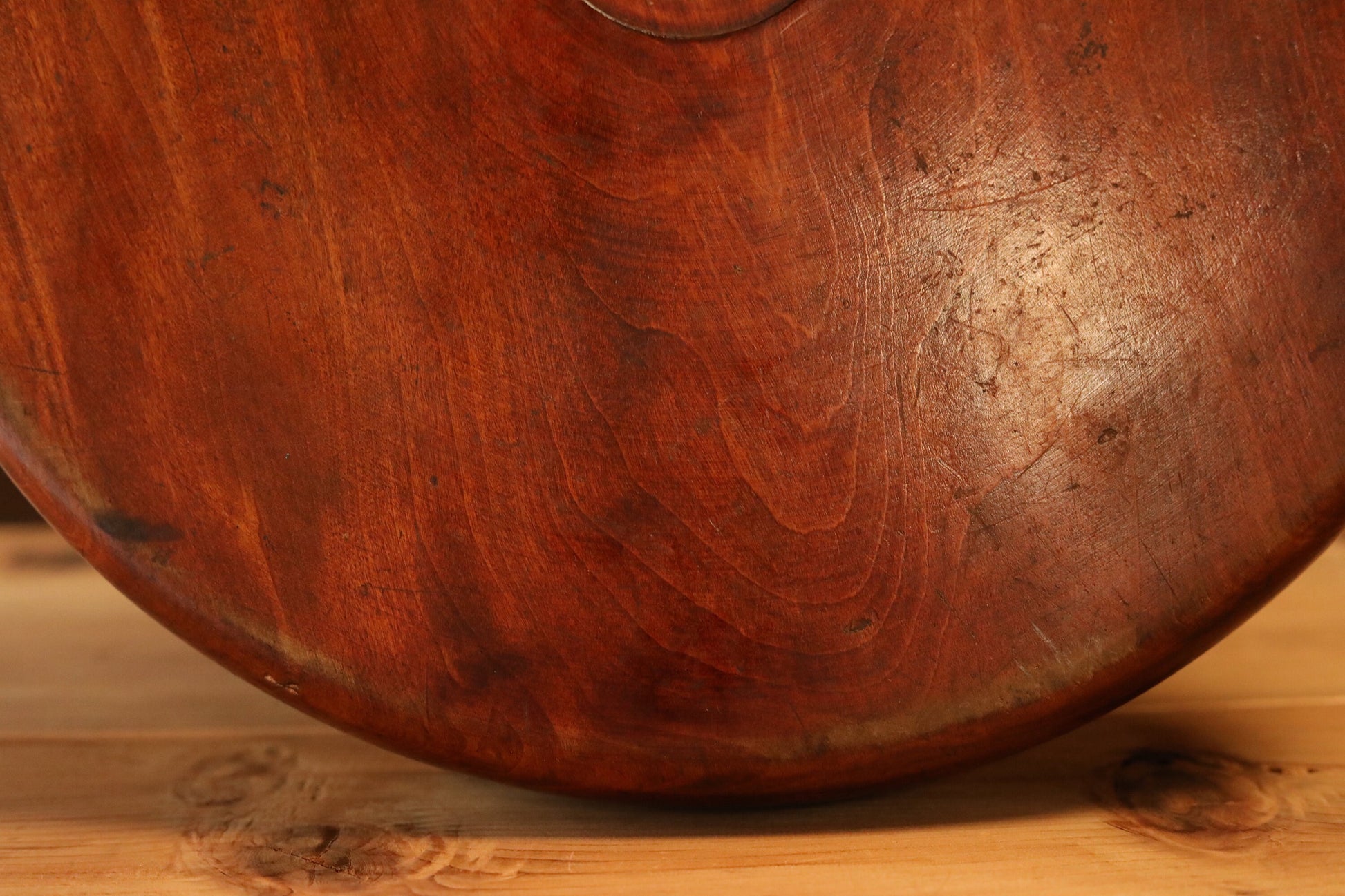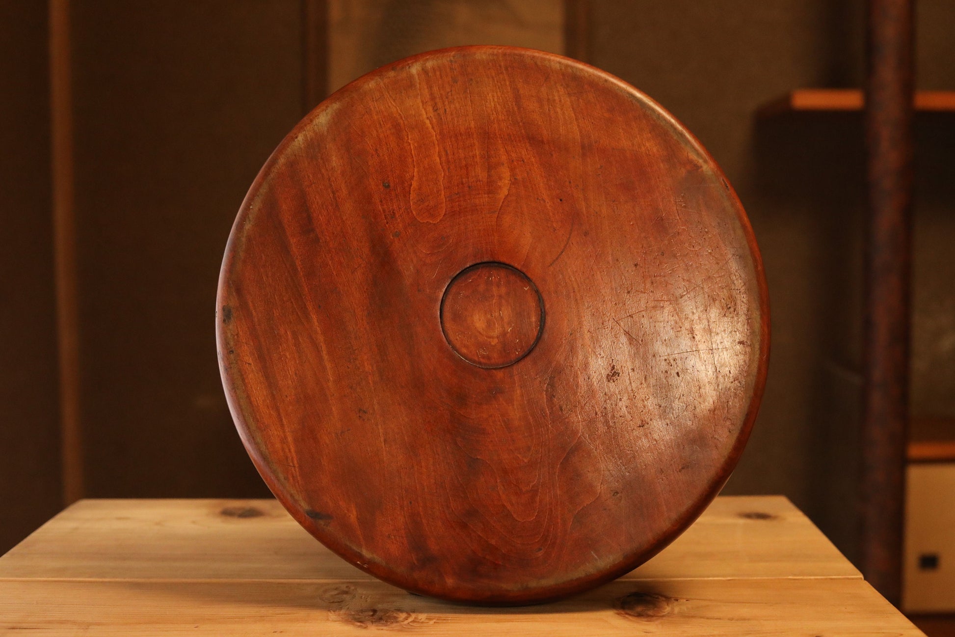 Japanese vintage furniture wooden round tray, Hollowed out from a single tree, OBON, Circular shape wood grain For Tea ceremony 13in/33cm
