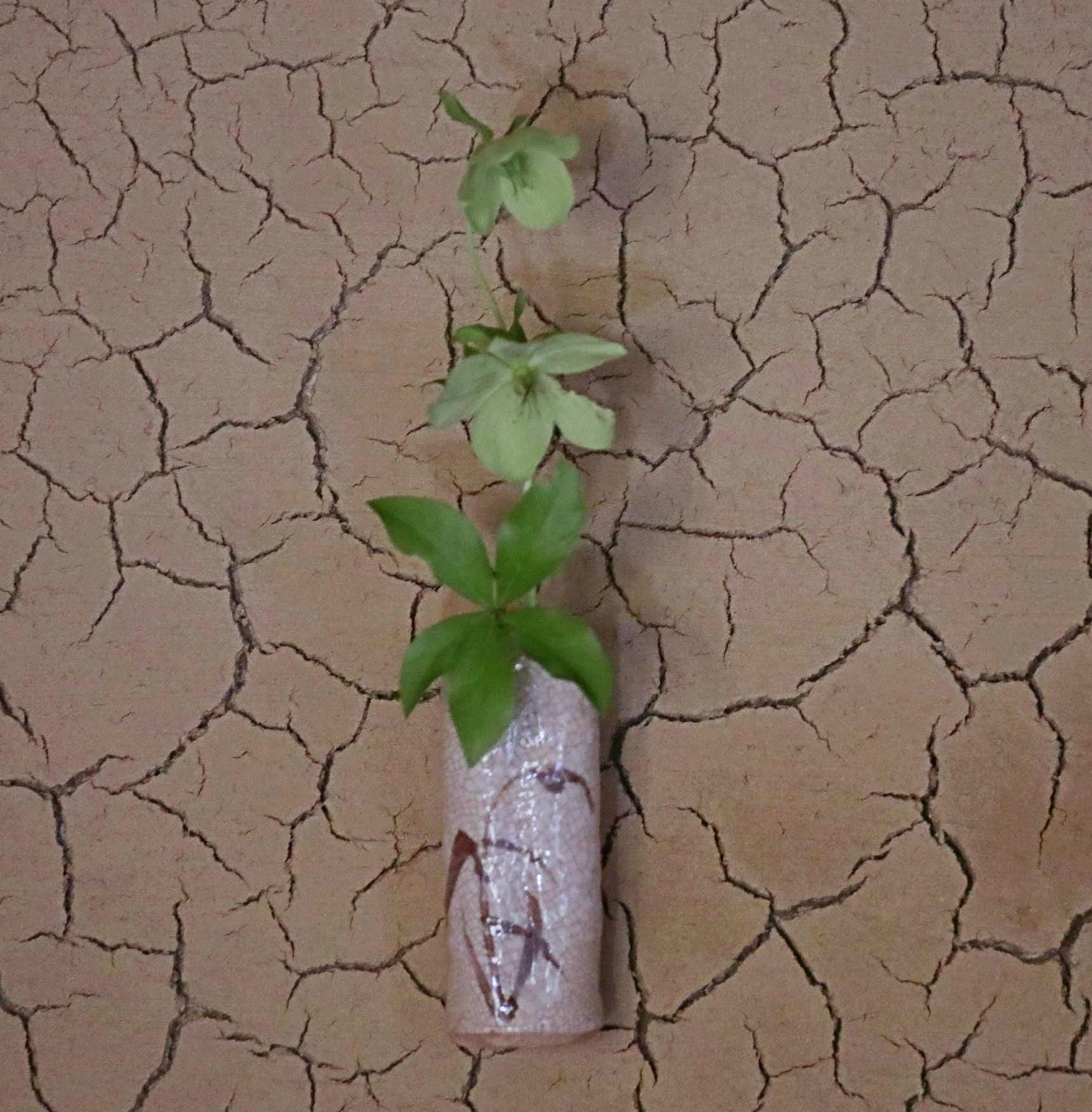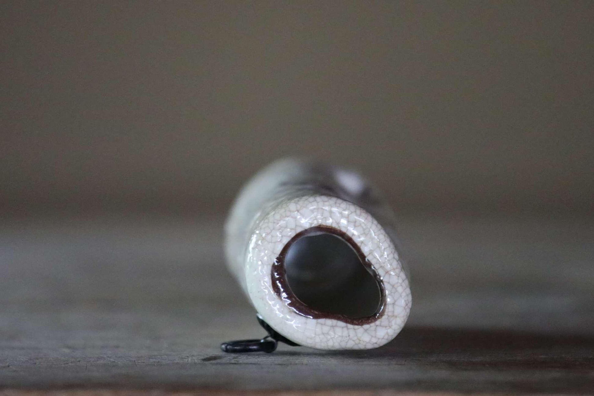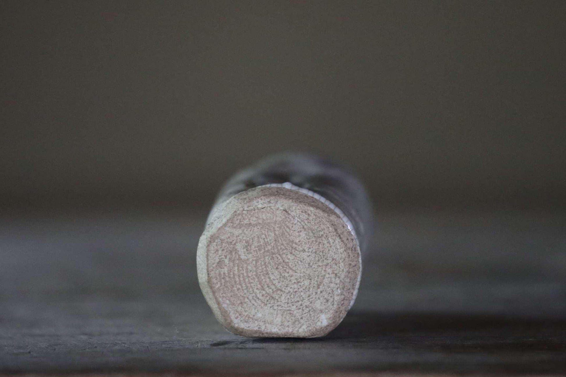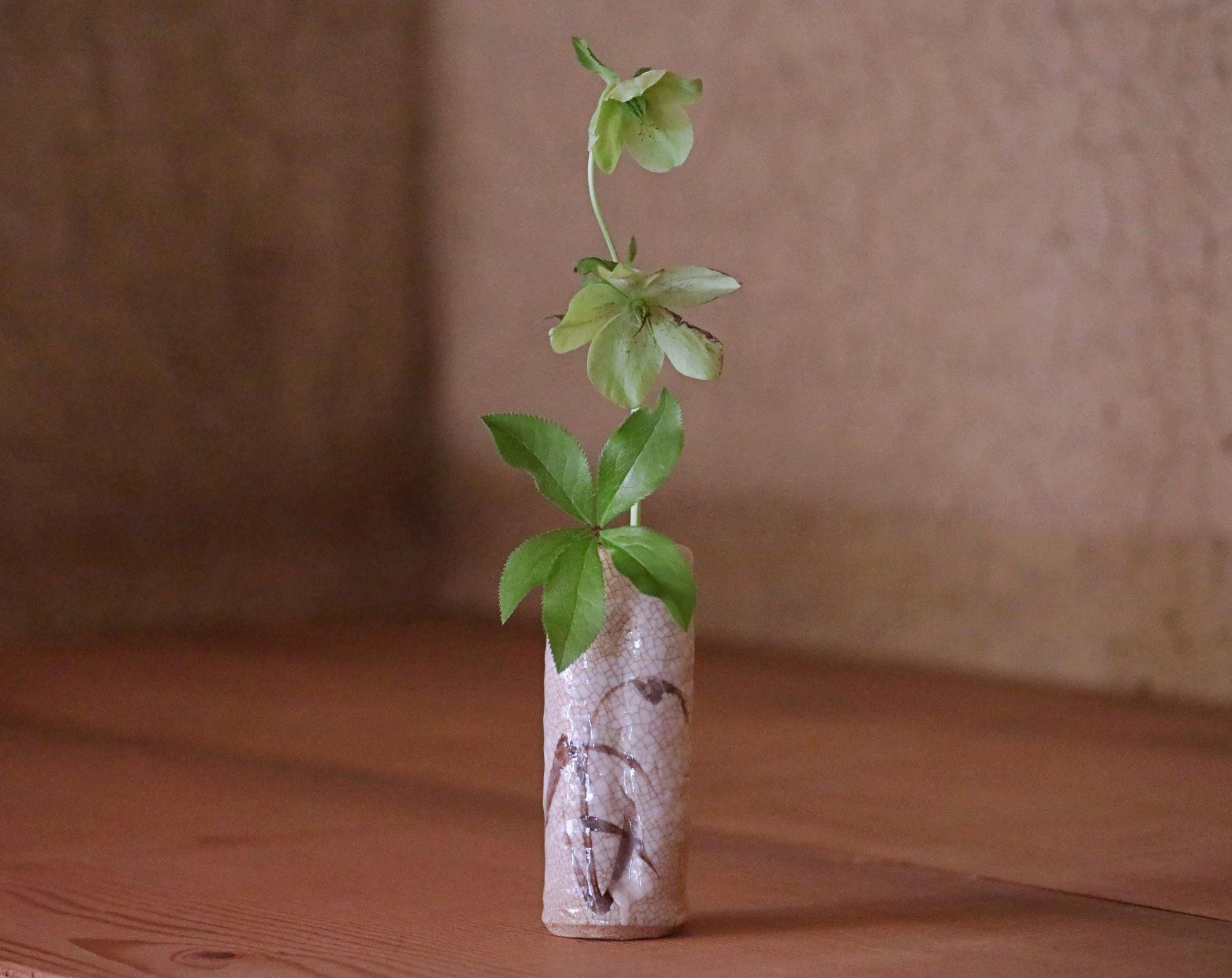 Japanese vintage hand made ceramic small jar flower vase Shino ware hanging vase name "Travel Pillow” with wood box H5.1in/H13cm