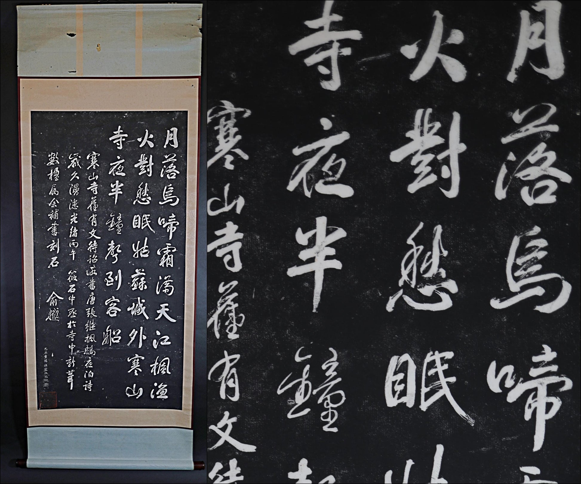 This hanging scroll show a poetry by "張継 Chokei" born in the 8th century in China. He is not as popular as Rihaku or Toho, this poetry has been famous here in Japan over centuries.