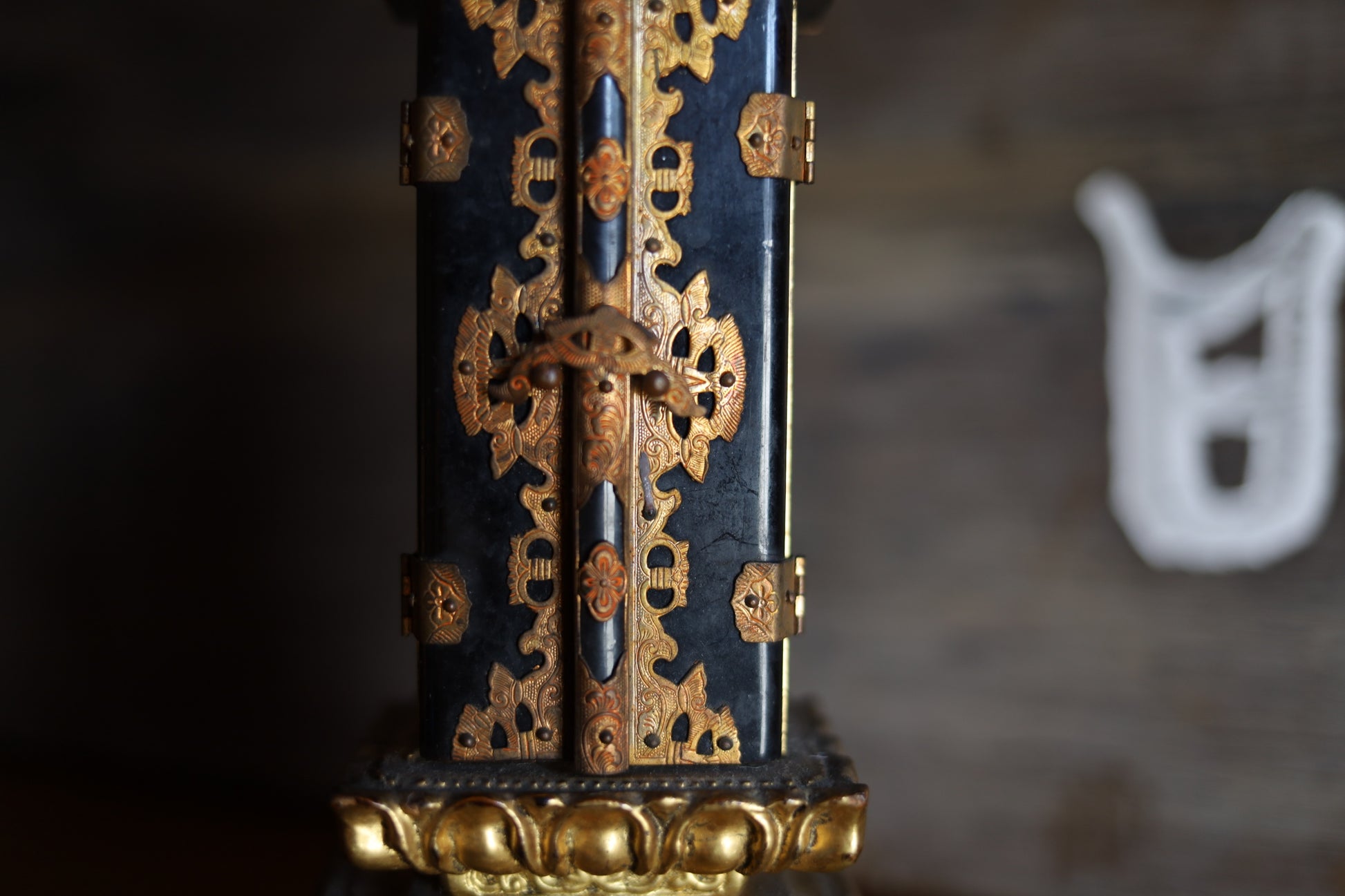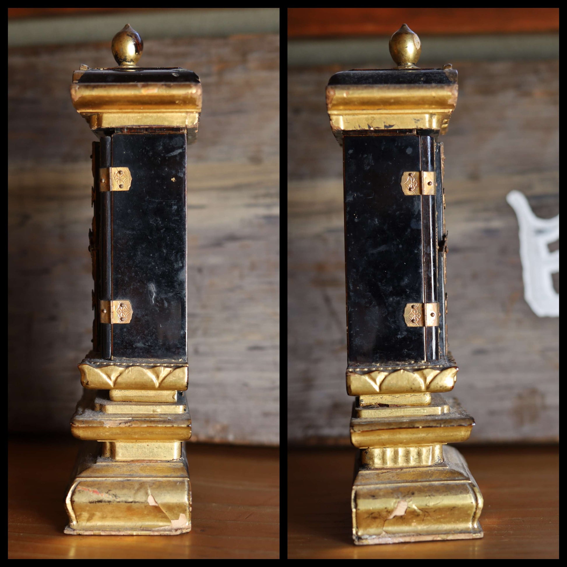 Japanese vintage IHAI Buddhist Household Shrine Altar Small Memorial ancestral Temple wood lacquer gold clouds lotus 1970s H9.6in/H24.4cm