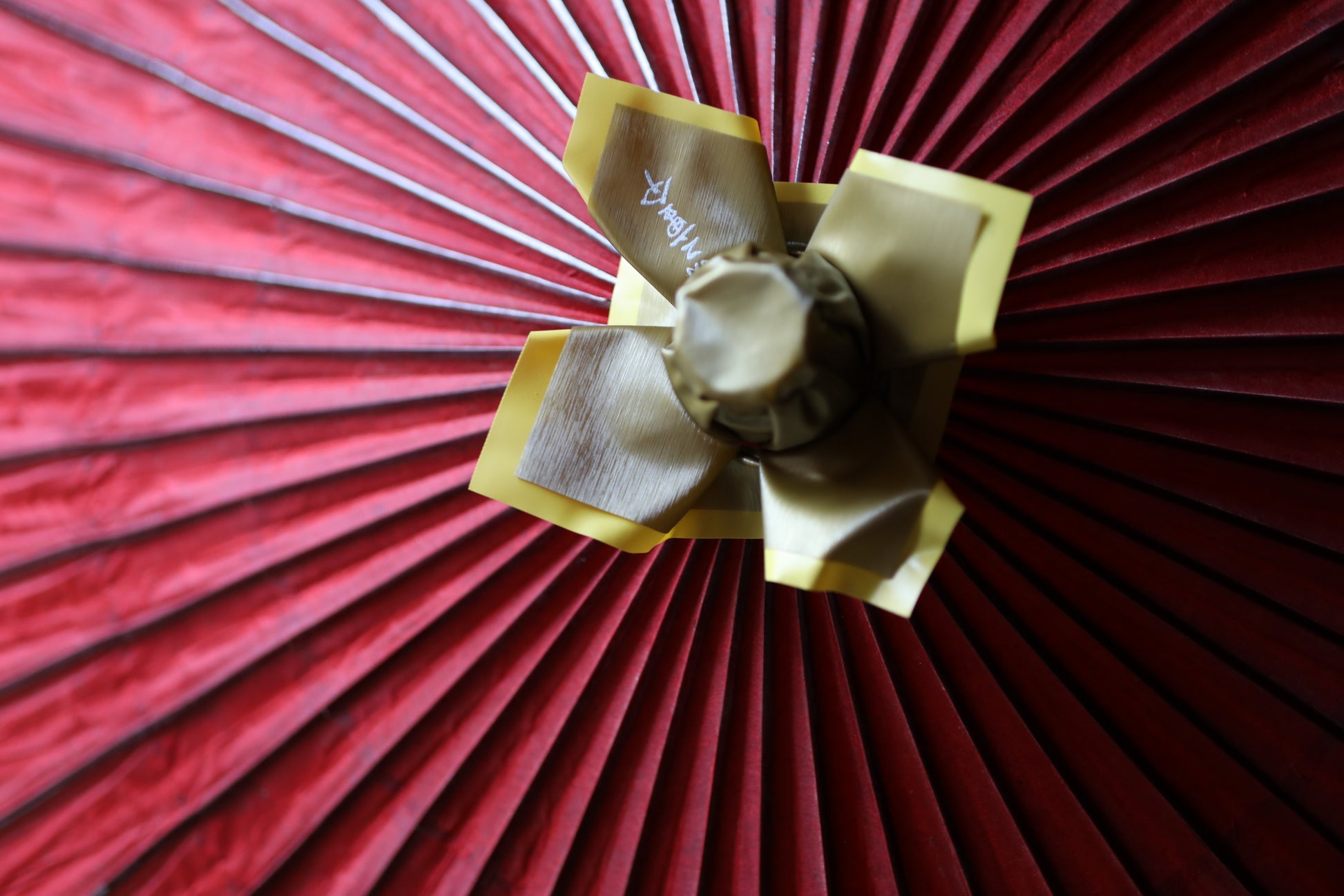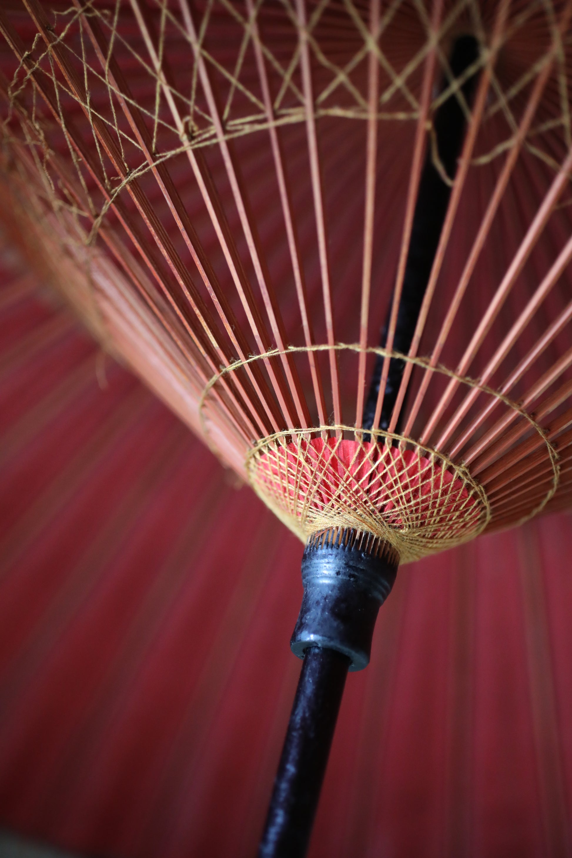 Japanese vintage KIMONO item Traditional Umbrella WAGASA BANGASA in dark red , made of paper and bamboo H29.7×42.1in/H75.5×107cm