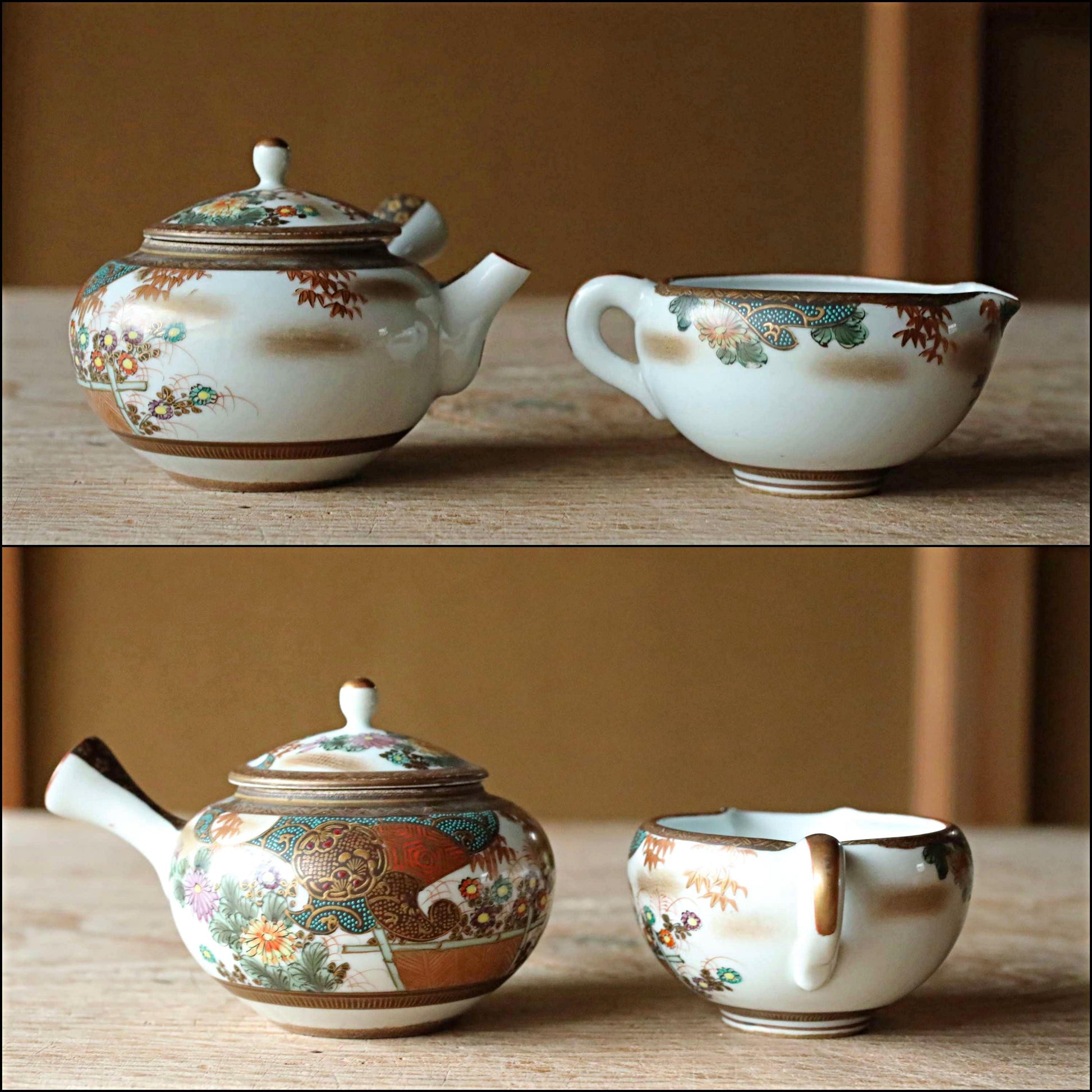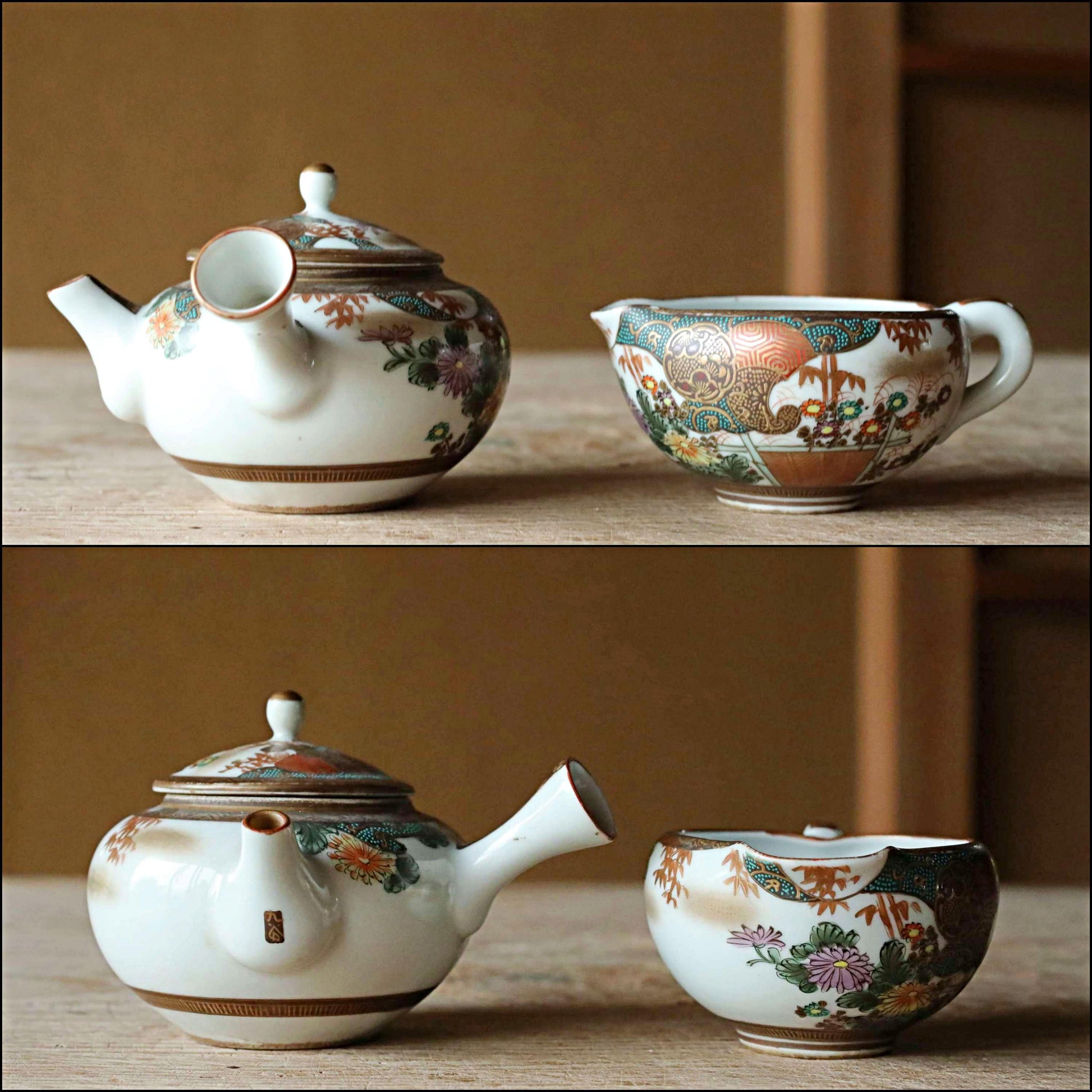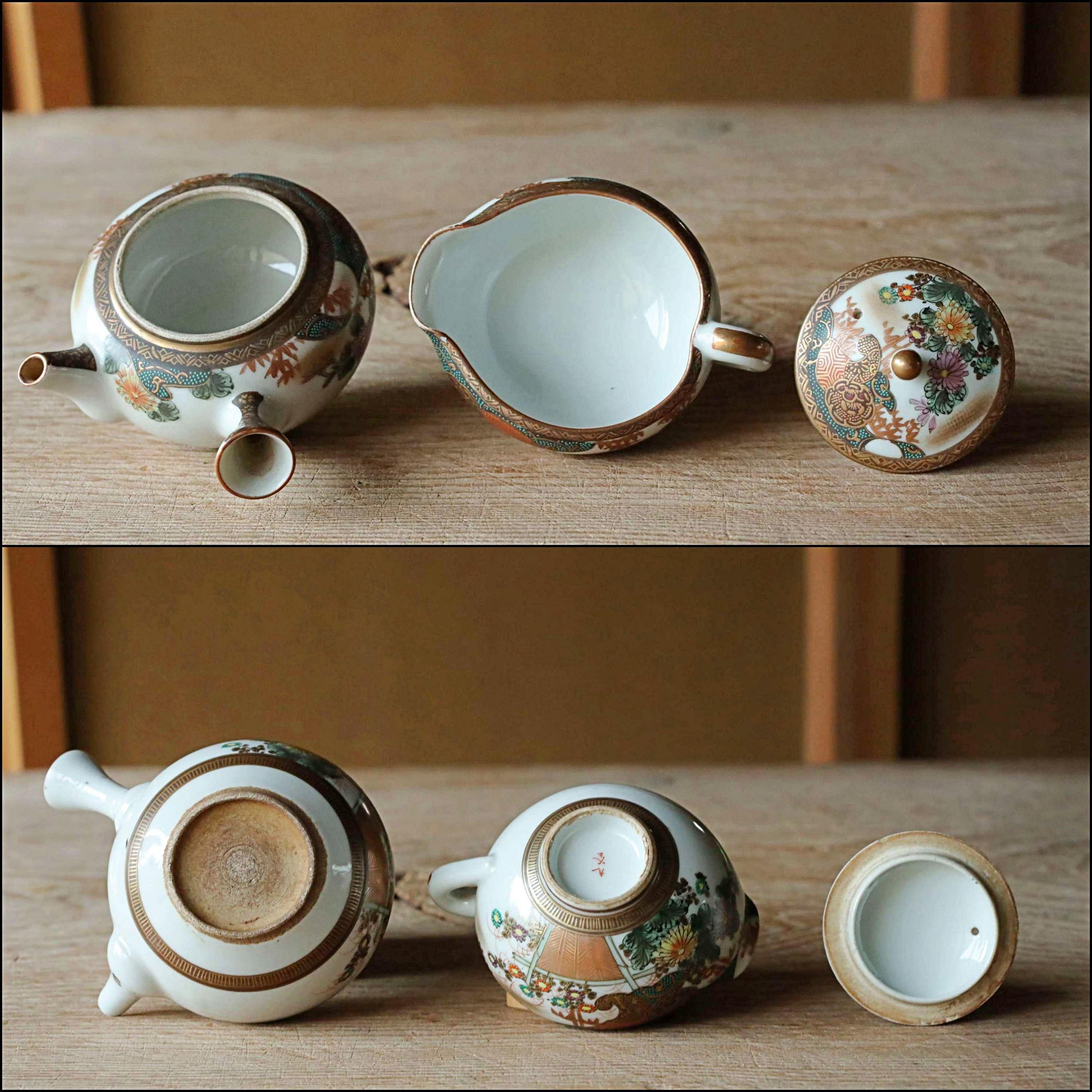 Japanese vintage Kutani ware ceramic kiln Perfect tea set, pot, 4cups, waste-water-container SENCHA tableware Tea ceremony For GIFT