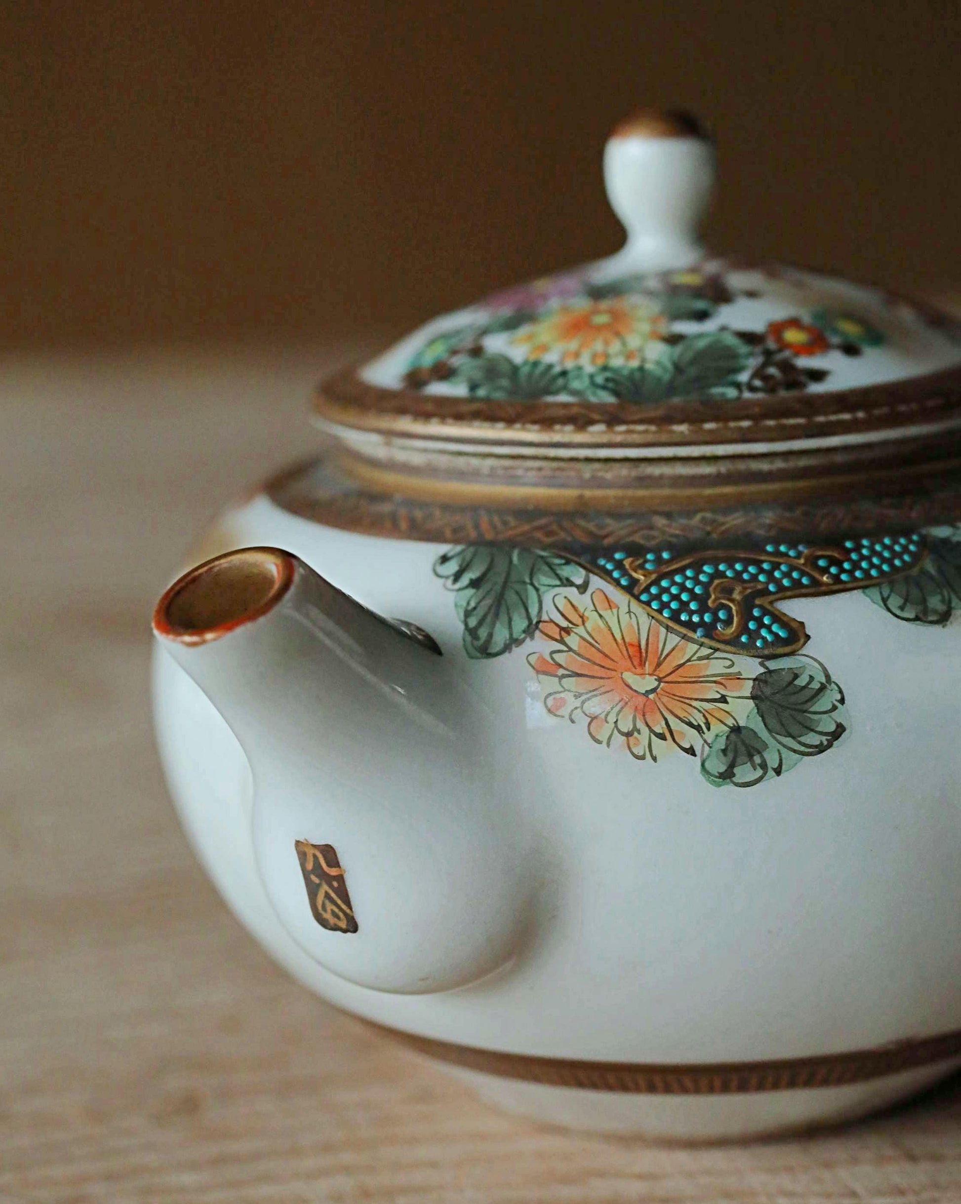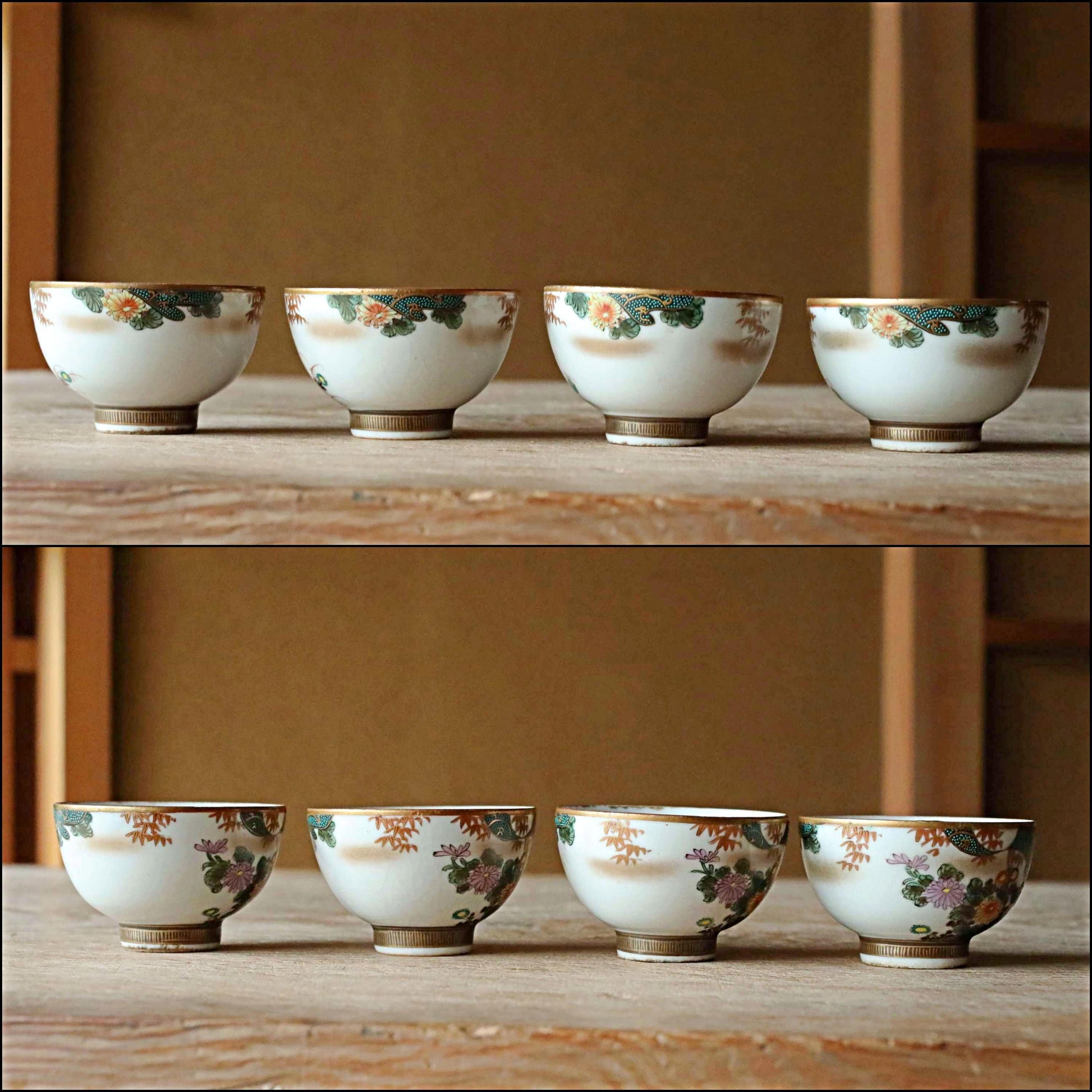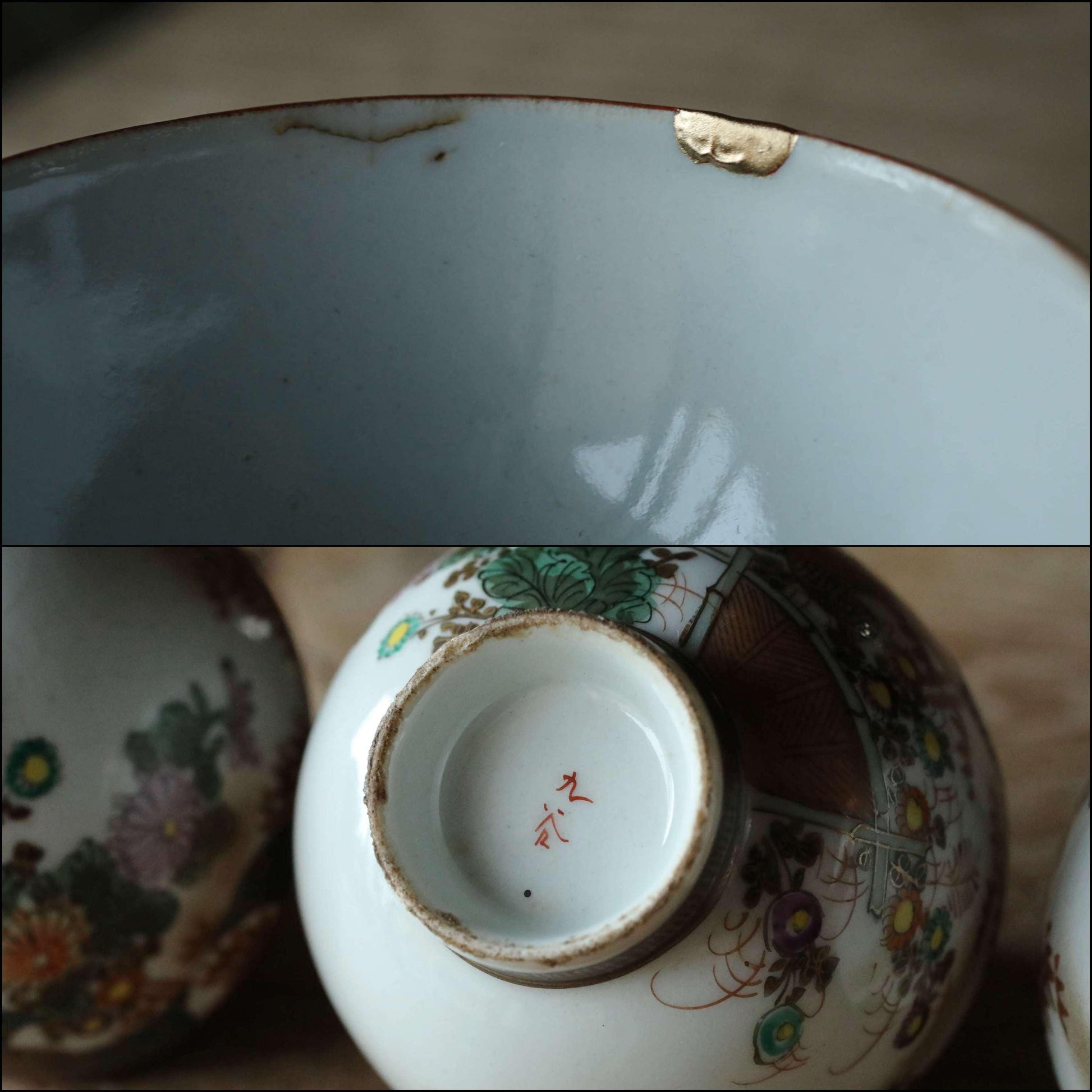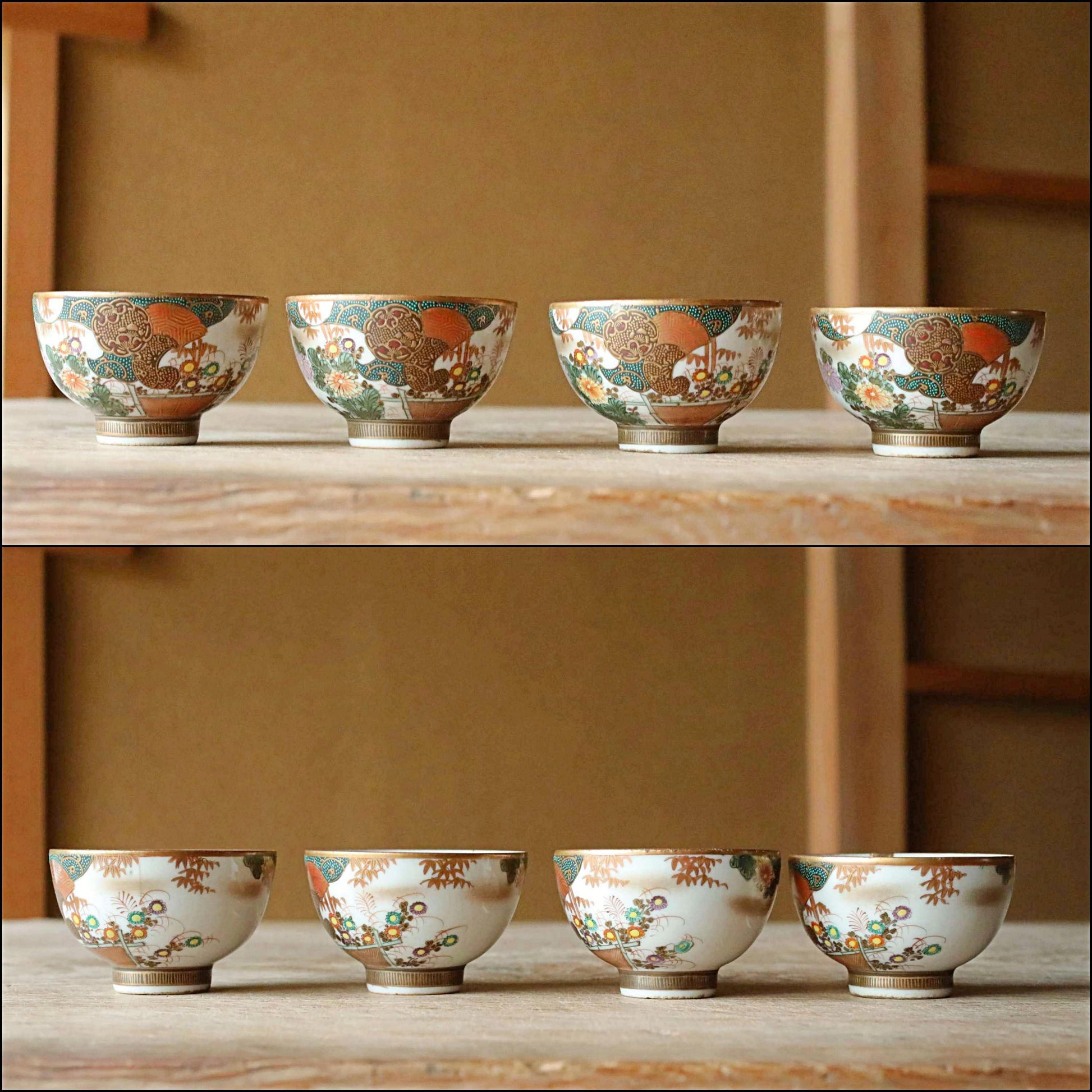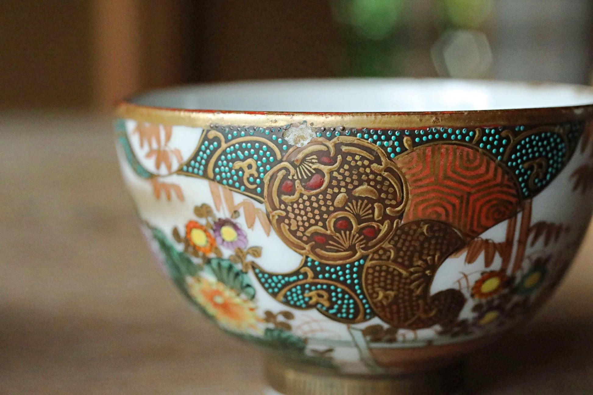 This pottery is called Kutani which is famous for its painting where you can feel the delicate brushwork of the artist. On every piece, gorgeous flowers and oriental patterns are depicted. Kutaniyaki were first produced in Arita in 1655. In the Meiji period (1868-1912), Kutani Shozo's colored gold brocade became famous, and large quantities of Kutani ware were exported overseas. The Vienna Exposition of 1873 was the catalyst for this trend. The name "Japan Kutani". Traditional Japanese pottery rapidly industrialized from the 20th century, but it's this kind of playfulness from the craftsman that is also the interesting part of old Kutani ware.