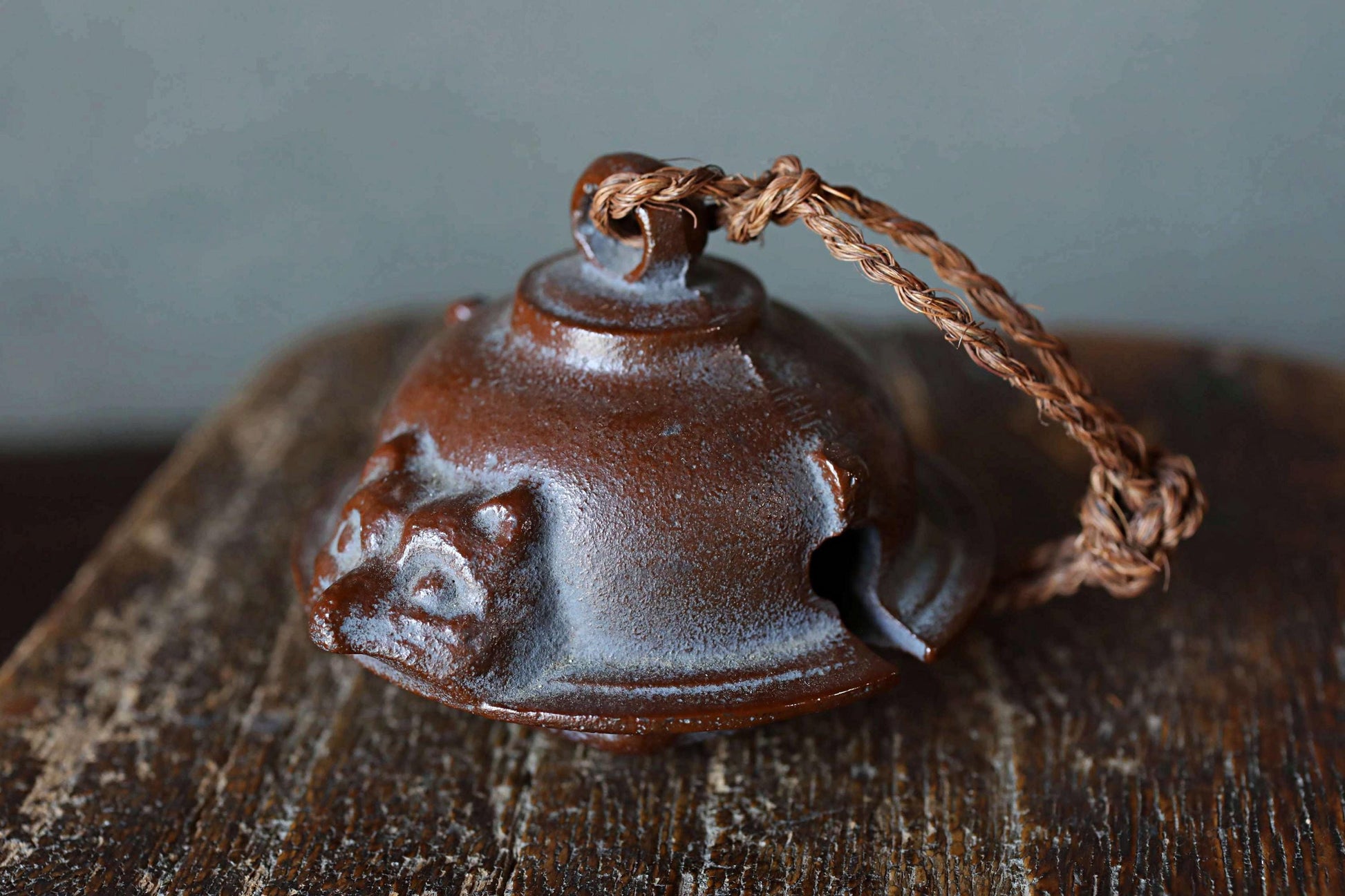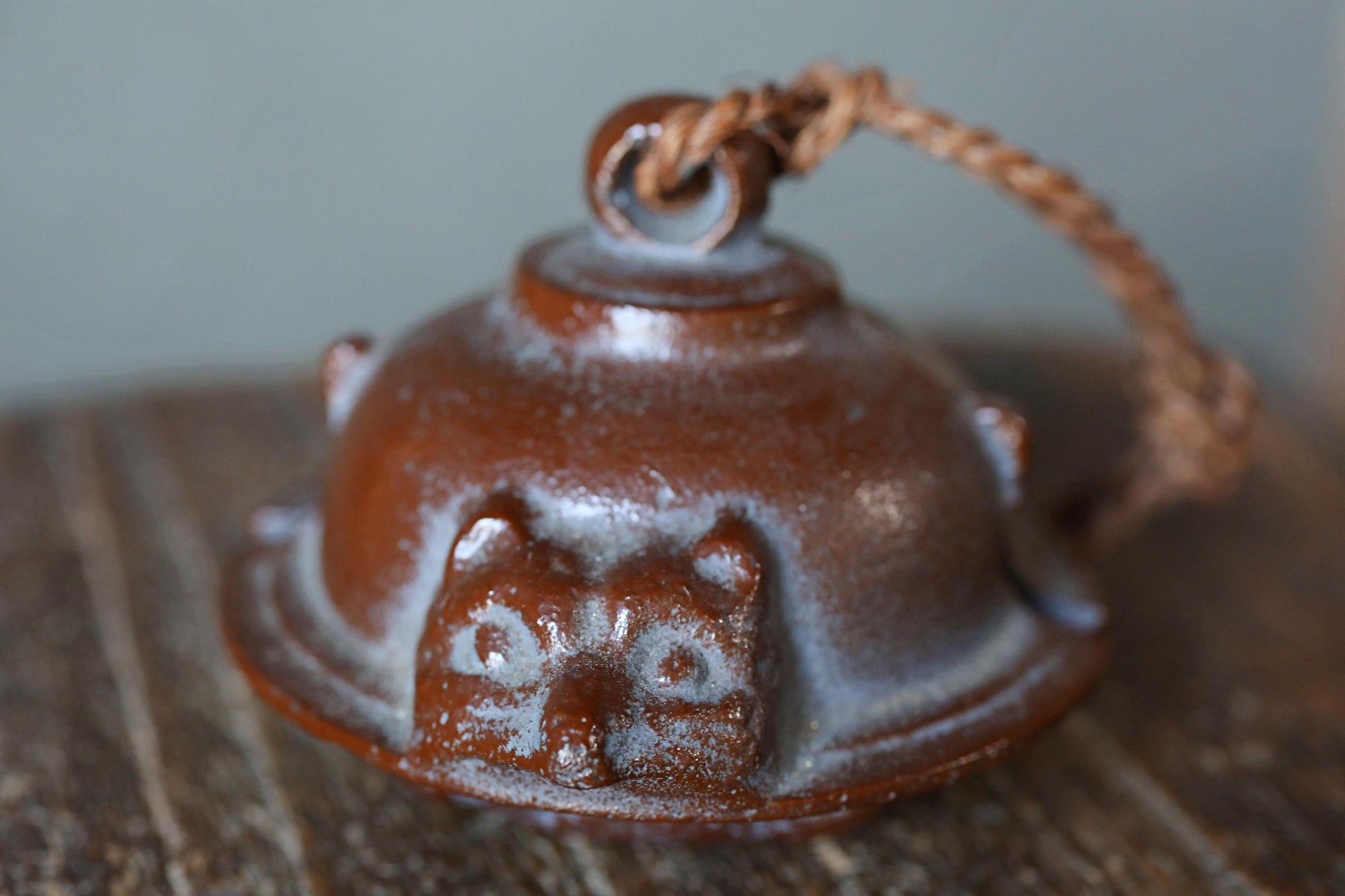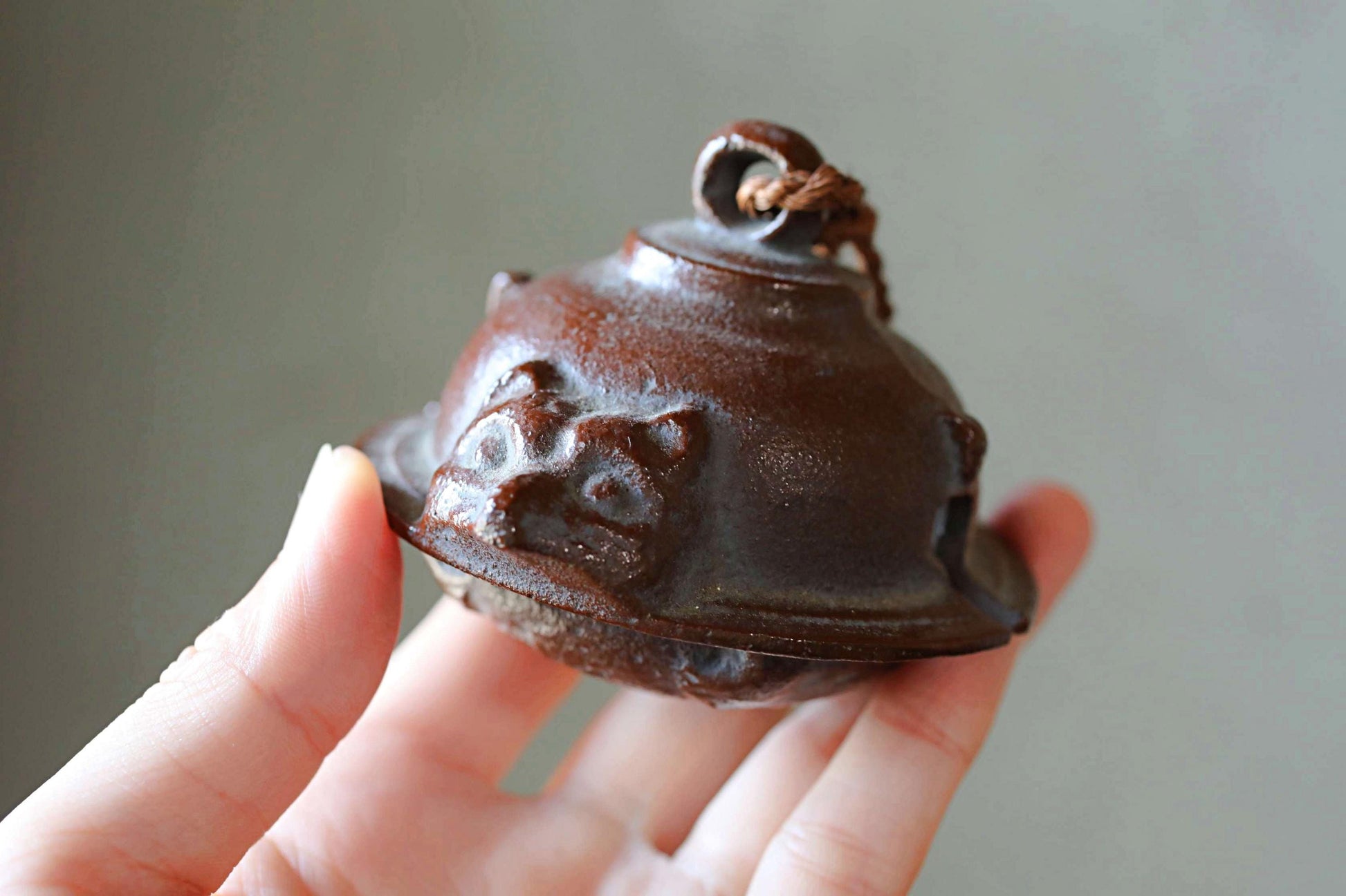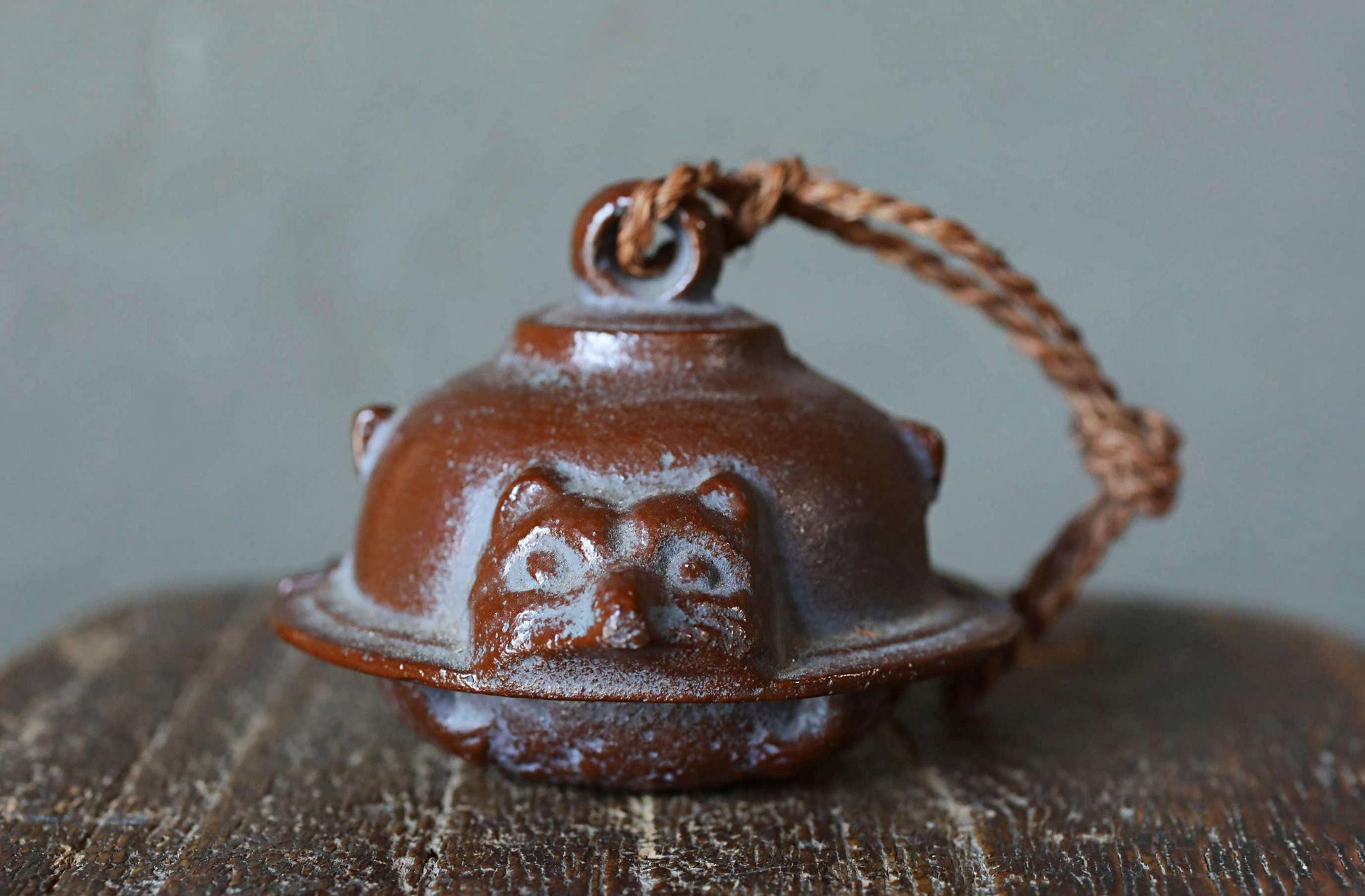 Japanese vintage metal bell Teapot fused with a racoon dog doll ornament Paper weight, Japanese ornament small bell H2.4×3.2in/H6×8.2cm