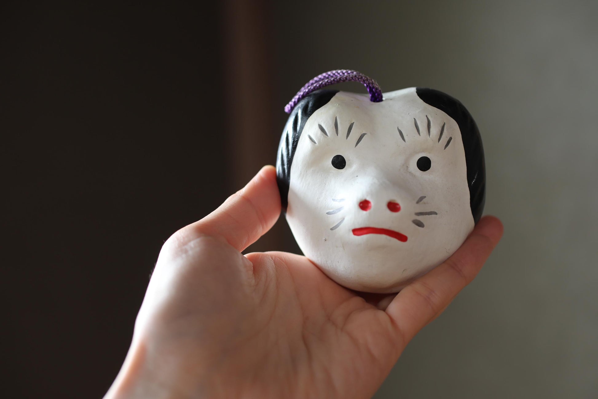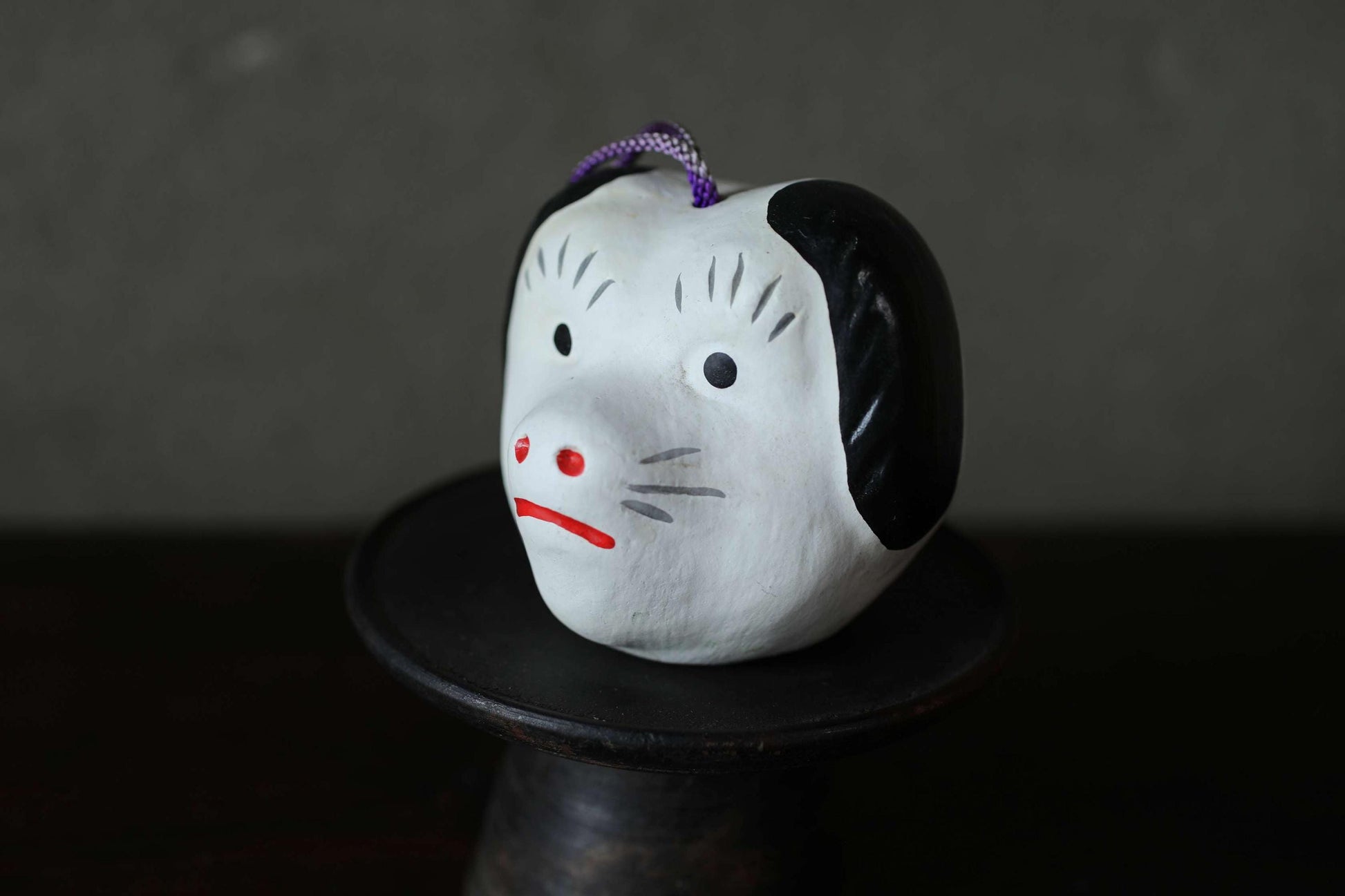 This clay bell is a very rare clay bell with a dog's face on it. At first glance, it is difficult to tell that it is a dog, but its unique and relaxed atmosphere will bring a smile to your face. These clay bells, made in Aomori, come in a wide variety of types and are still loved by collectors in Japan today.