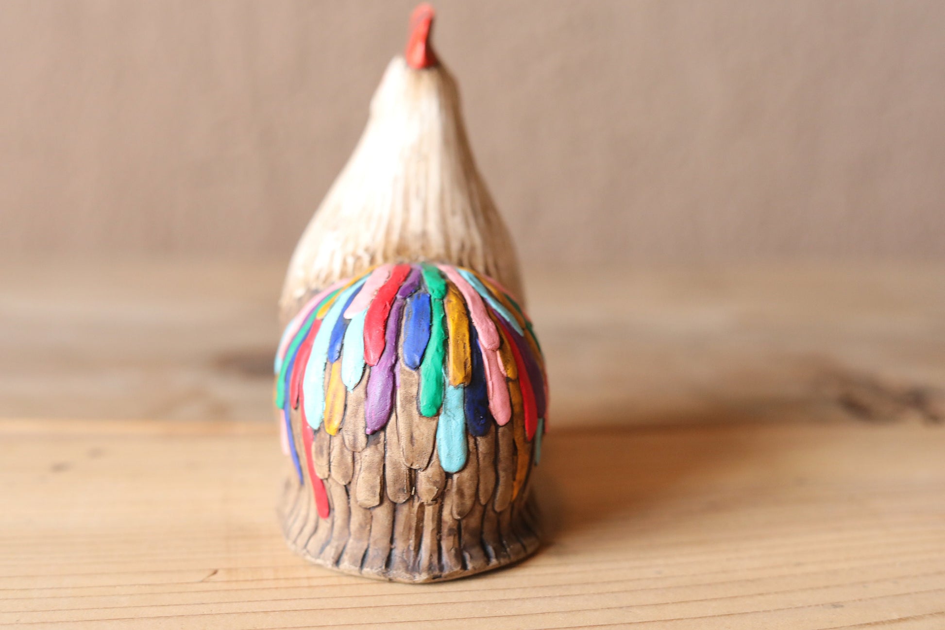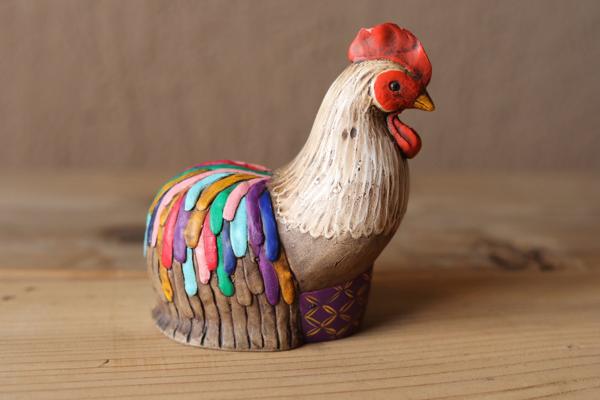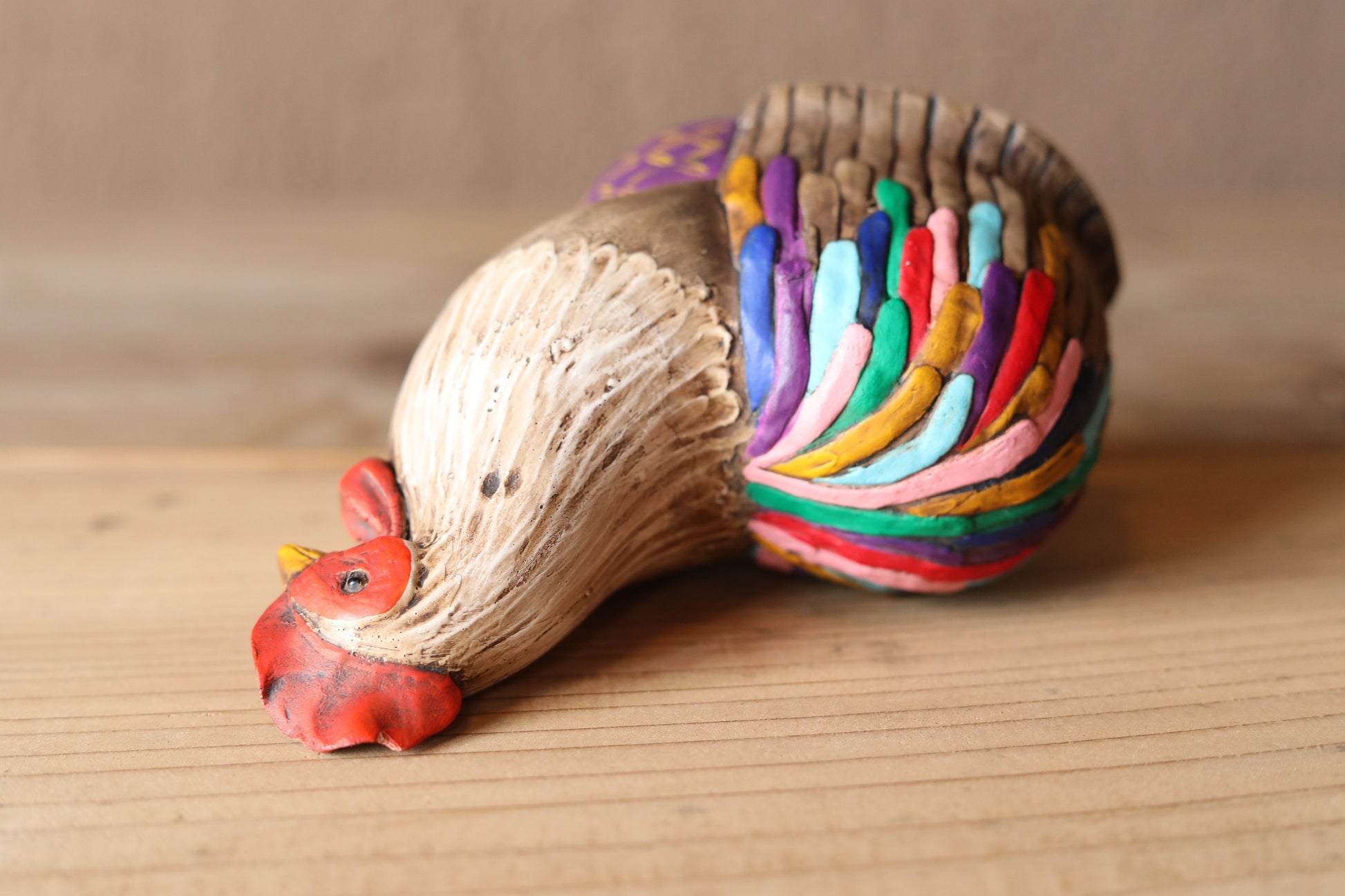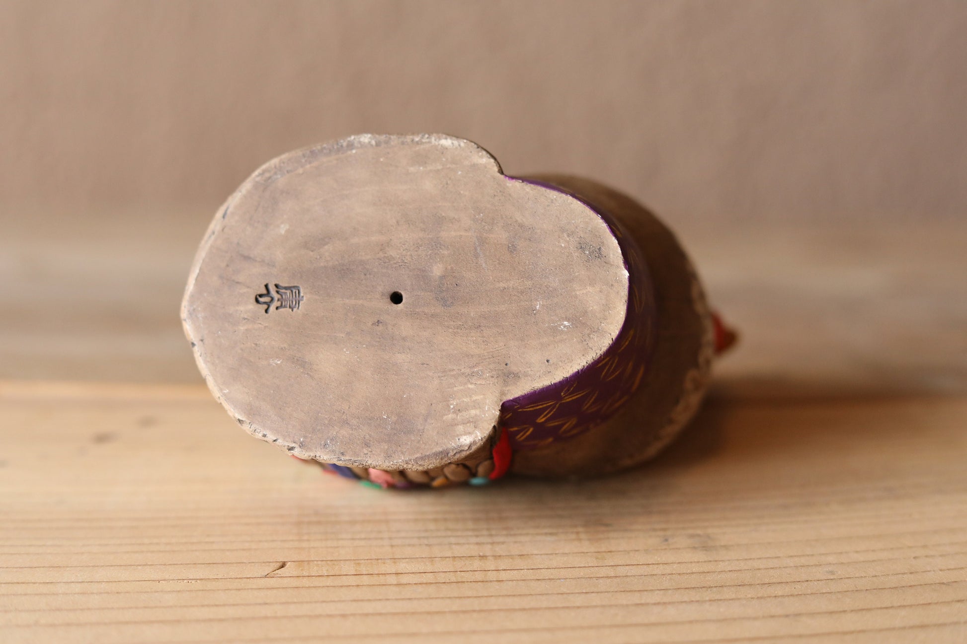 Japanese vintage Peacock bird doll TORI made of pottery hand made animal ornament Kanji Signature, Chinese zodiac H5.3×4.6in/13.5×11.7cm