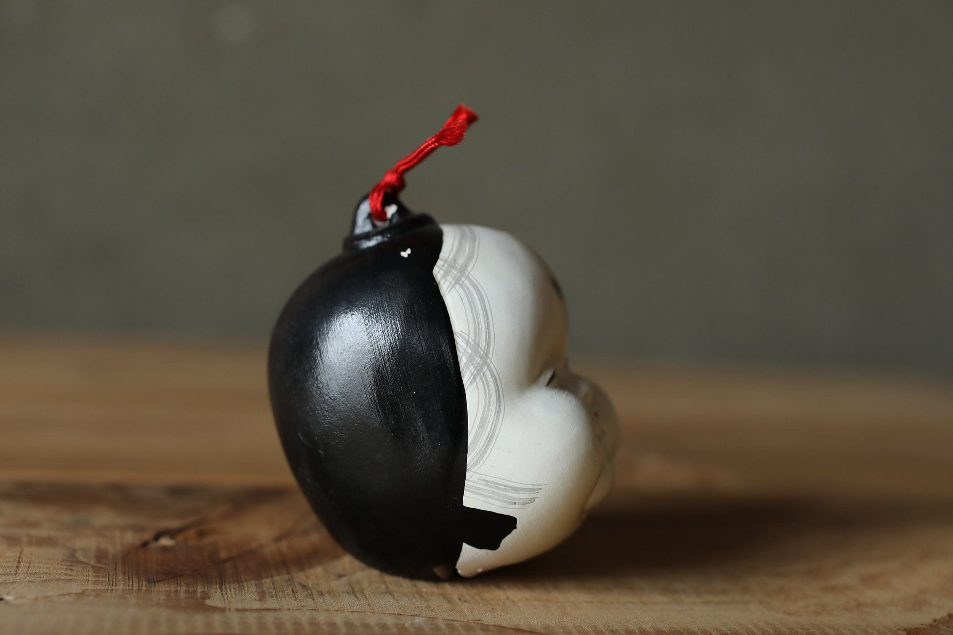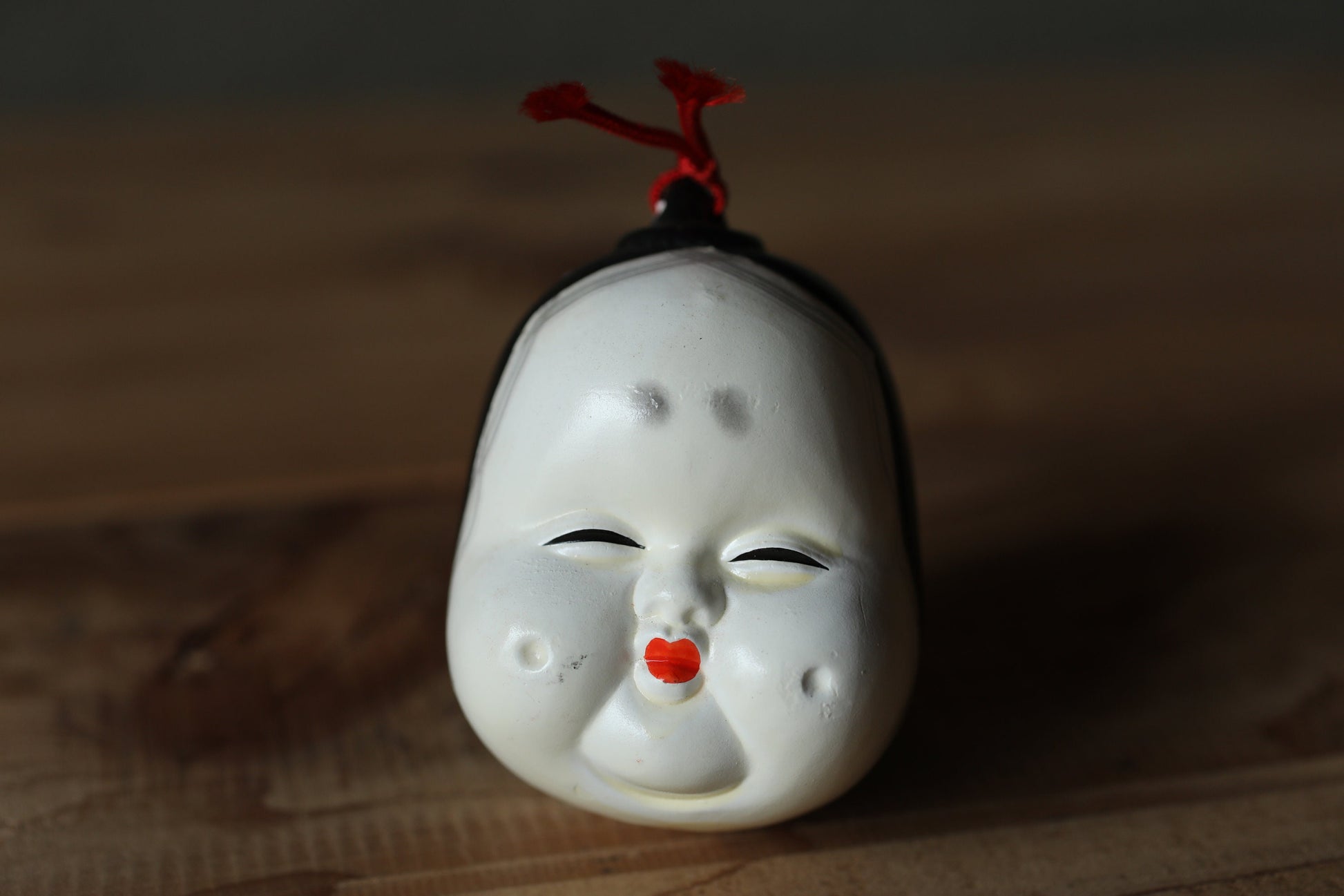 Japanese vintage pottery bell OKAME woman face smile doll ornament Paper weight, Christmas Ornaments Japanese vintage small bell H3in/H7.5cm