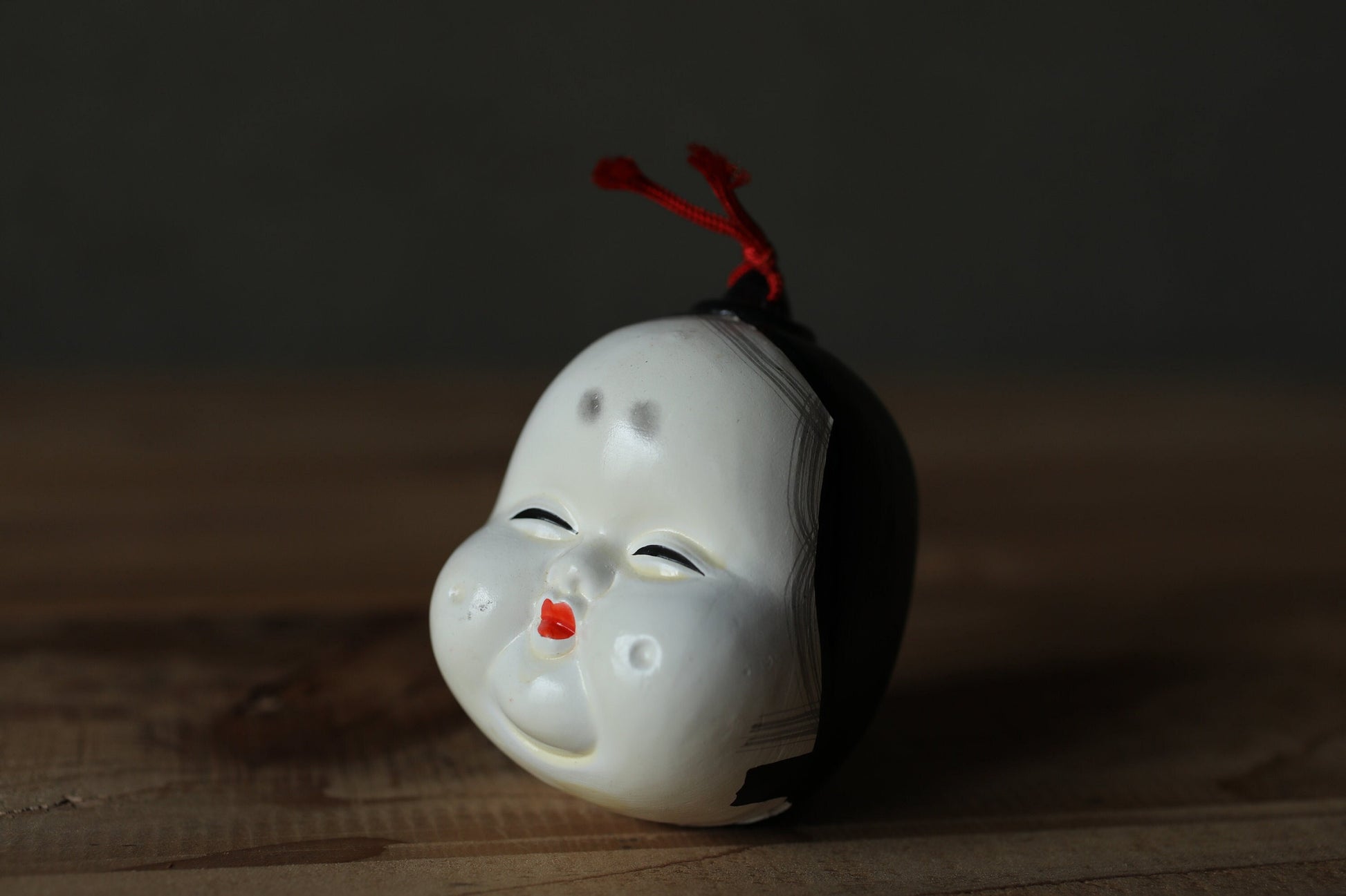 お多福Otafuku is the mask of a plump woman, and originally in ancient times, it was believed that a woman with a fat and blessed physique would ward off evil spirits and signify a certain kind of "beauty. It is also said to bring good fortune.