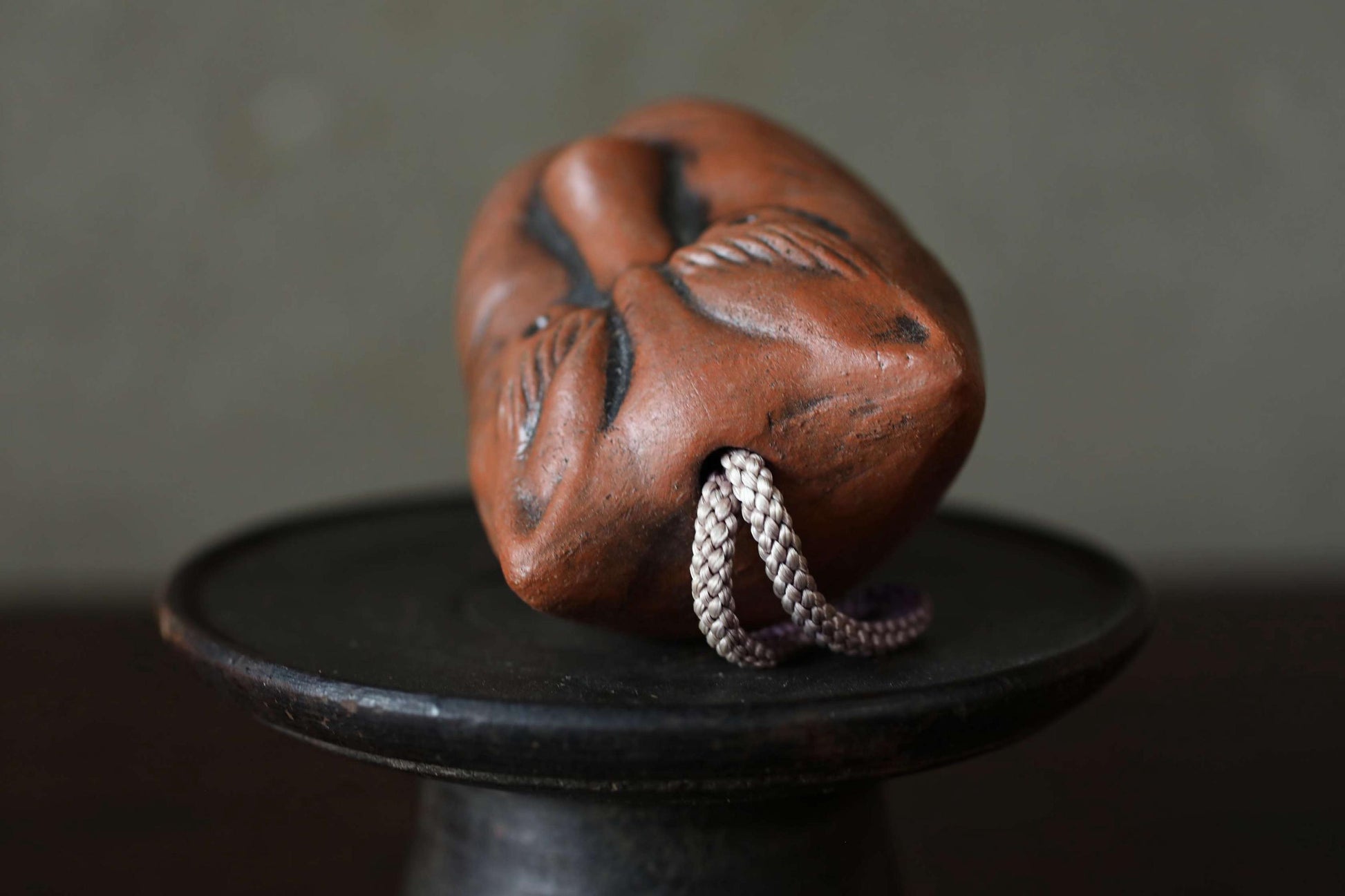 Japanese vintage small pottery bell KITSUNE fox doll ornament Paper weight, Ornaments Japanese vintage small bell H2.6×2.2in/H6.5×5.5cm