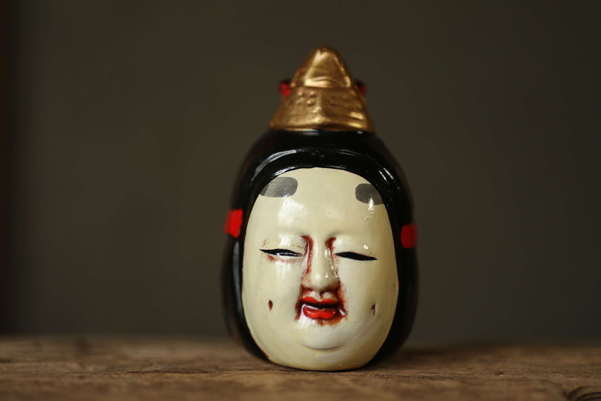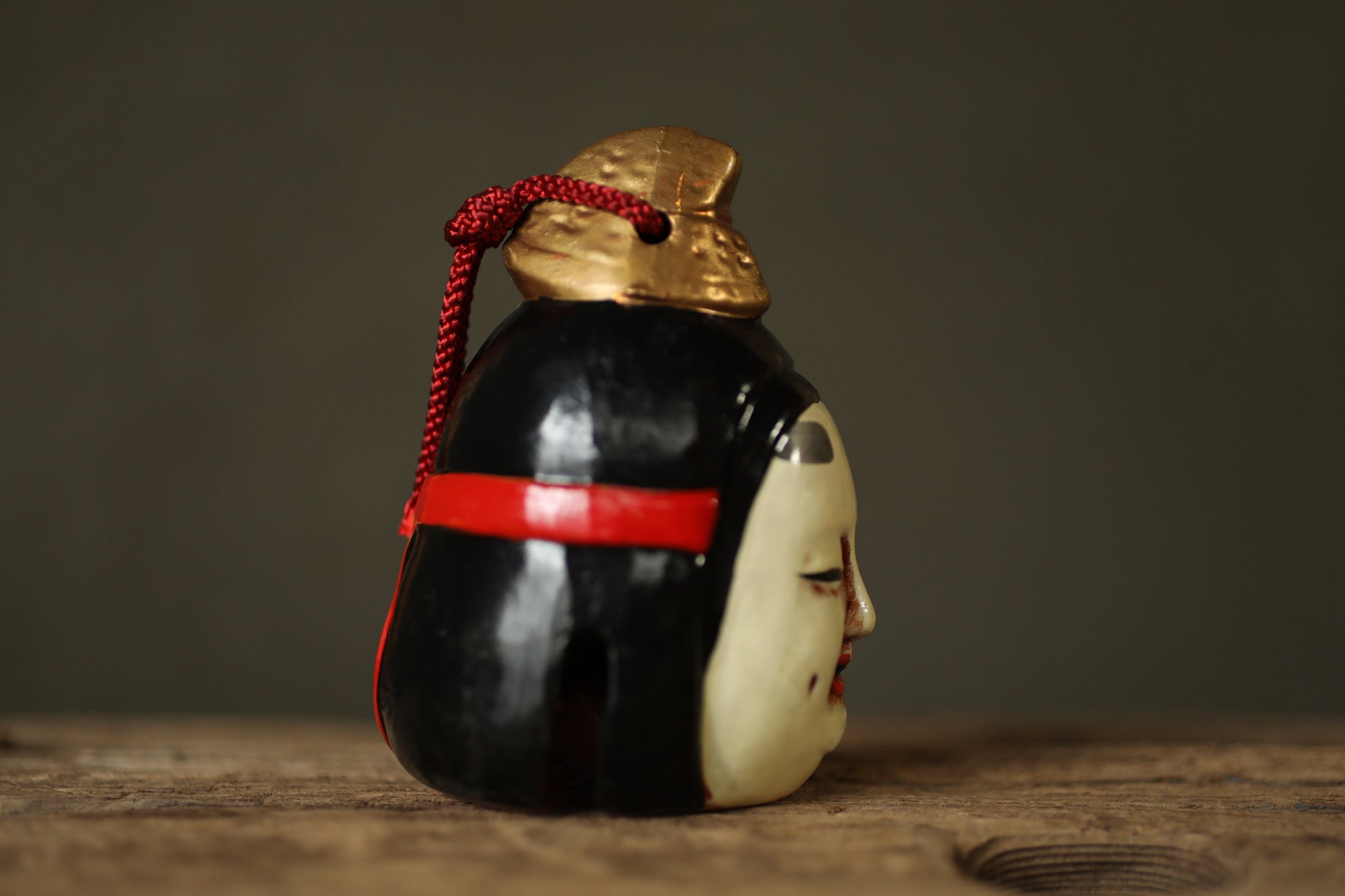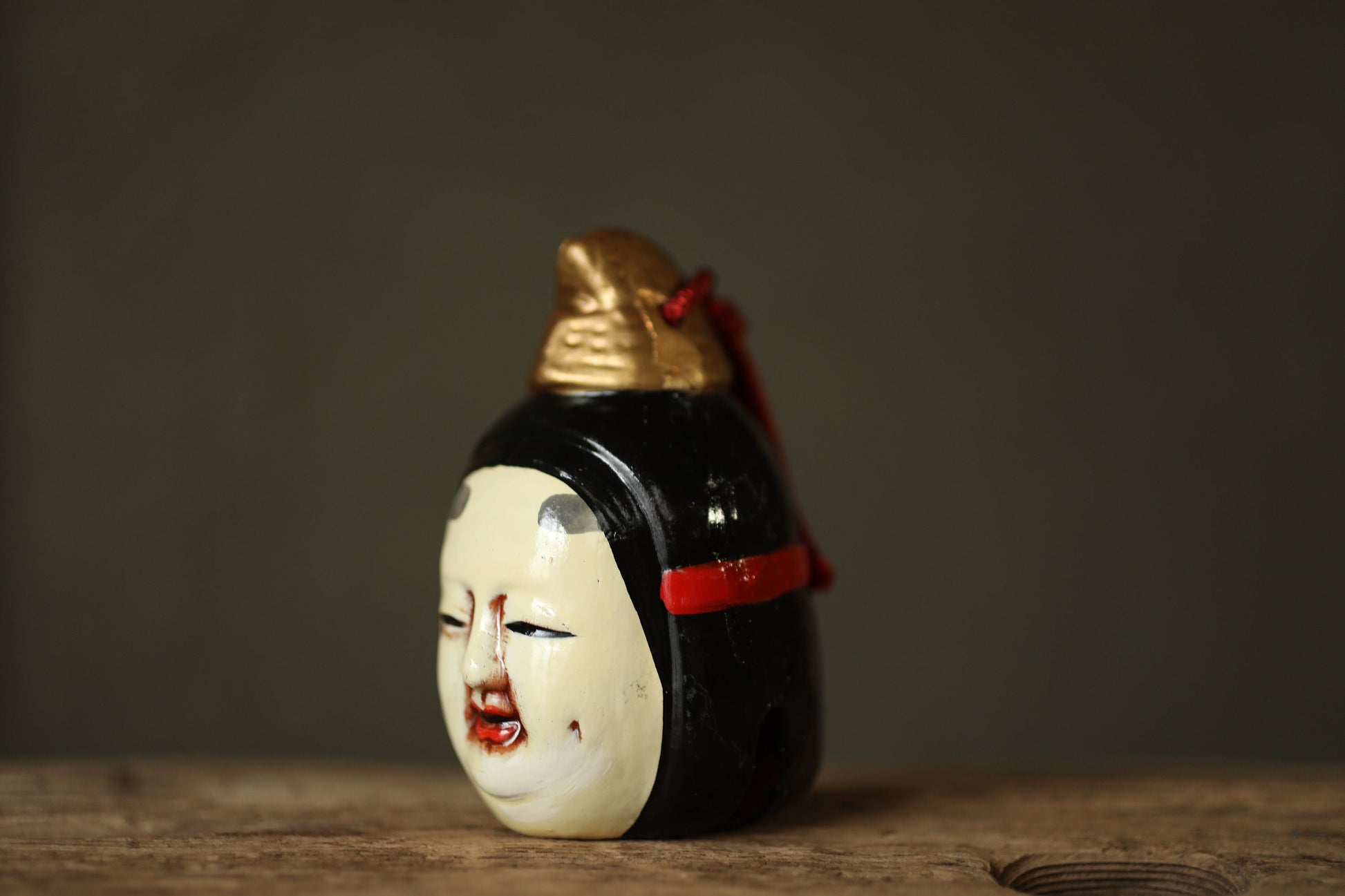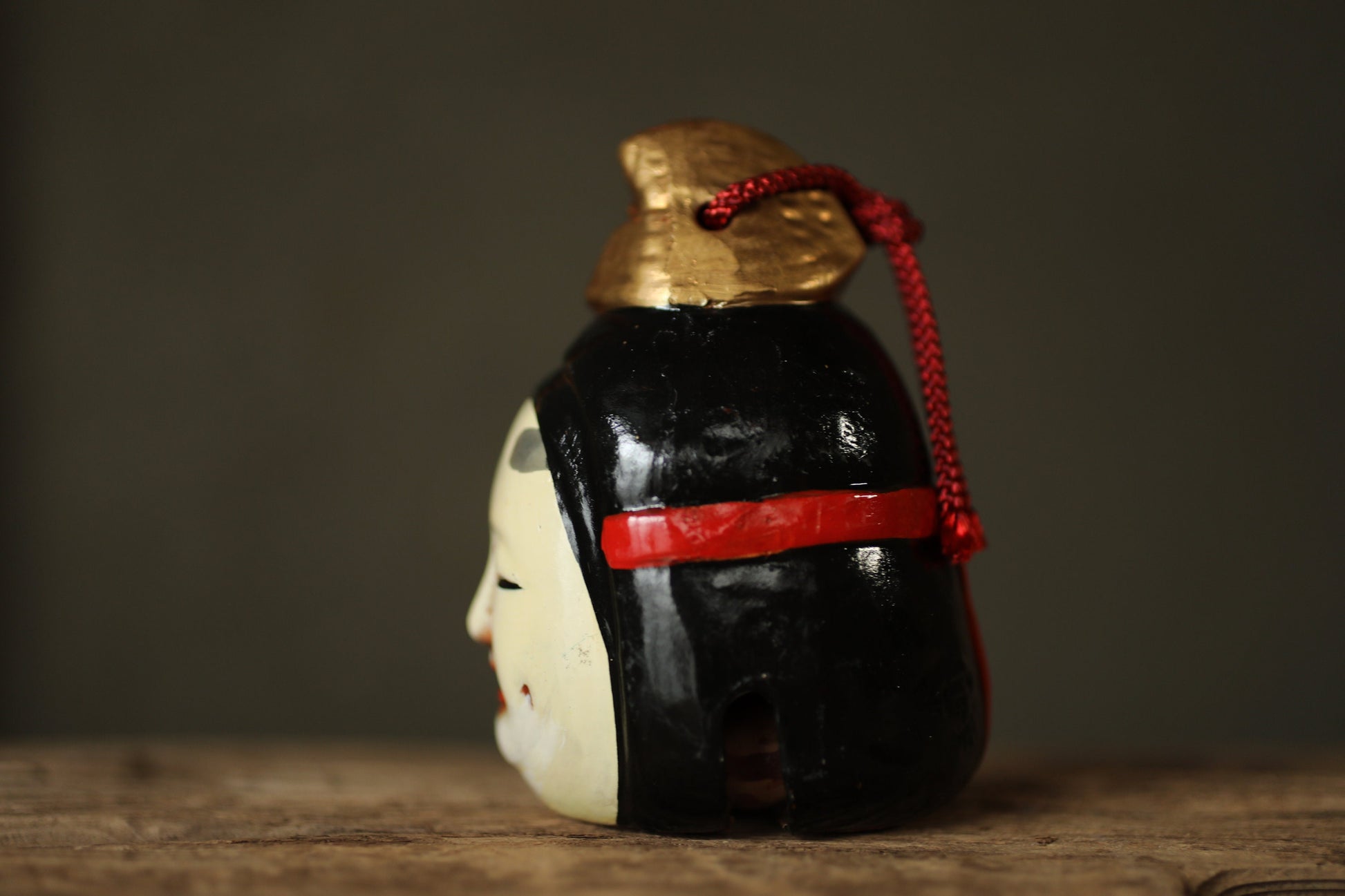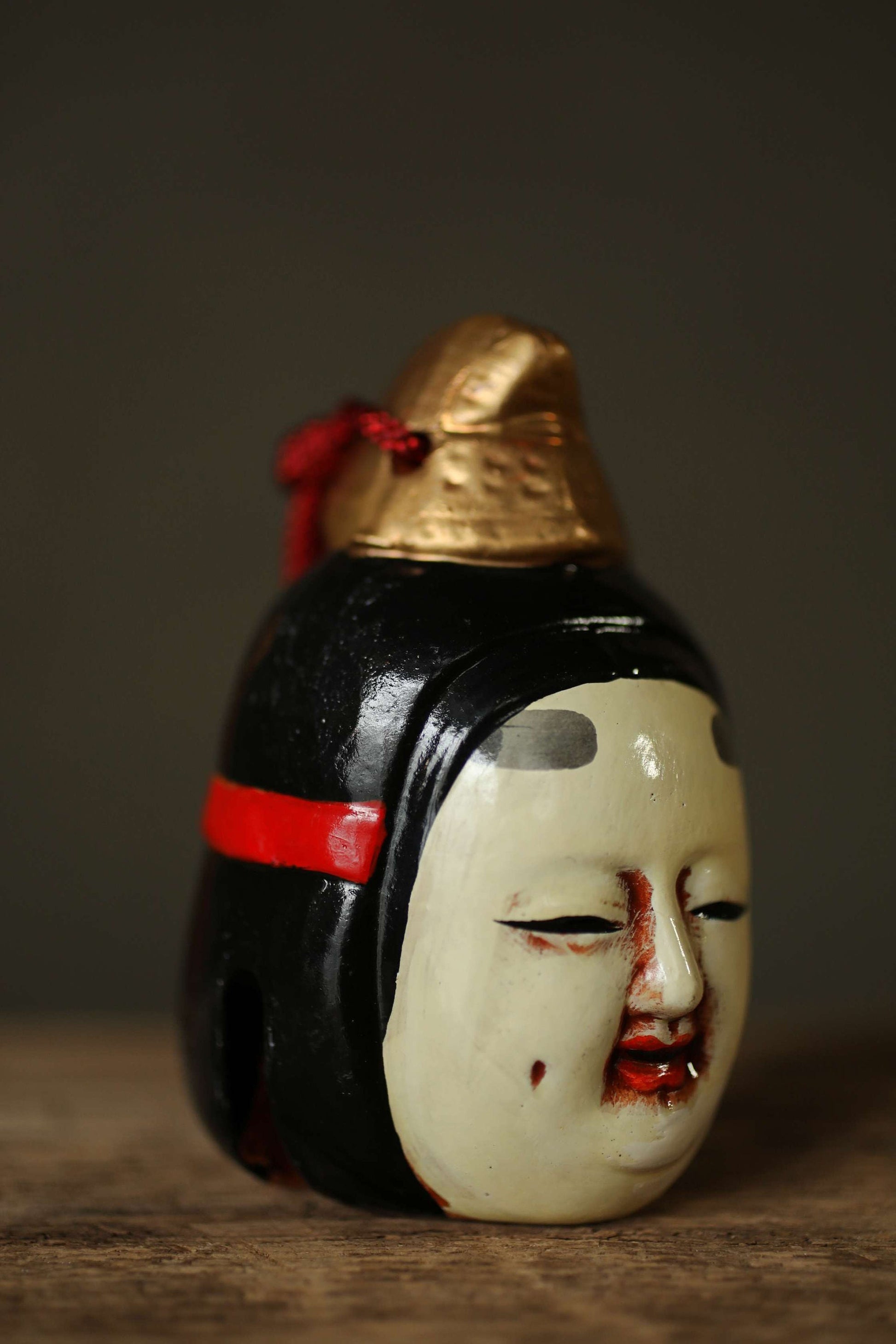 Japanese vintage small pottery bell NOH MASK KOOMOTE doll ornament Paper weight, Christmas Ornaments small bell H3.9×2.2in/H10×5.7cm