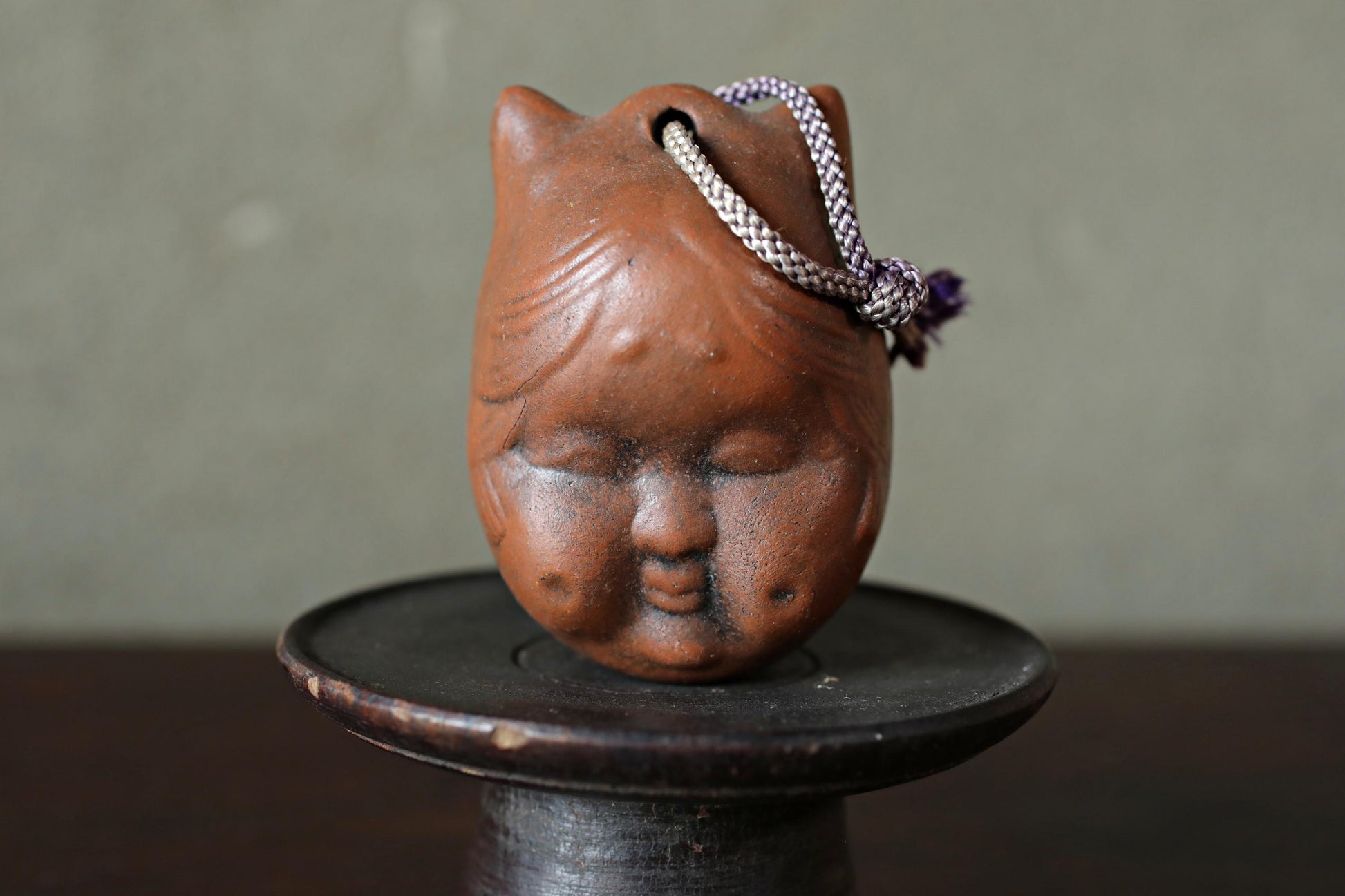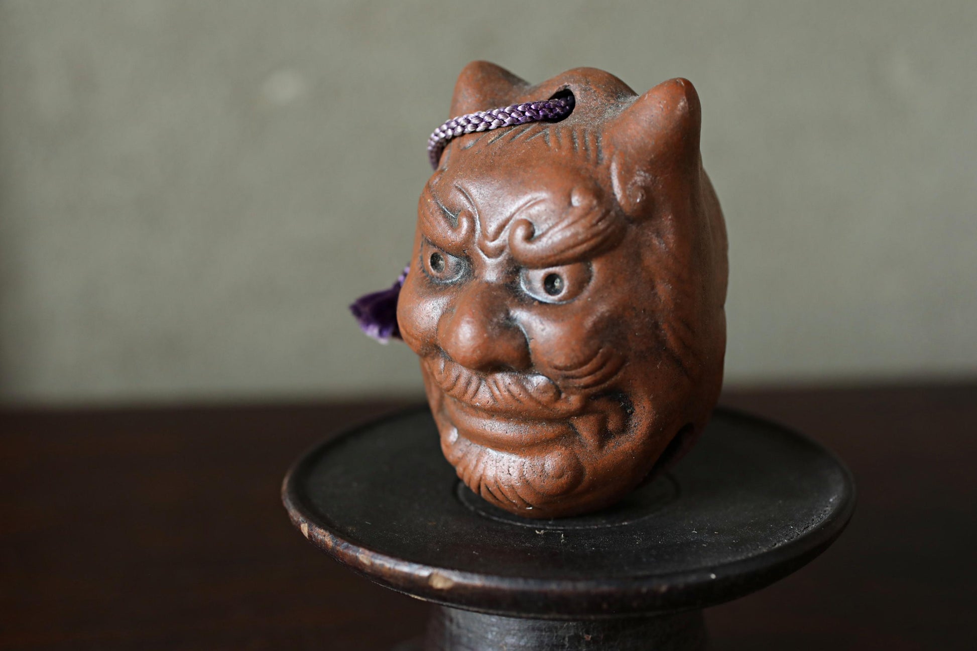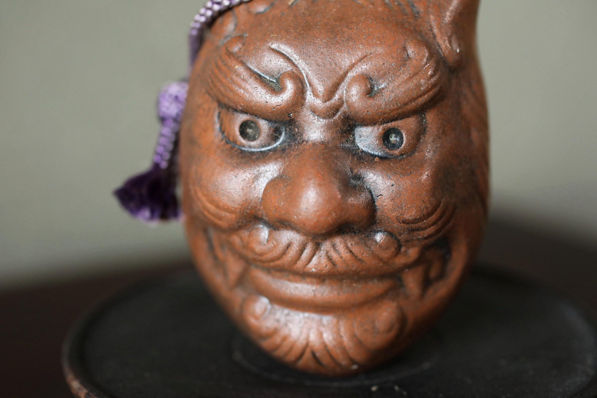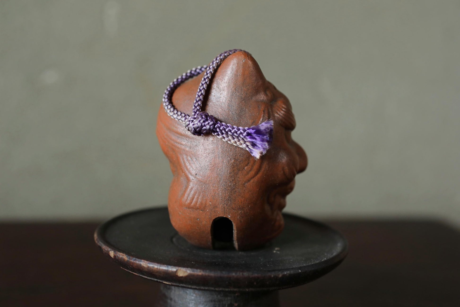 Japanese vintage small pottery bell ONI demon OKAME doll ornament Paper weight, Ornaments Japanese vintage small bell H3.4×2.4in/H8.7×6cm