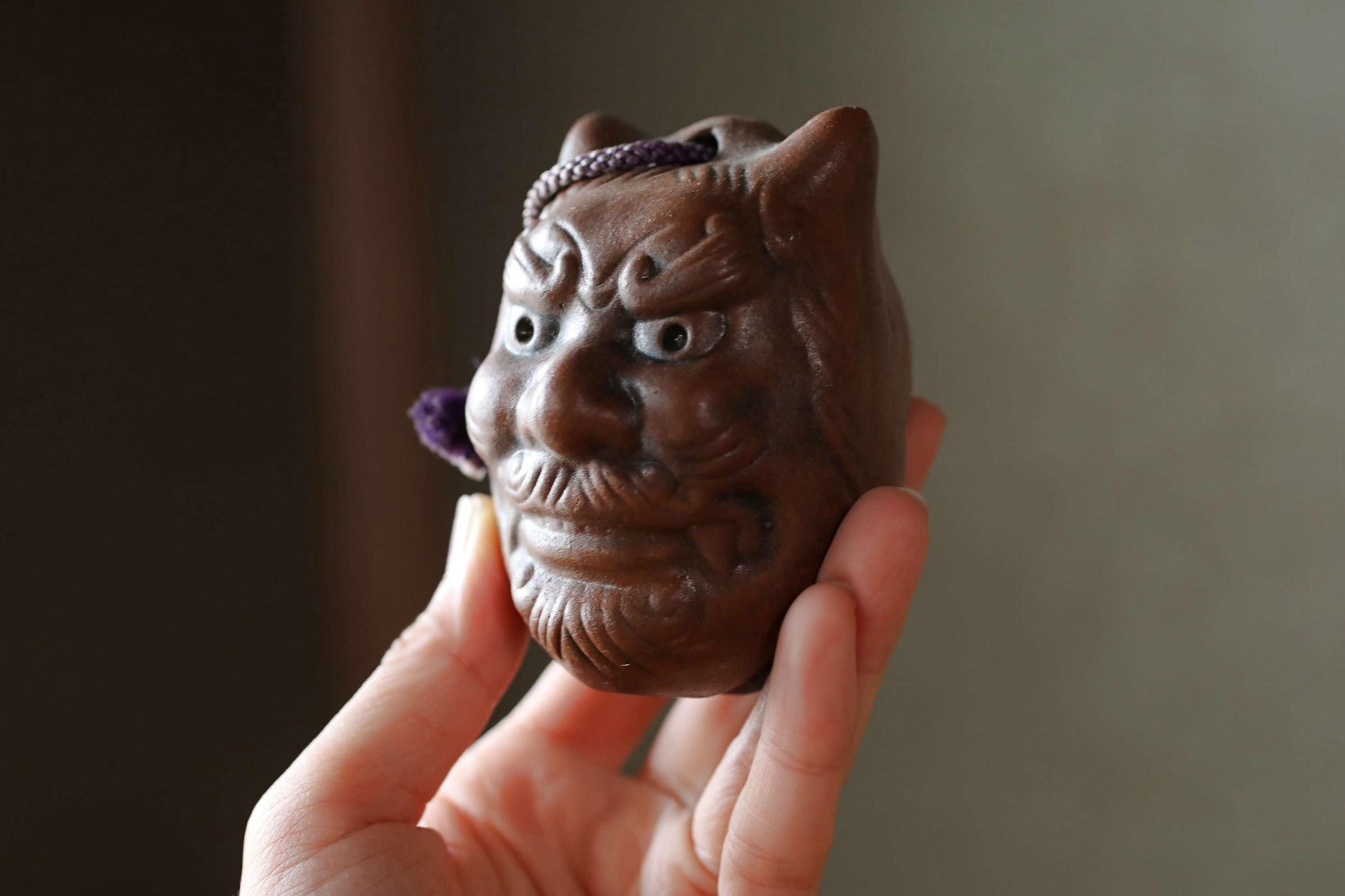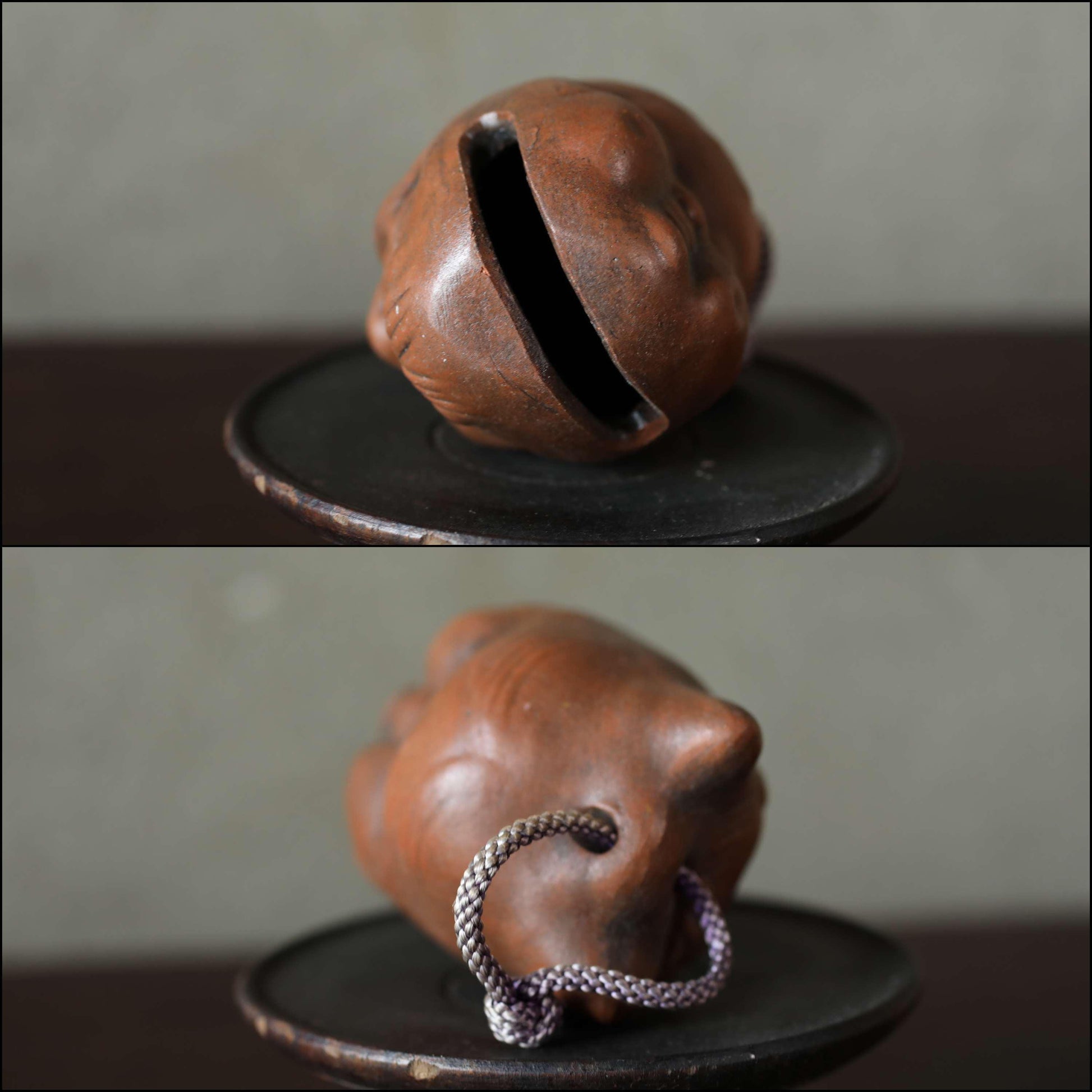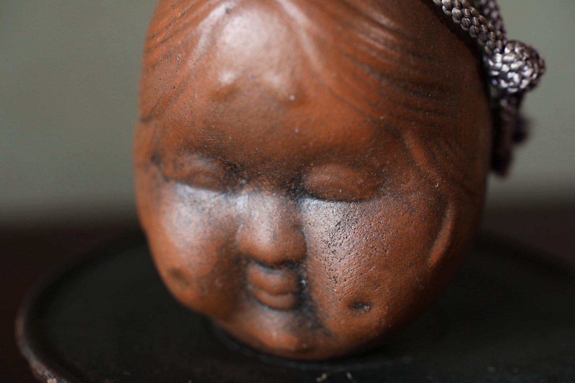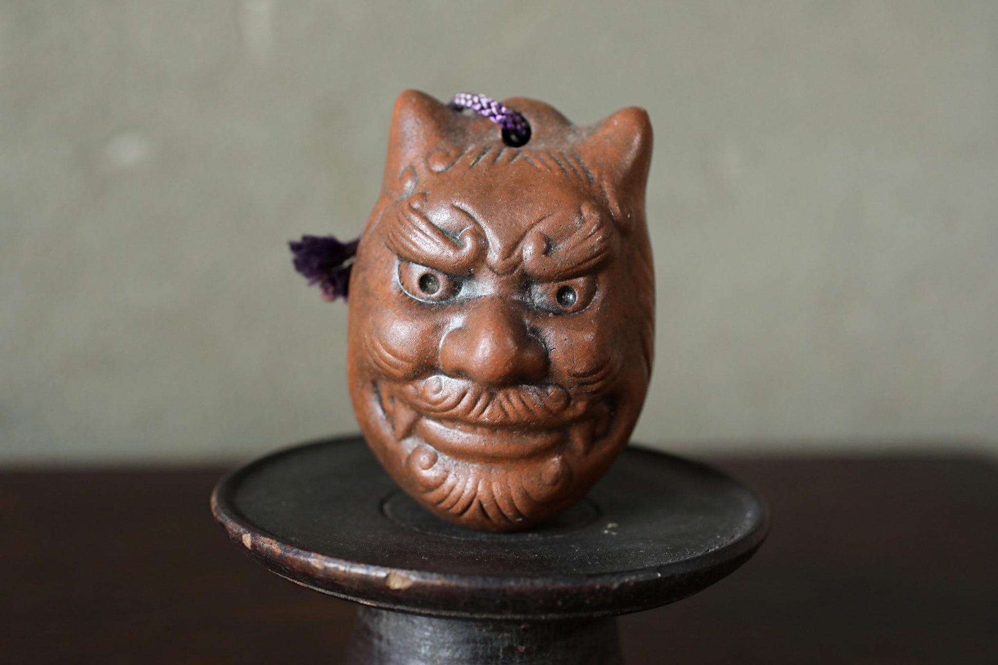 Japanese vintage small pottery bell ONI demon OKAME doll ornament Paper weight, Ornaments Japanese vintage small bell H3.4×2.4in/H8.7×6cm