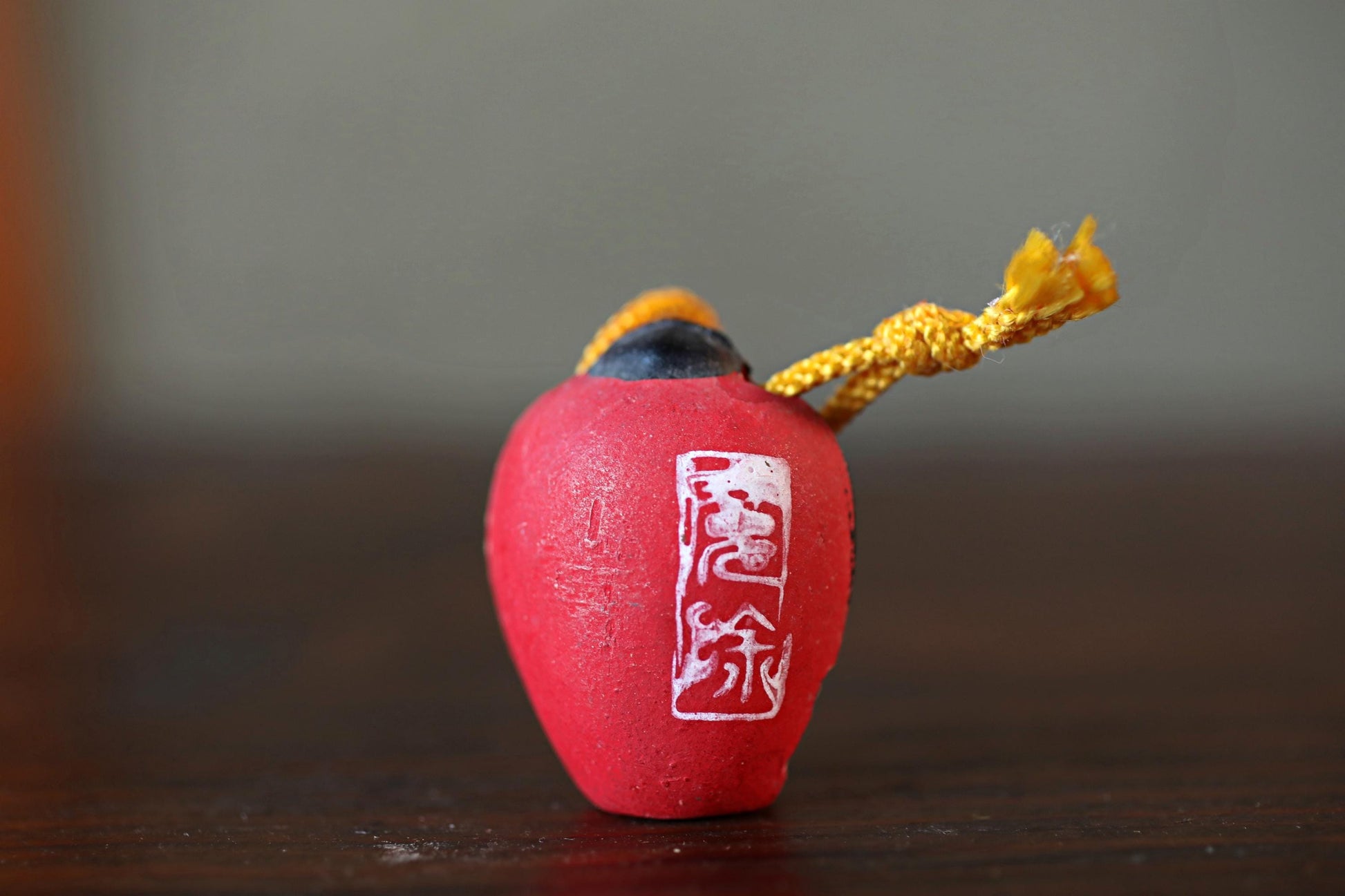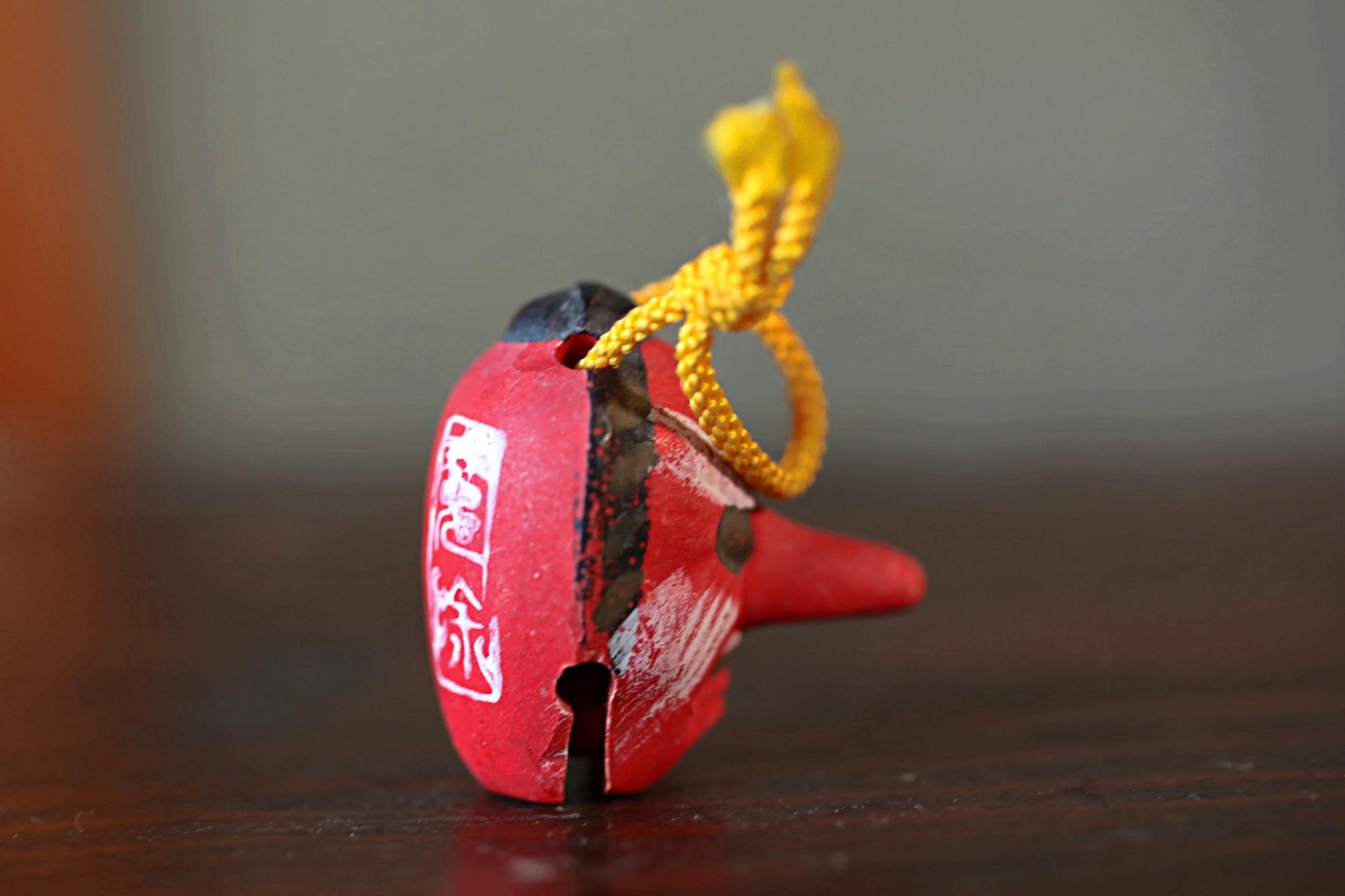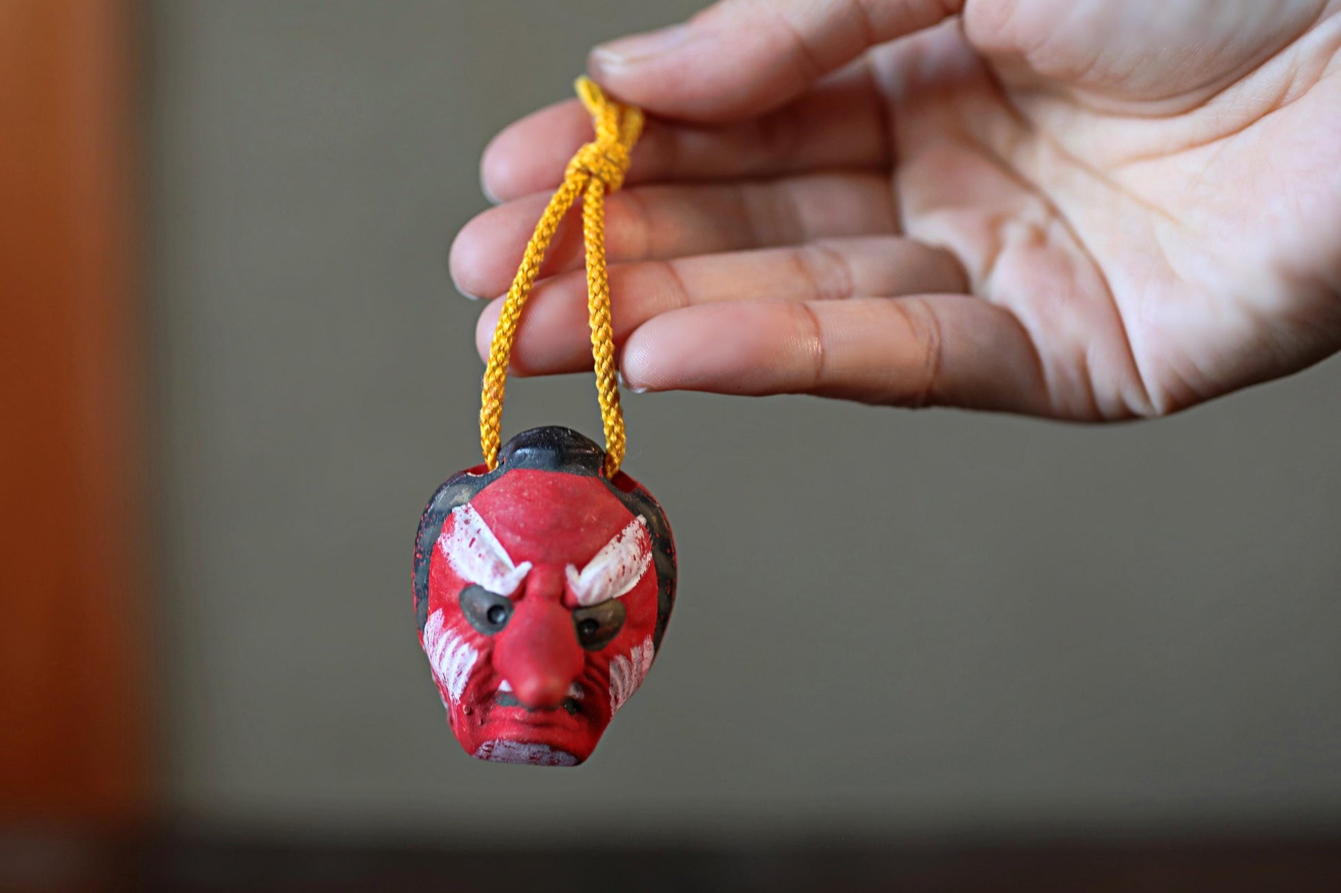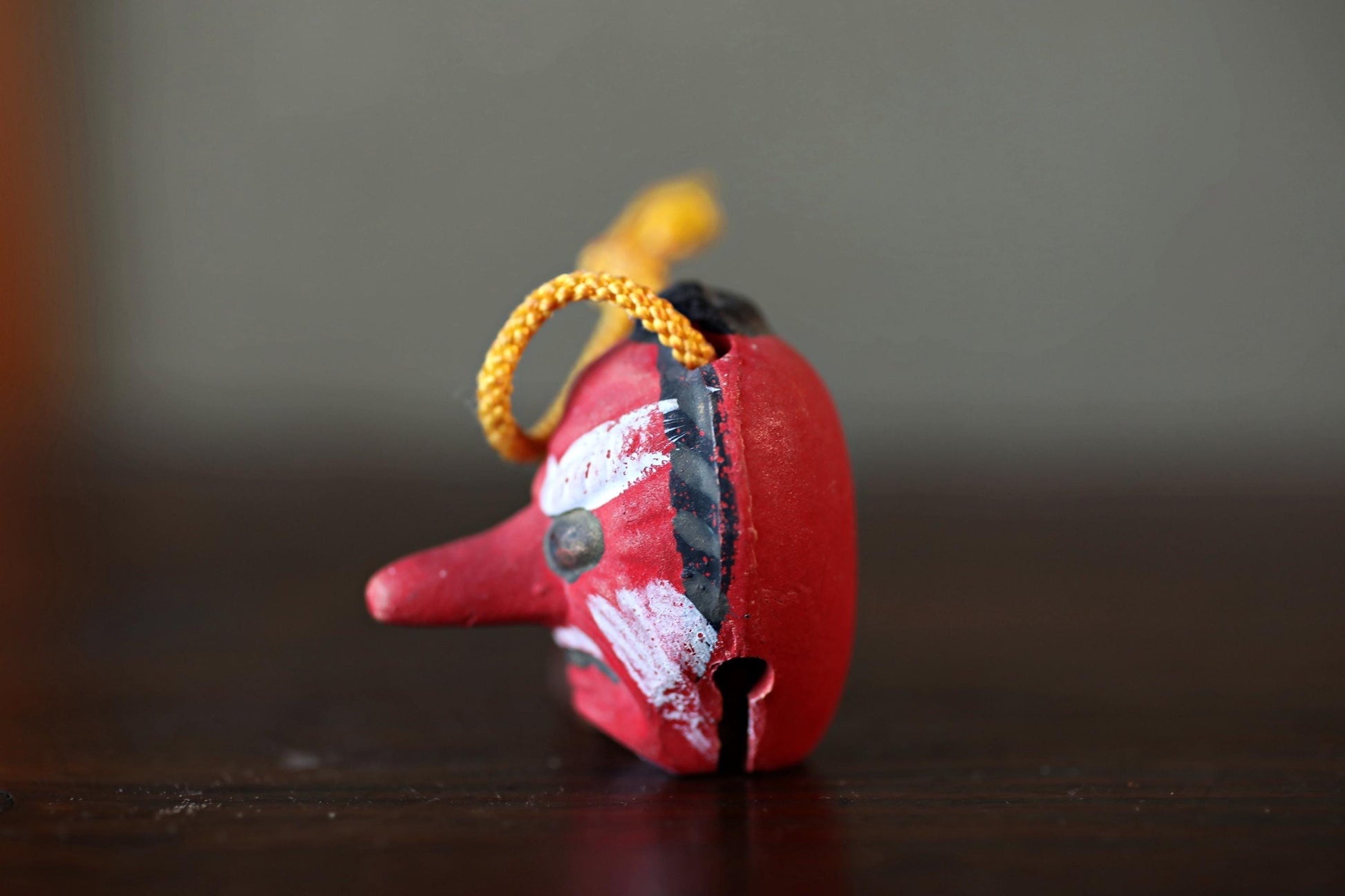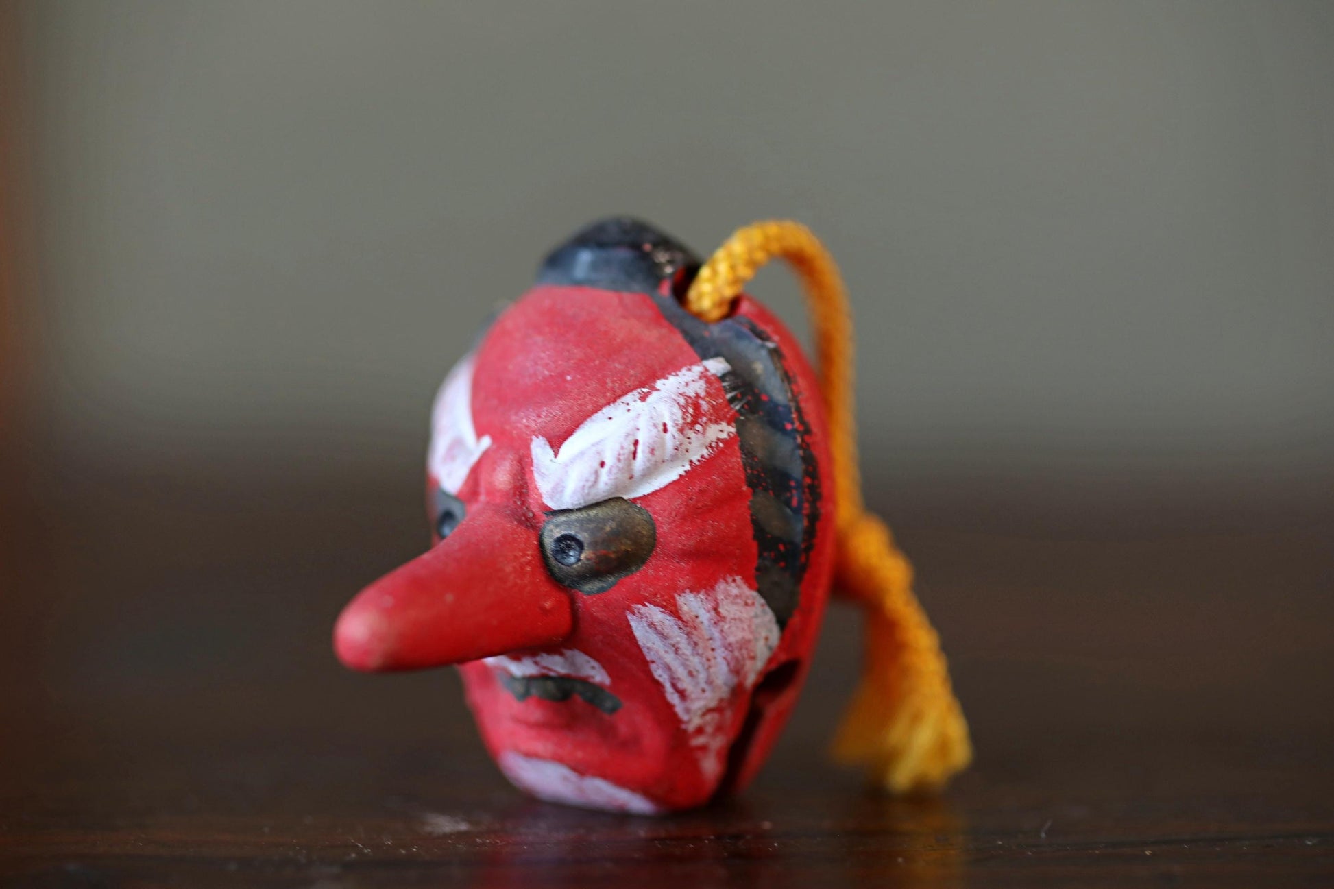 Japanese vintage small pottery bell TENGU doll ornament, Christmas Ornaments Japanese vintage small bell H1.8in/H4.5cm
