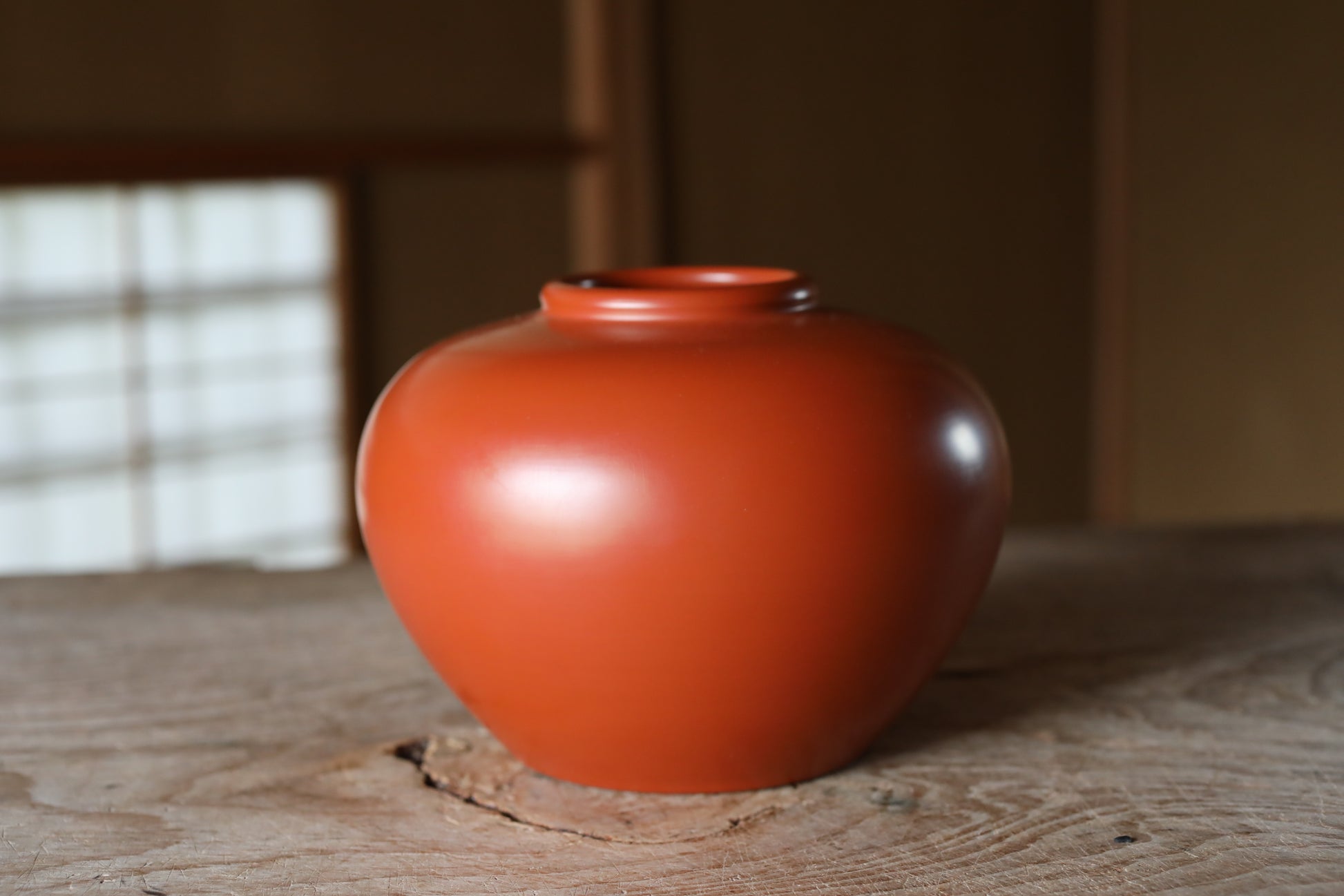 This vase is called as "常滑 Tokoname" ware. It's made from a type of clay called “朱泥 shudei/ red clay” that is rich in iron and sourced from the Tokoname region of Aichi Prefecture. It is fired without glaze, a technique commonly used to make teapots.
