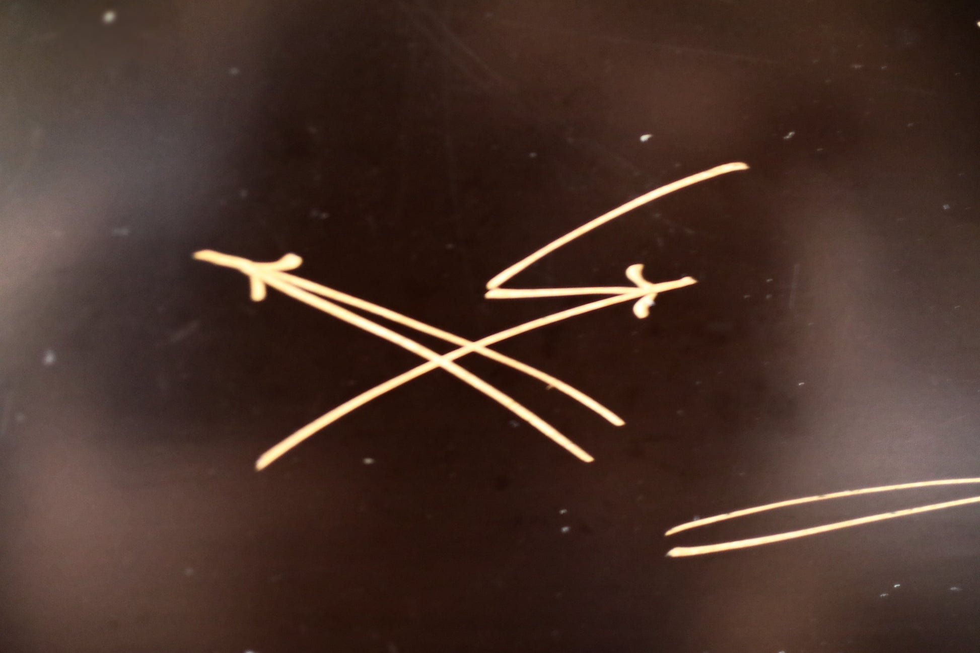 It is made with a lacquer technique called "蒔絵maki-e," in which gold powder is glued to the surface to draw pictures and patterns.