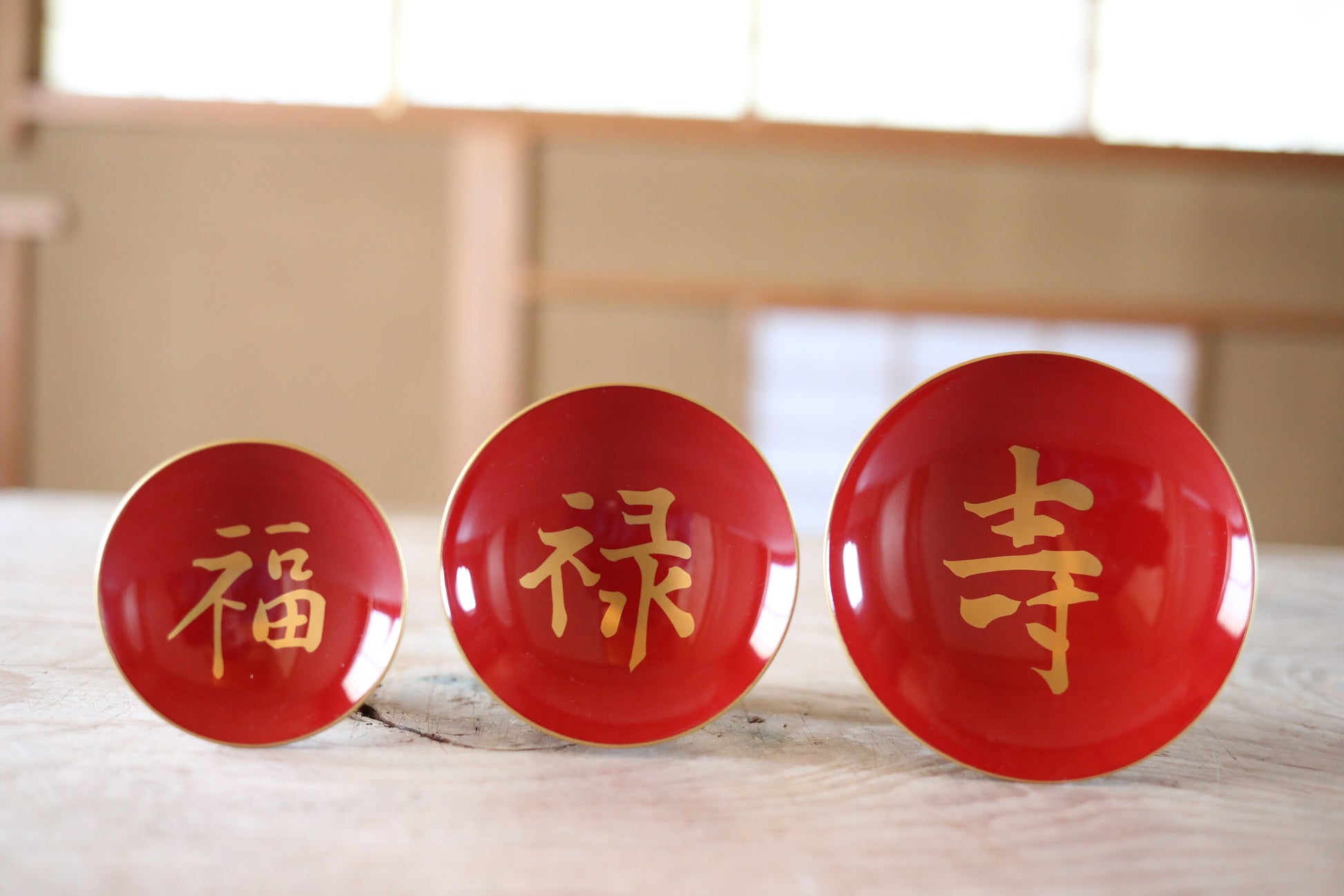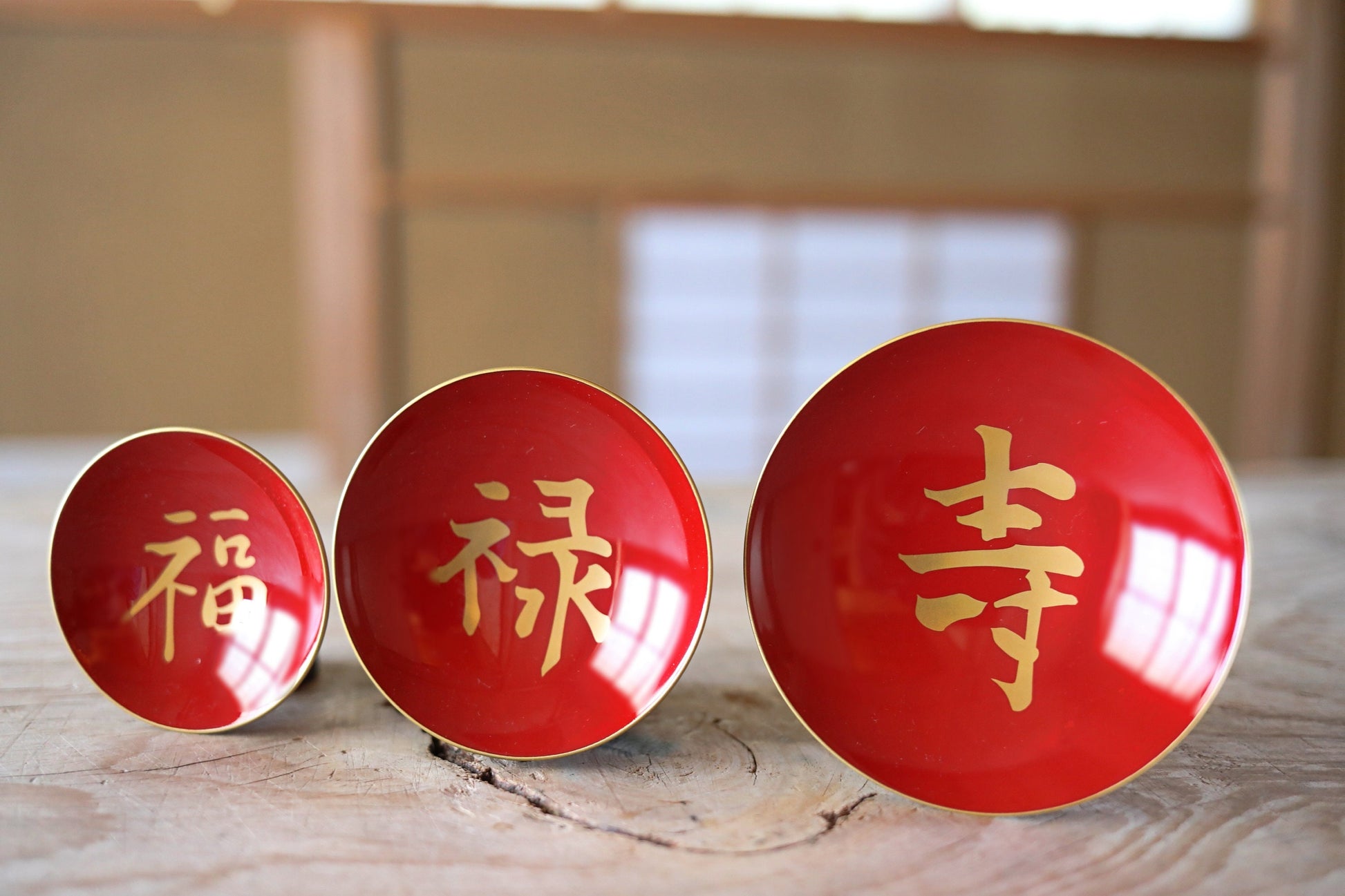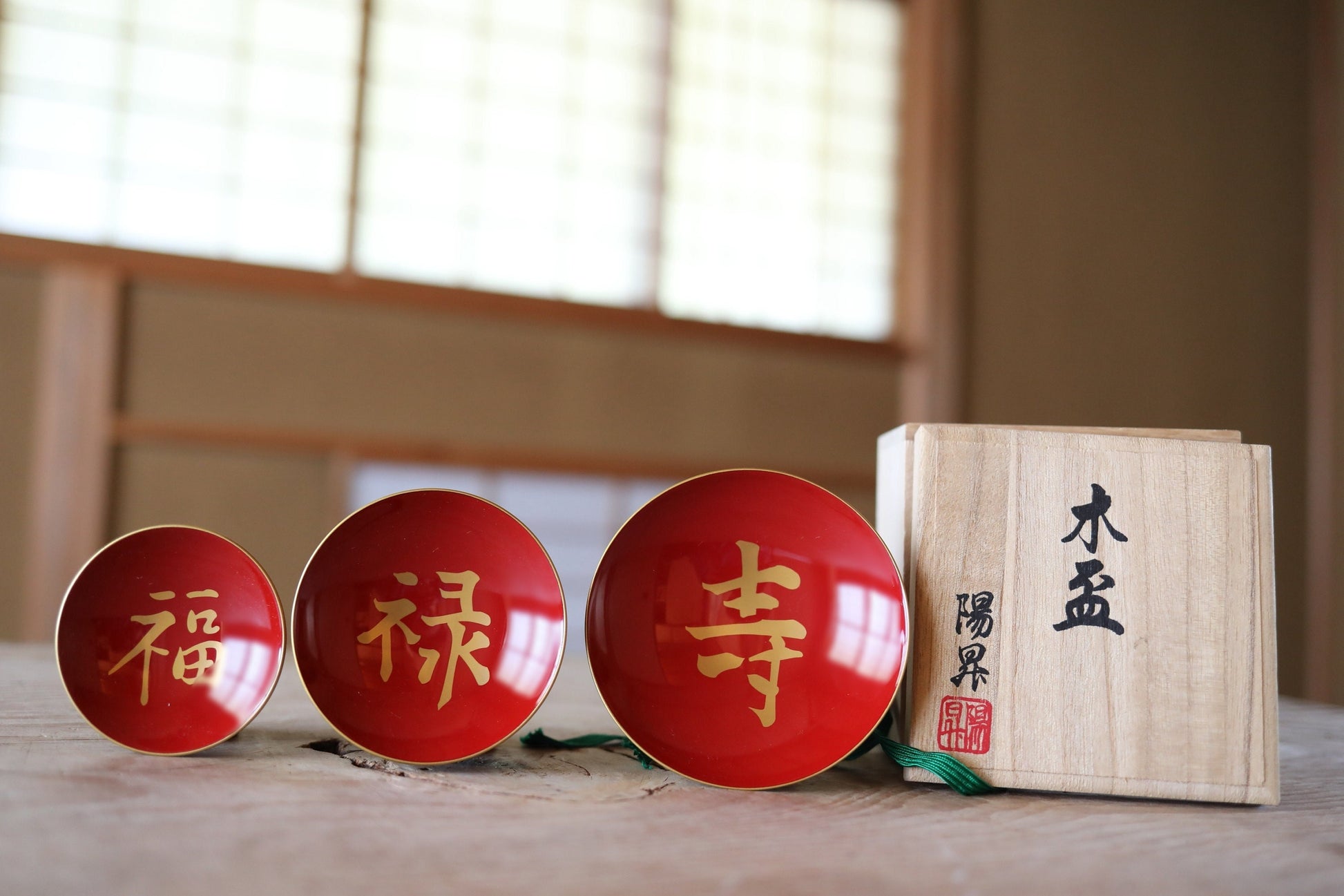 It is beautifully painted with lacquer and is rarely used. Kanji characters meaning 福禄寿"congratulations" are written in gold.