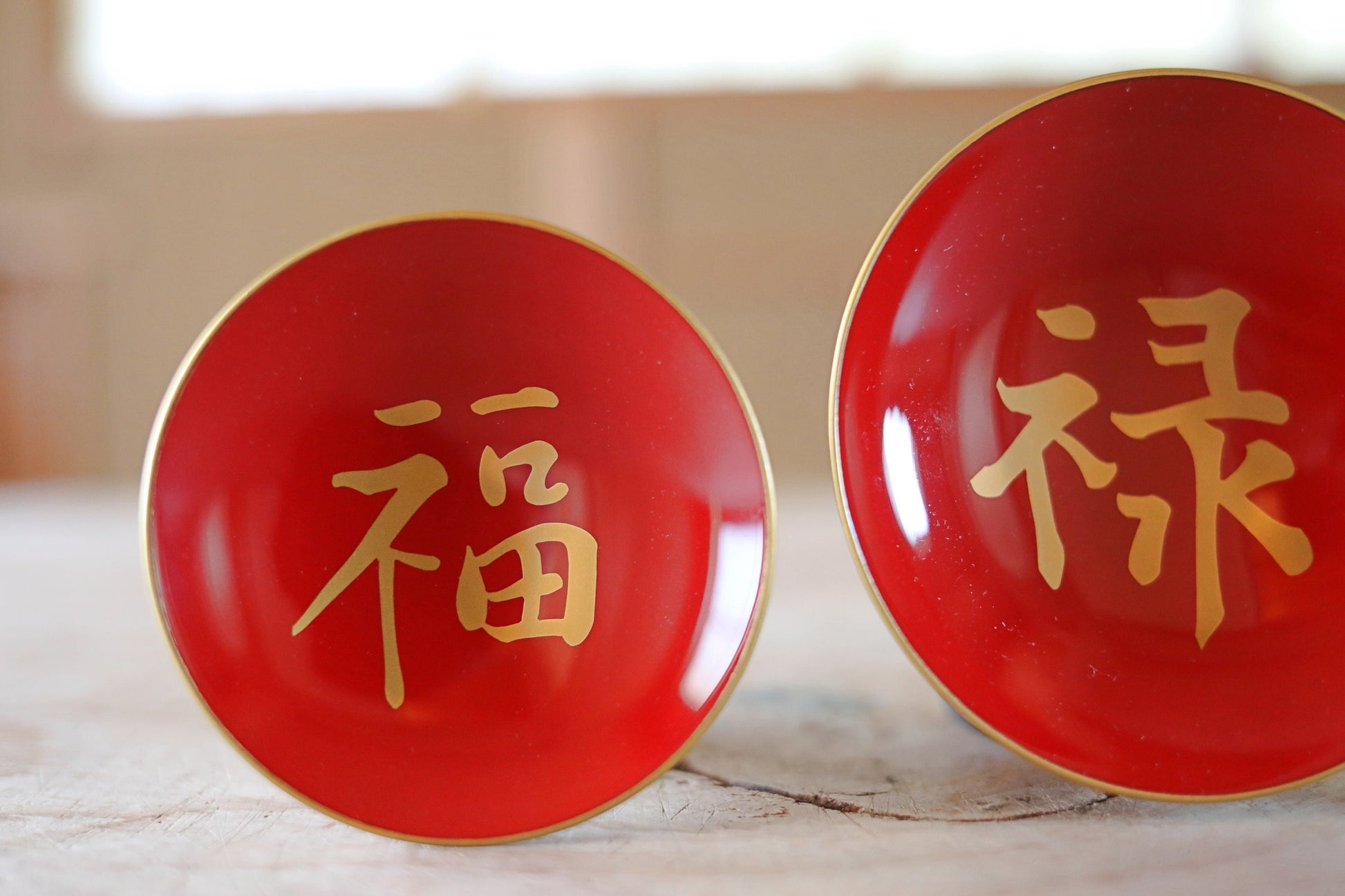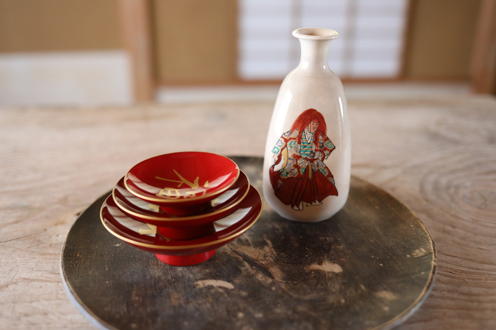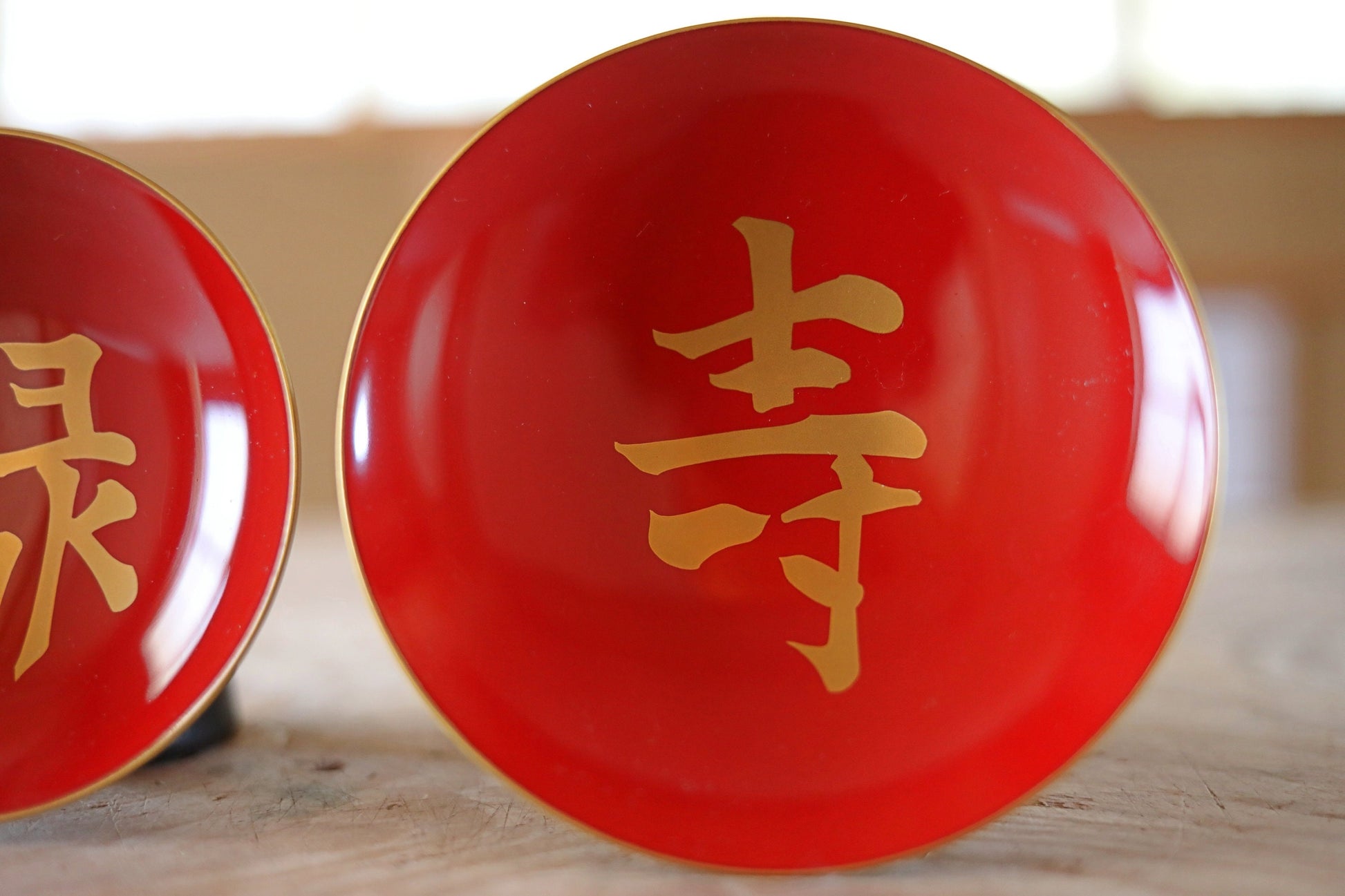 It is beautifully painted with lacquer and is rarely used. Kanji characters meaning 福禄寿"congratulations" are written in gold.