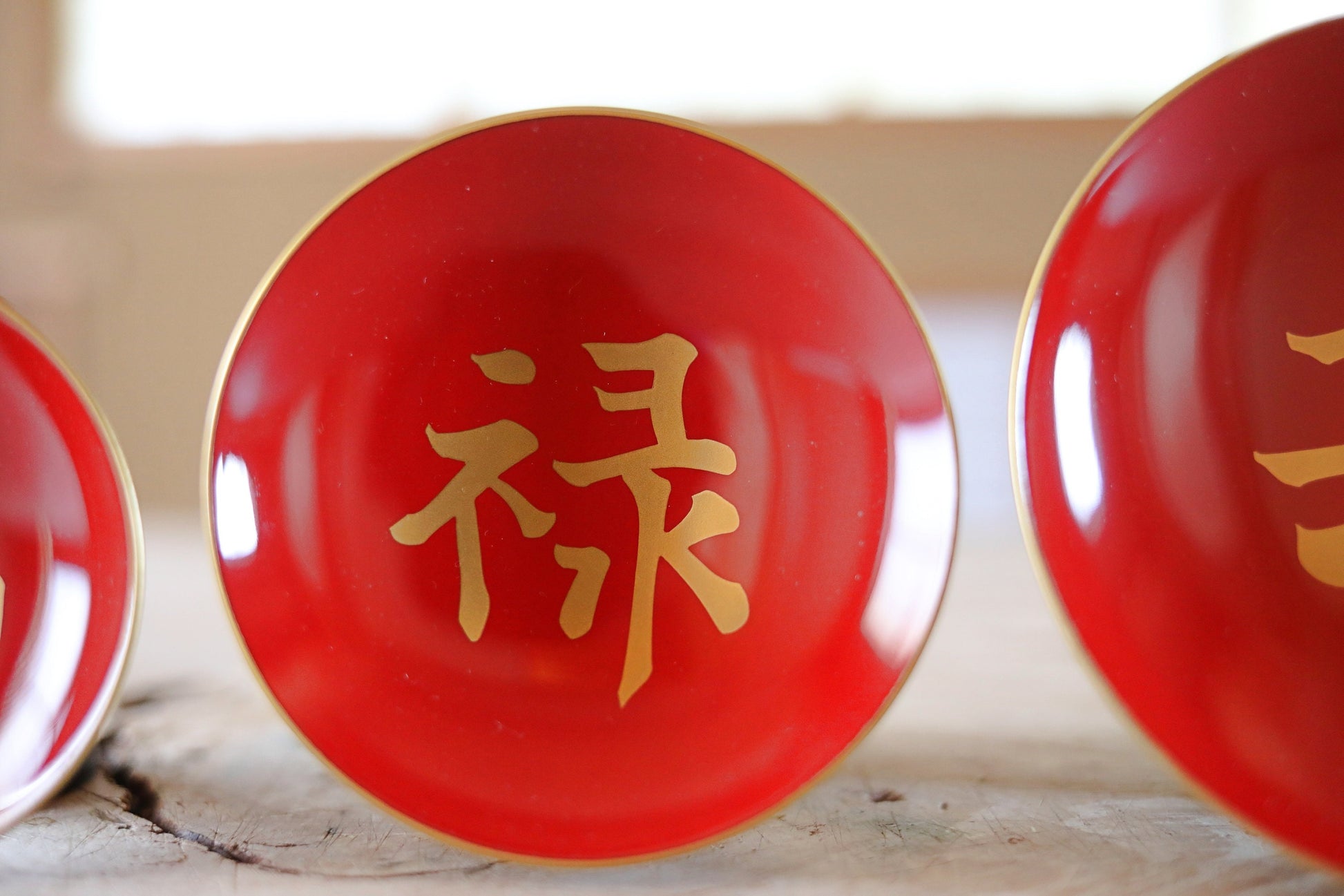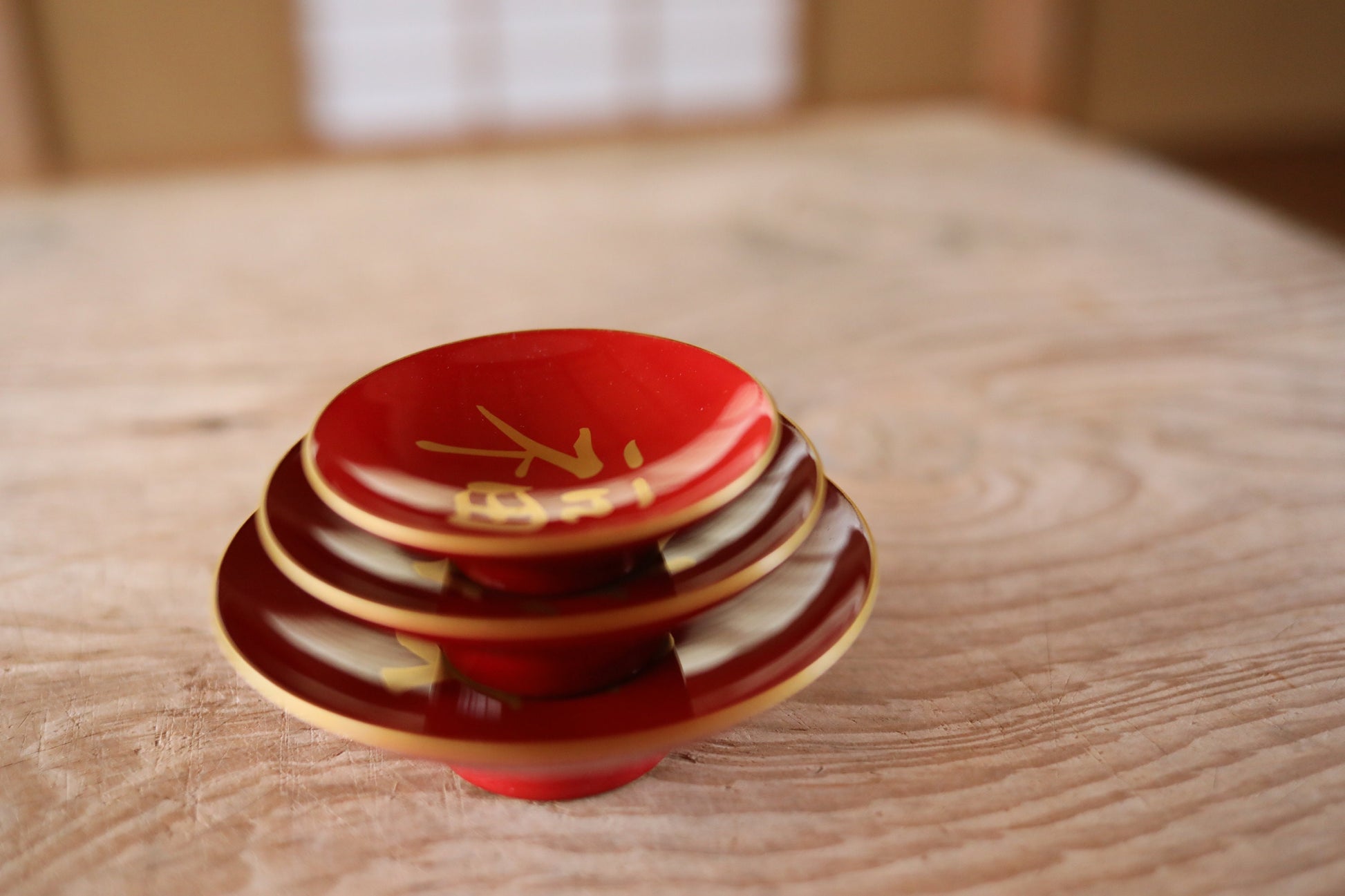 Japanese vintage urushi makie gold sake cup set of 3 wooden cups with "congratulations" red gold kanji For GIFT H1.5×4.3in/H3.7×10.9cm