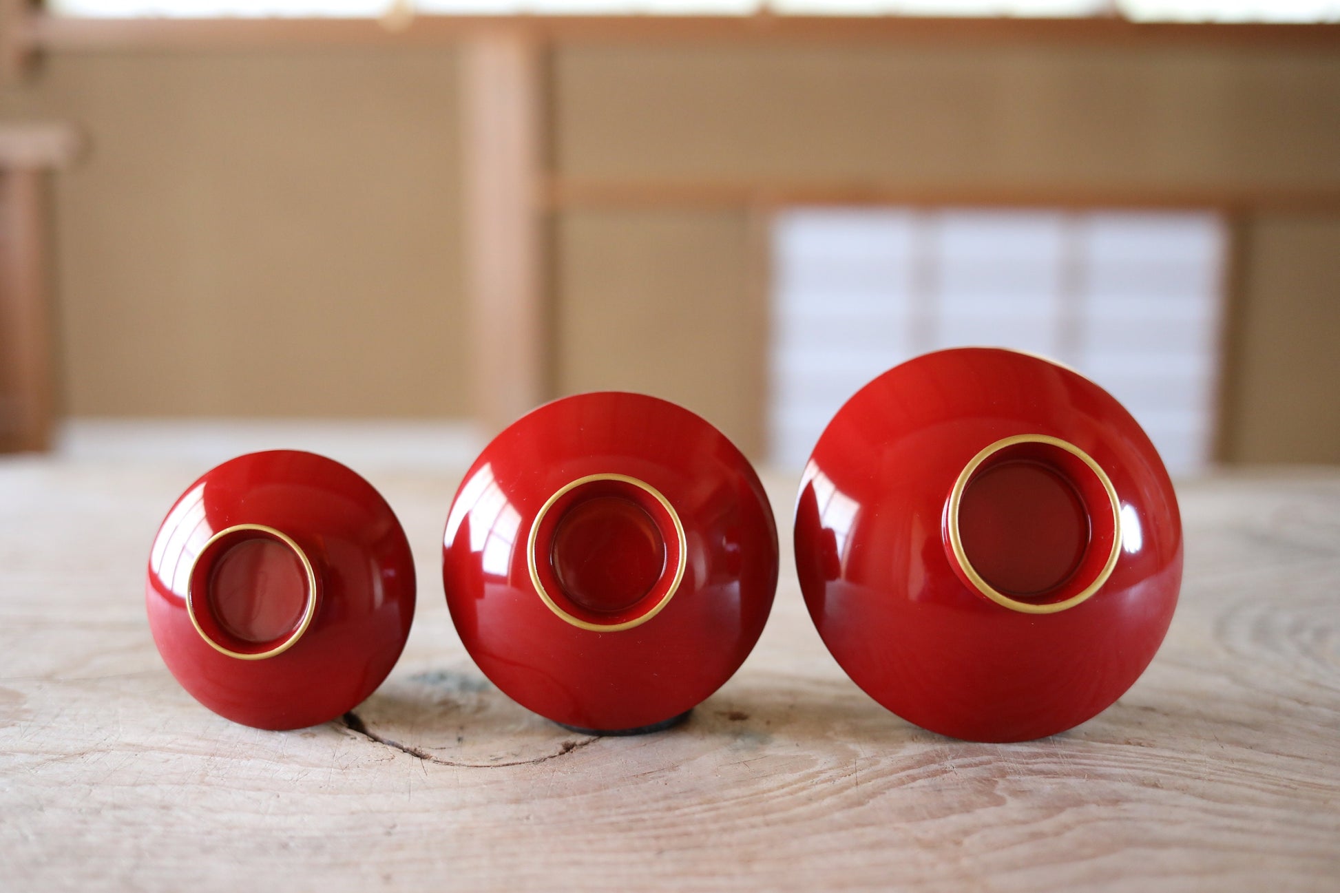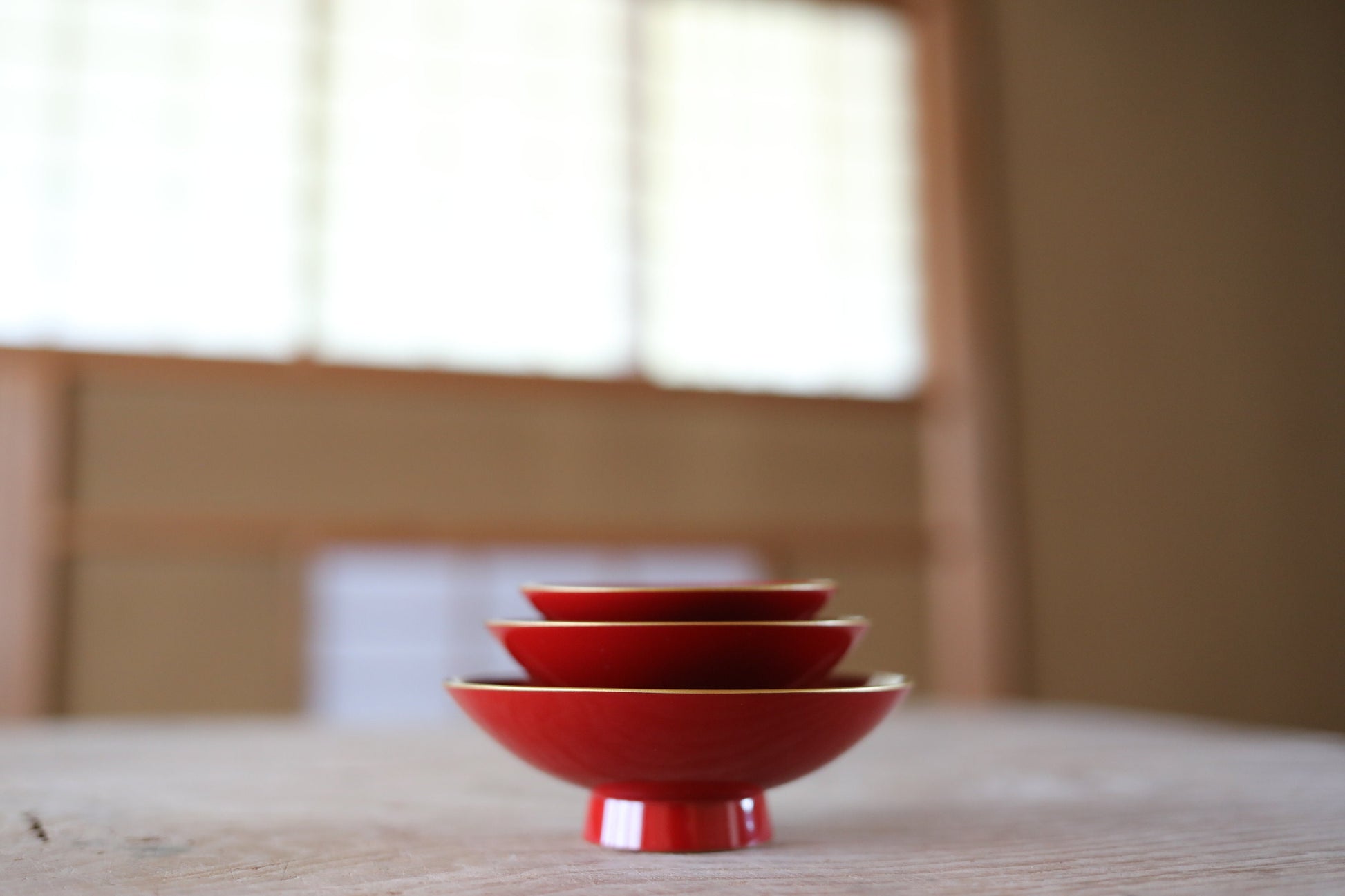 This is a set of three and when stacked three on top of each other, they are different sizes and beautiful. This style is traditionally used in Japan for weddings, New Year's, and other festive occasions.