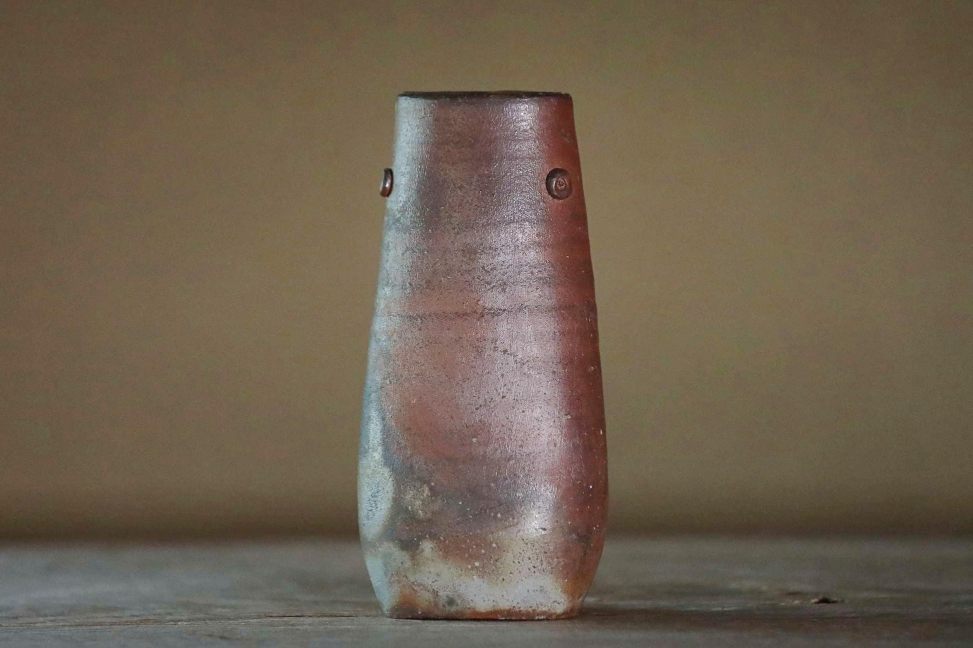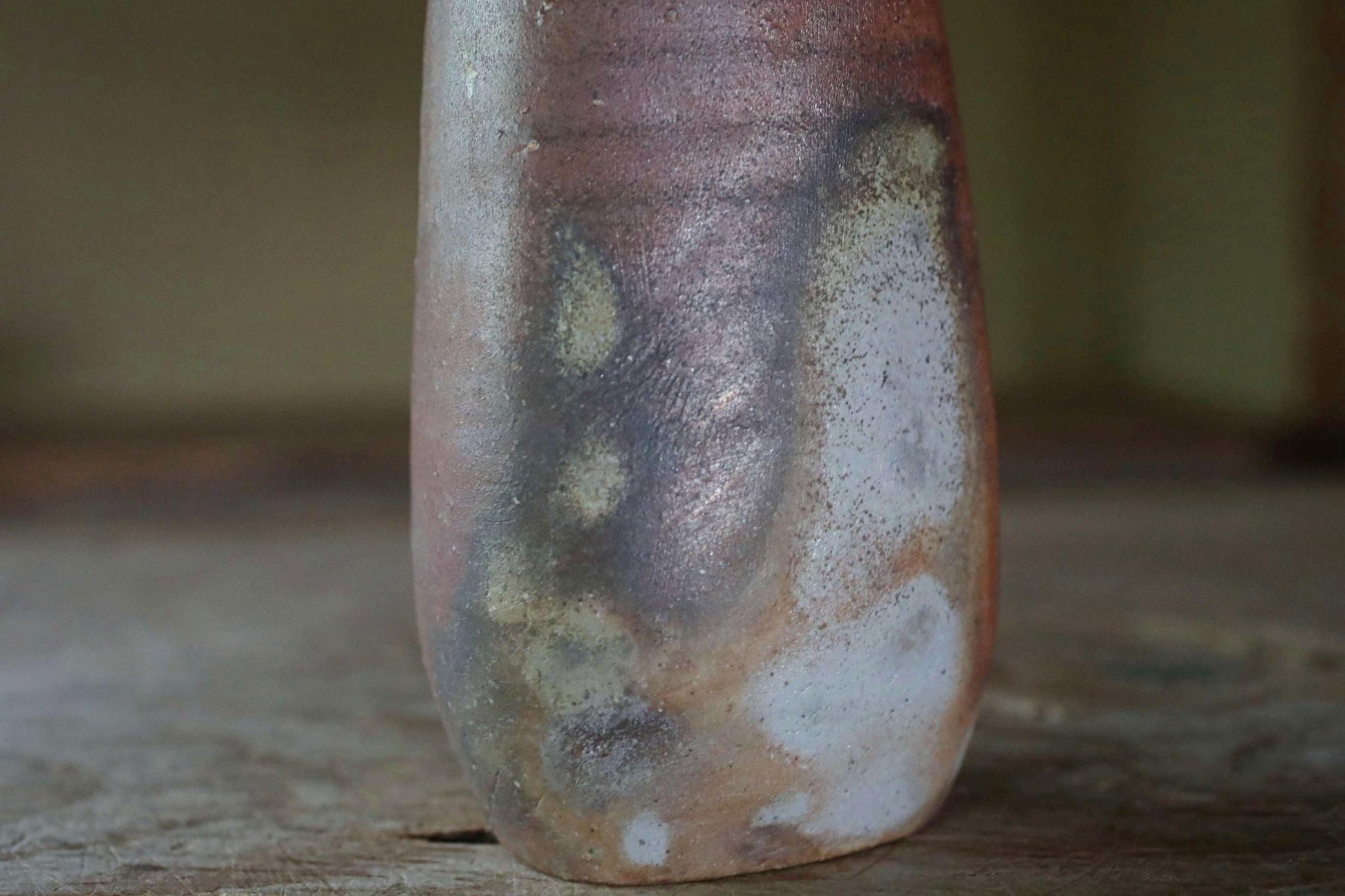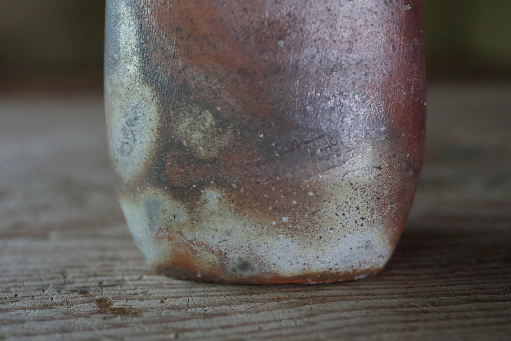 Japanese vintage vase "BIZEN ware" pottery flower vase, square tube shape with Kanji signed and wooden box For GIFT H7.4×3.3in/18.8x8.5cm