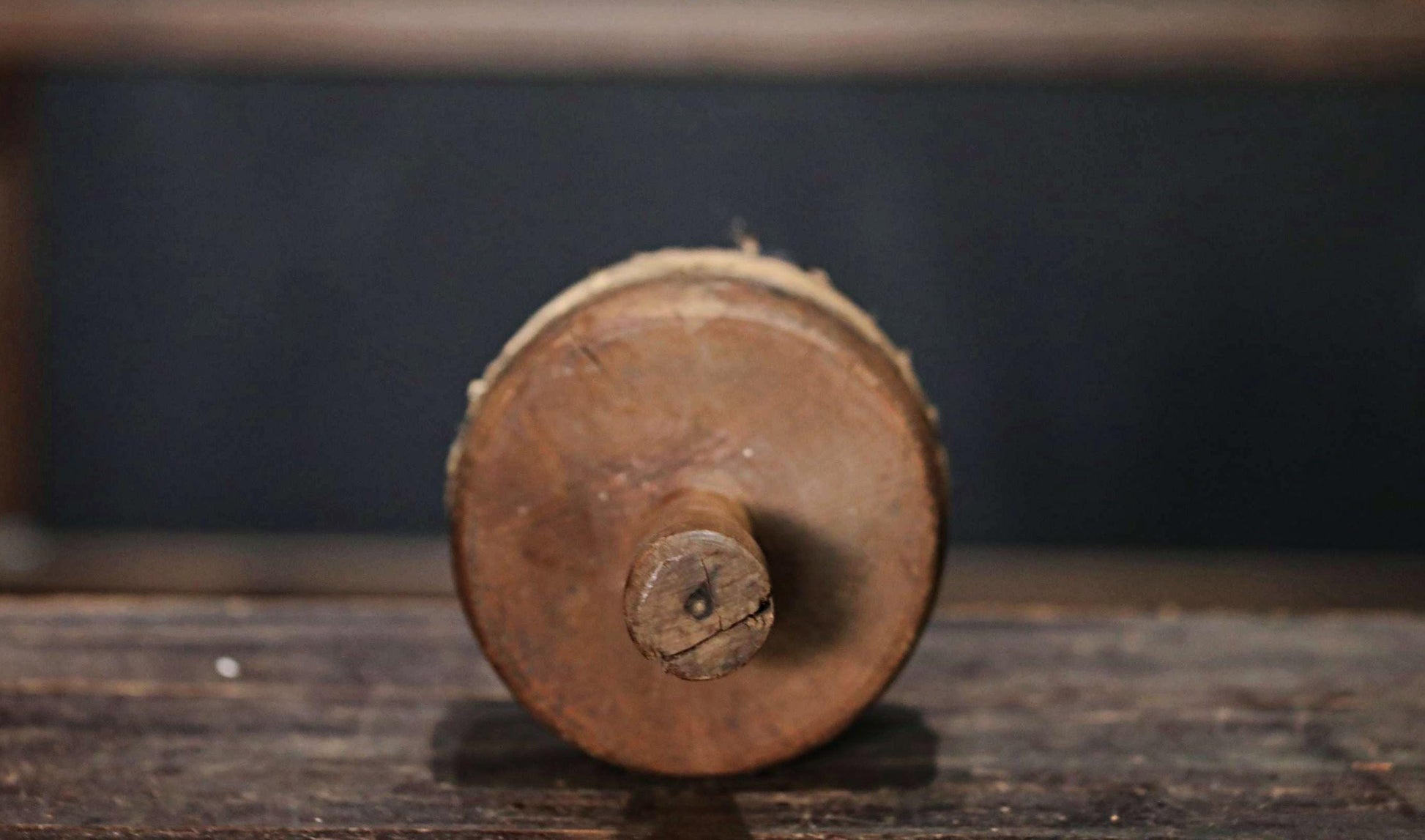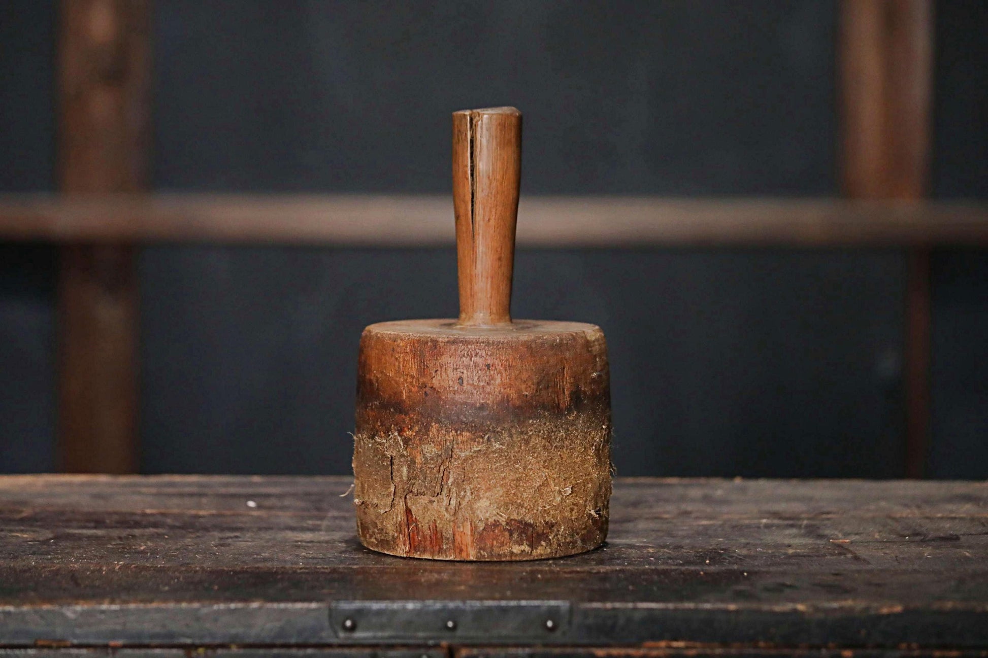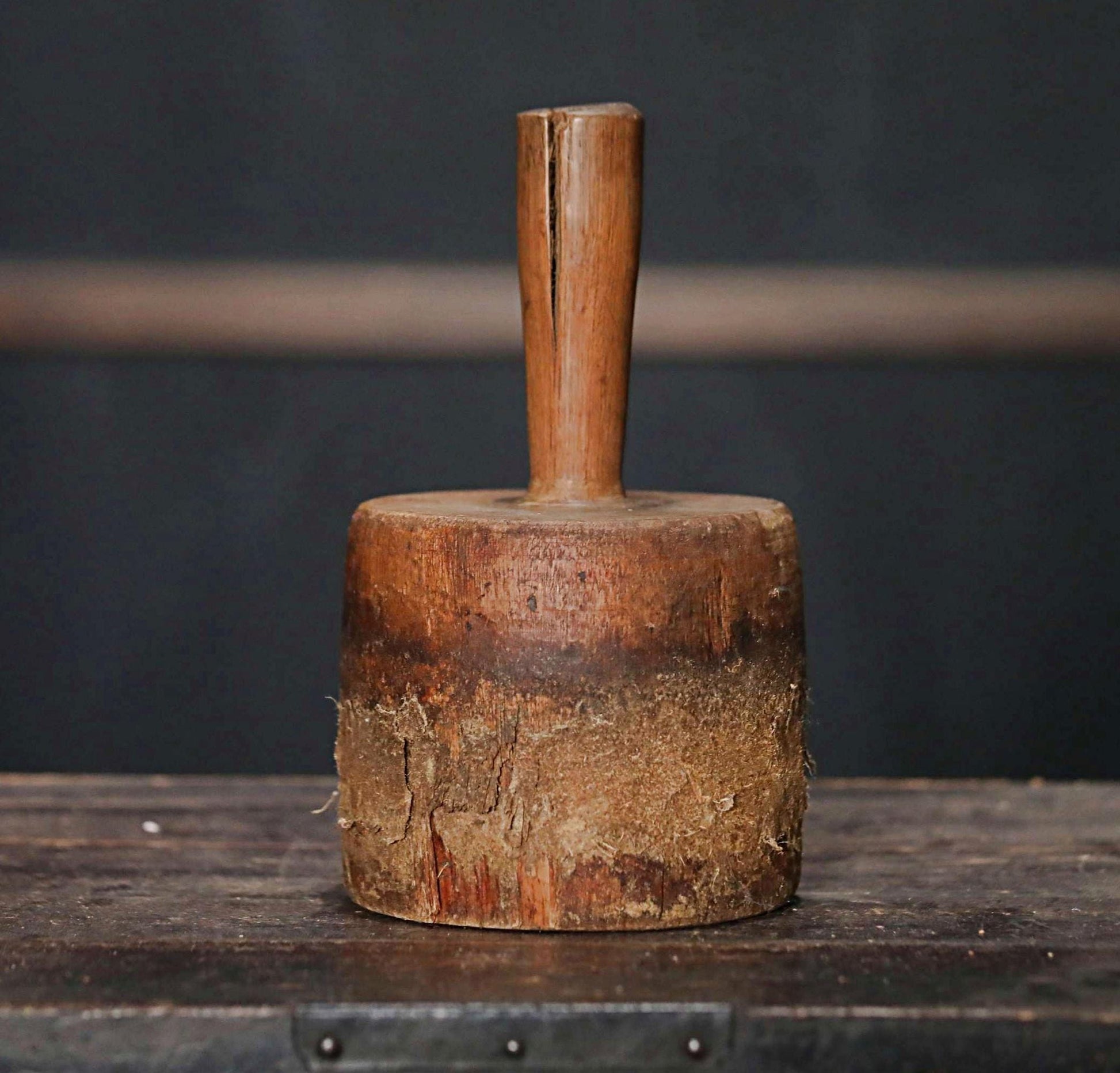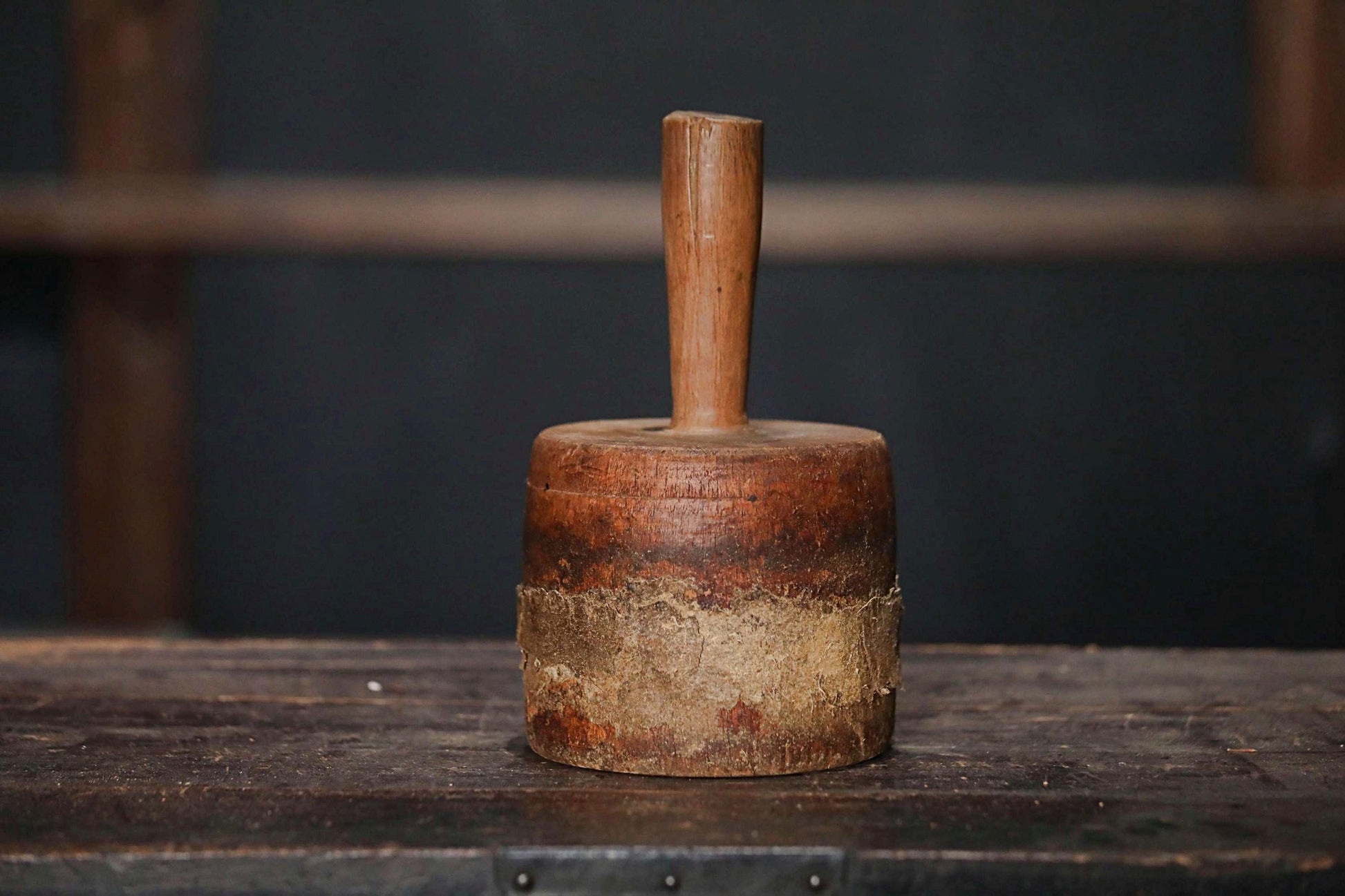A Japanese tool with a cool, used look and feel, this is called a straw 砧 Kinuta. It is a tool originally used to beat straw to soften it.